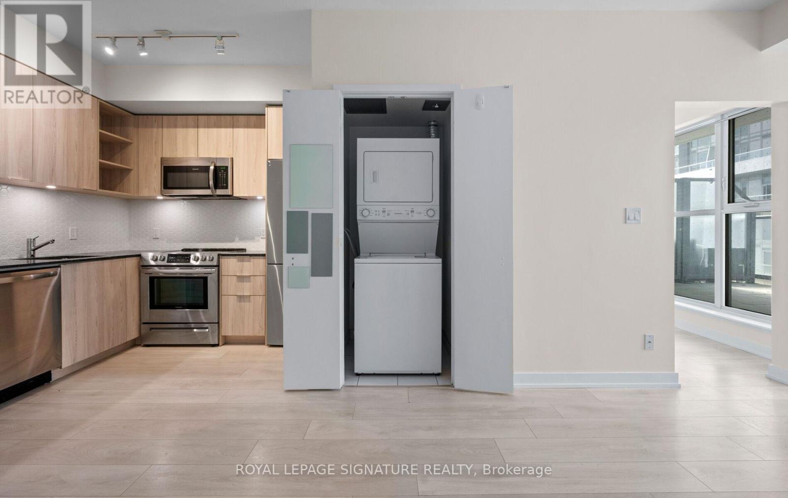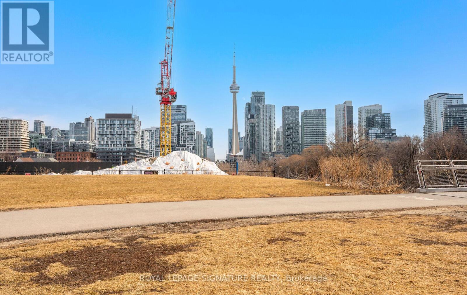 Immaculate and cozy 1-bedroom suite at Garrison Point Condos. Situated on a 3.9-acre city park with extraordinary views of Toronto's skyline. Unwind and relax-or enjoy your morning coffee-on your own private 100 sq ft terrace, also perfect for hosting summer dinners. The bright, thoughtfully designed suite features 9-ft smooth ceilings, laminate flooring throughout, and a modern kitchen with integrated Bloomberg stainless-steel appliances, custom backsplash, and quartz countertops. Exceptional building amenities include 24-hr concierge/security, gym, movie theatre, meeting/party rooms, outdoor pool, indoor hot tub & cold tub, sauna, steam room, guest suites and visitor parking. Secure building with FOB controlled elevator and floor access. Prime location: steps to TTC streetcar stops, EX-GO, QEW, new pedestrian bridge, King West, Lakeshore, waterfront trails, and parks. Walking distance to Starbucks, Metro grocery, Wine Rack, major banks, restaurants, cafes, medical and dental services, physiotherapy clinic, fitness studios, and hotels. Experience the ease of living with everything you need just moments away. **Some images have been virtually staged to illustrate potential design ideas.** (id:64974)