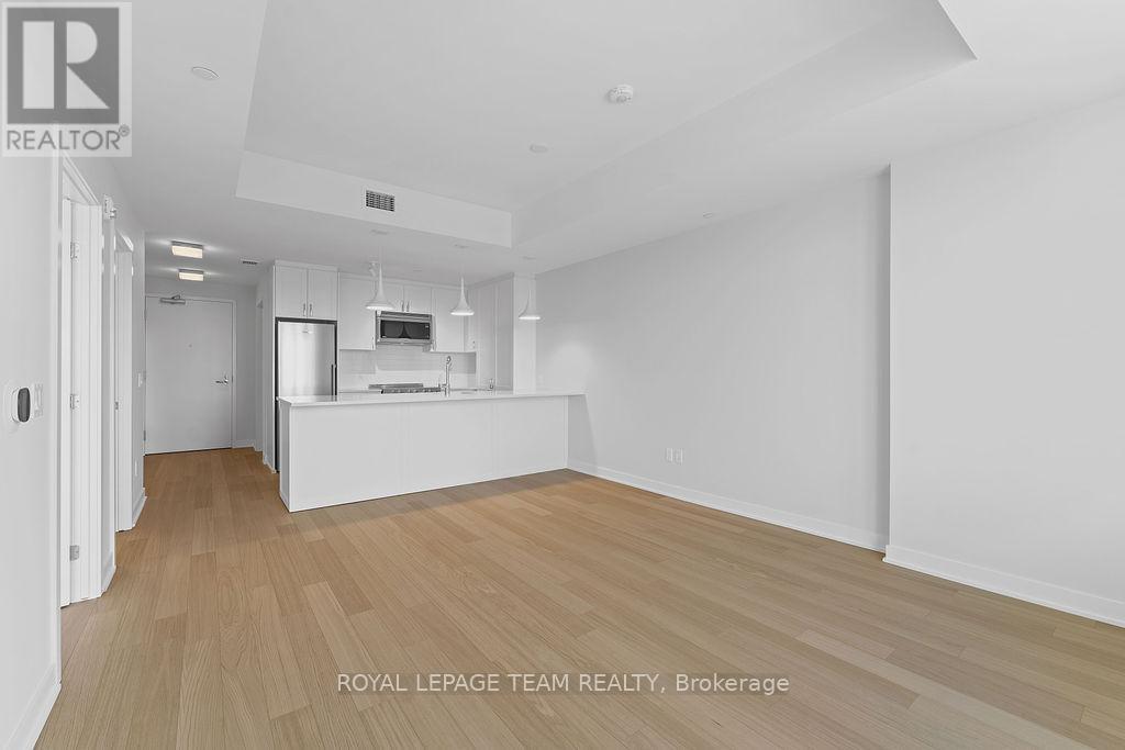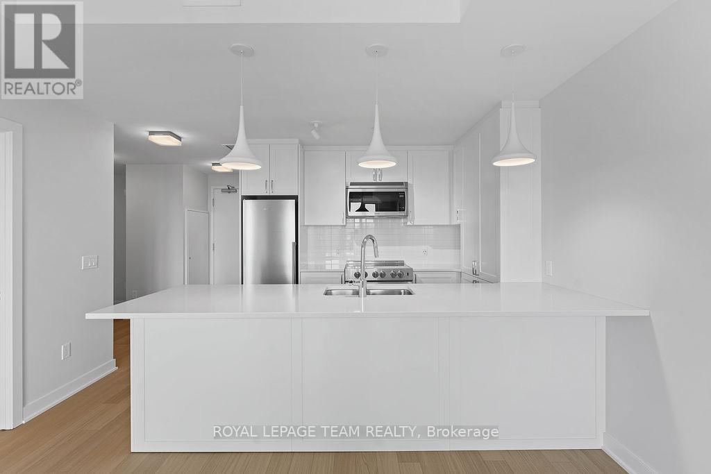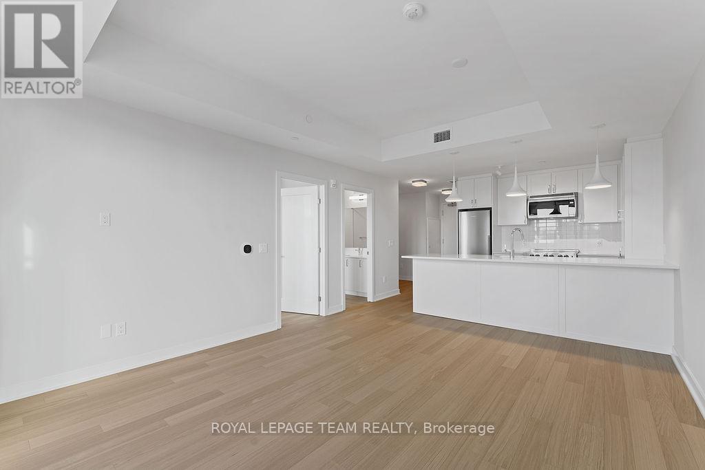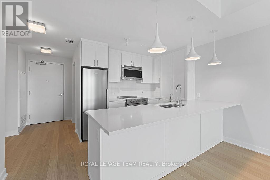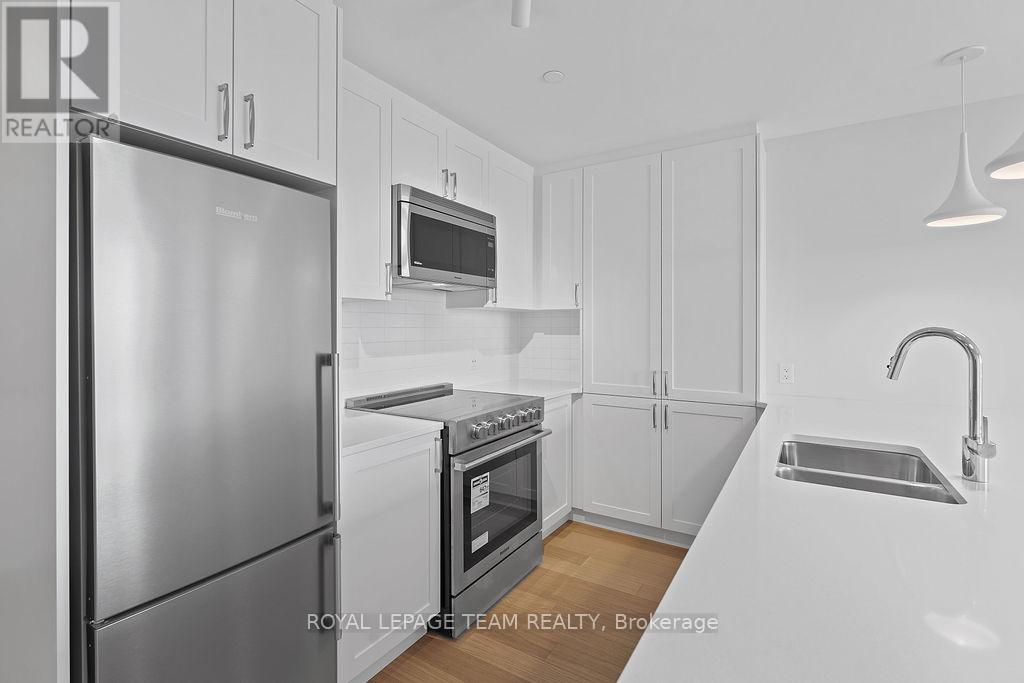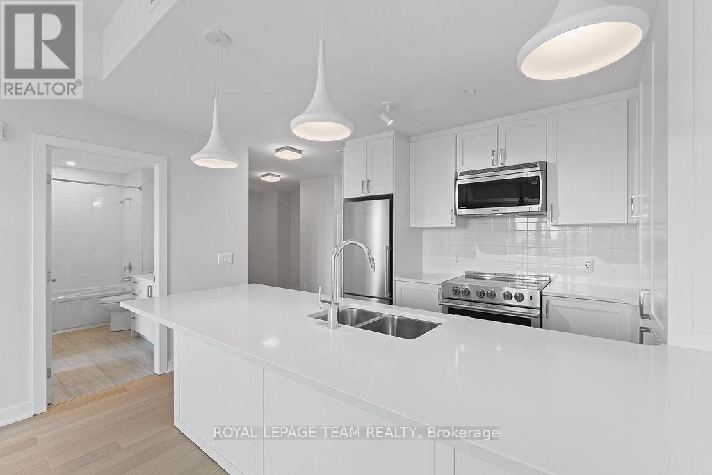 RARE 1 BEDROOM + DEN AT THE SPENCER - GREYSTONE VILLAGE. Experience the perfect blend of nature and urban living at The Spencer in Greystone Village, where contemporary design meets vibrant community charm. This beautifully designed 753 sq. ft. condo features a bright open-concept layout seamlessly connecting the kitchen and living areas. The stylish kitchen offers sleek quartz countertops, ample cabinetry, stainless steel appliances, and a convenient breakfast counter, perfect for both everyday living and entertaining. The spacious bedroom includes direct access to a cheater ensuite bathroom, while the versatile den provides the ideal space for a home office, study area, or cozy reading nook. Step out onto the west-facing balcony to enjoy fresh air and beautiful sunsets. Added conveniences include in-unit laundry and one underground parking space. Located in the heart of Greystone Village, residents enjoy direct access to scenic walking and cycling paths along the Rideau River. The building features outstanding amenities including a rooftop terrace with city views, lounge areas, gas fireplaces, and dining space, as well as a fitness studio, guest suite, bike storage, pet spa, and car & bike wash station. Just steps from vibrant arts, dining, shops, and convenient transit to downtown Ottawa, this is urban living at its finest. Tenant pays heat, hydro, water, internet, cable, phone, and tenant insurance. **Pictures were taken prior to current occupancy (id:64974)