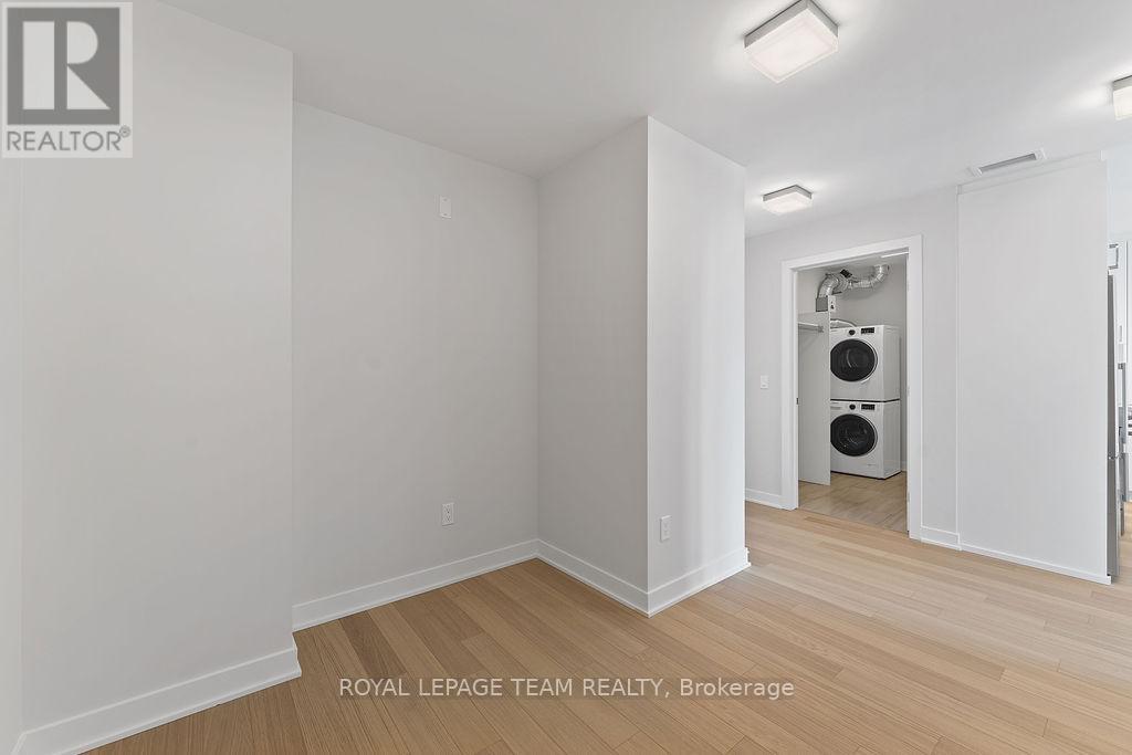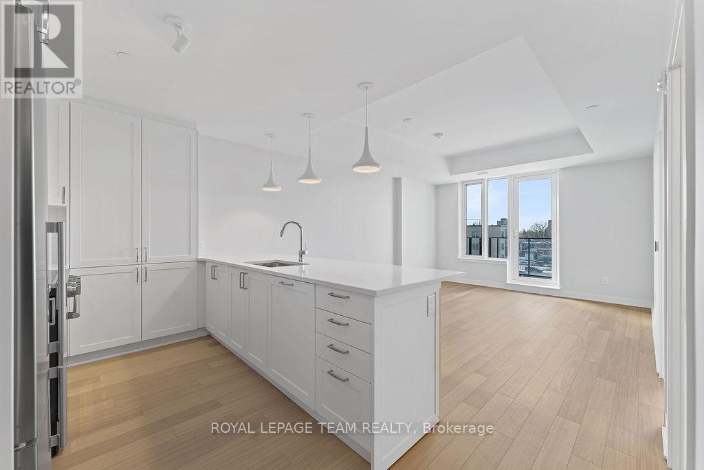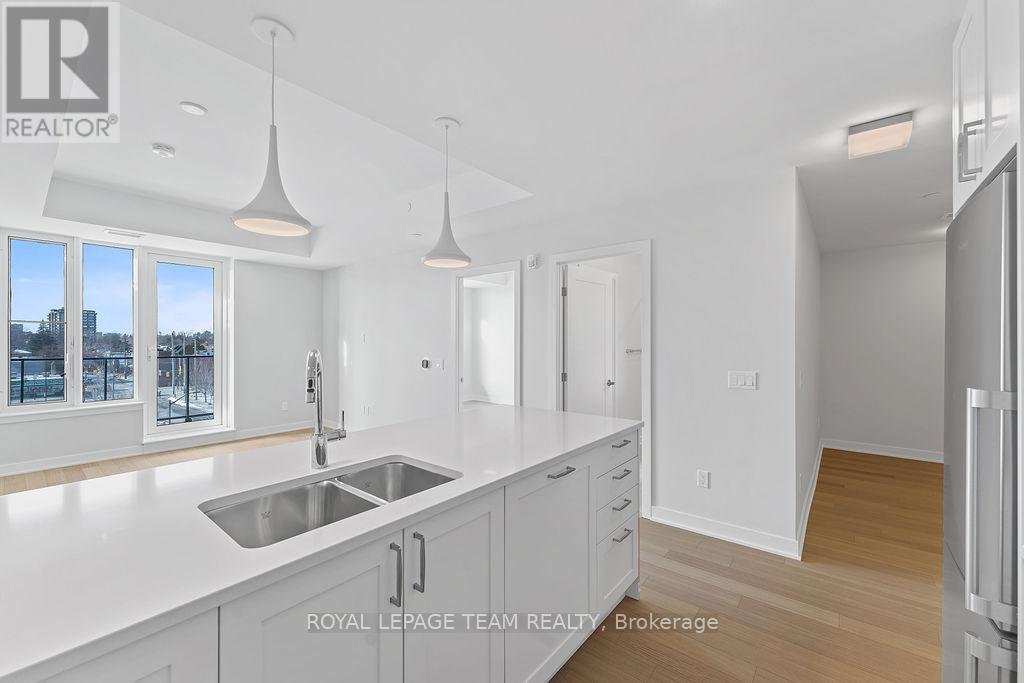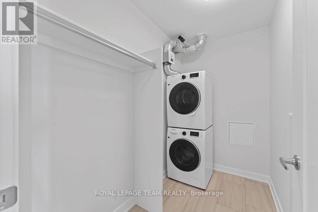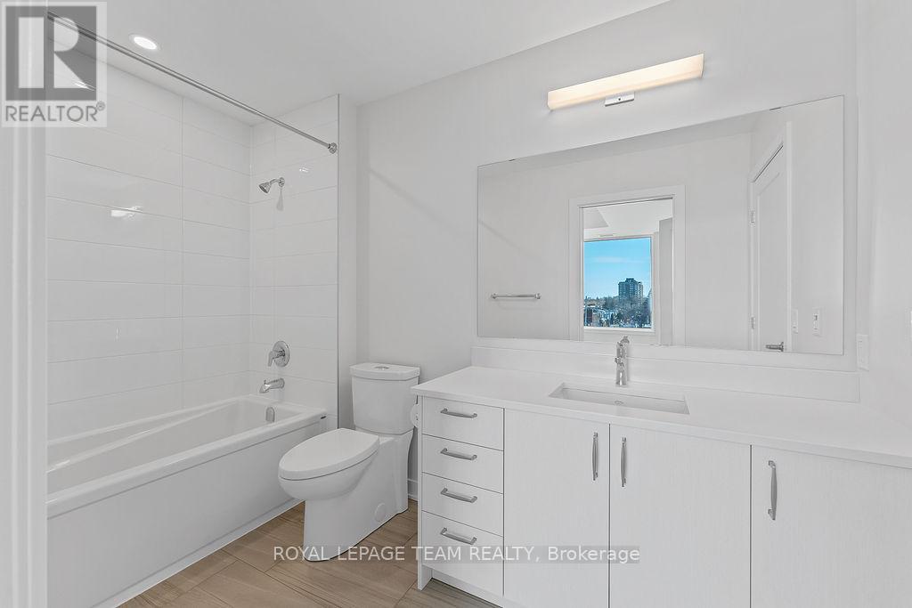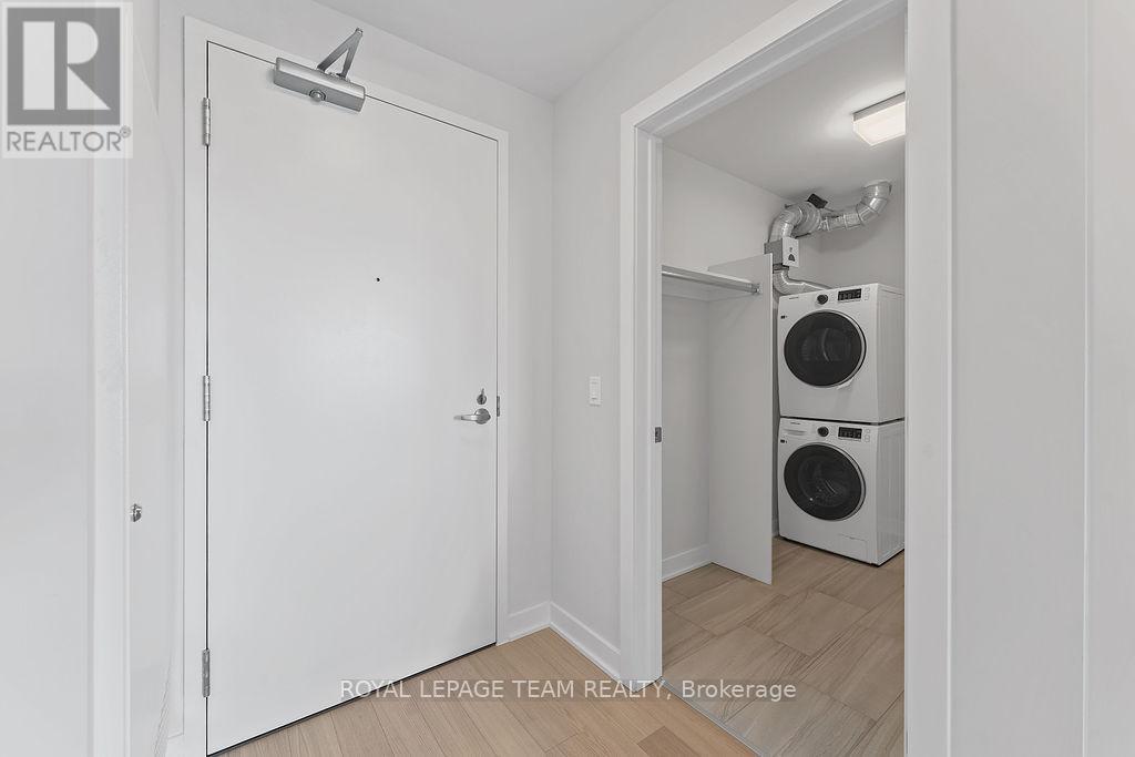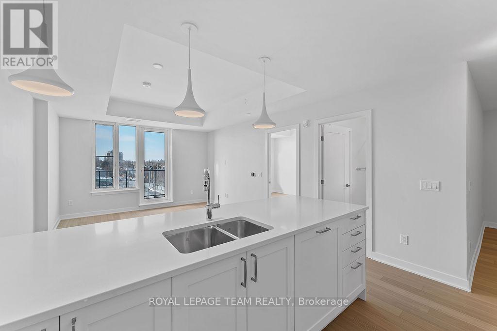 RARE 1 BEDROOM + DEN AT THE SPENCER - GREYSTONE VILLAGE. Experience the perfect blend of nature and urban living at The Spencer in Greystone Village, where contemporary design meets vibrant community charm. This beautifully designed 753 sq. ft. condo features a bright open-concept layout seamlessly connecting the kitchen and living areas. The stylish kitchen offers sleek quartz countertops, ample cabinetry, stainless steel appliances, and a convenient breakfast counter, perfect for both everyday living and entertaining. The spacious bedroom includes direct access to a cheater ensuite bathroom, while the versatile den provides the ideal space for a home office, study area, or cozy reading nook. Step out onto the west-facing balcony to enjoy fresh air and beautiful sunsets. Added conveniences include in-unit laundry and one underground parking space. Located in the heart of Greystone Village, residents enjoy direct access to scenic walking and cycling paths along the Rideau River. The building features outstanding amenities including a rooftop terrace with city views, lounge areas, gas fireplaces, and dining space, as well as a fitness studio, guest suite, bike storage, pet spa, and car & bike wash station. Just steps from vibrant arts, dining, shops, and convenient transit to downtown Ottawa, this is urban living at its finest. Tenant pays heat, hydro, water, internet, cable, phone, and tenant insurance. **Pictures were taken prior to current occupancy (id:64974)