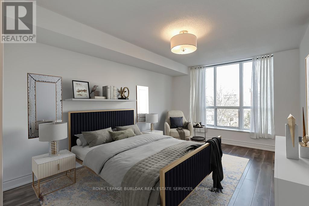 Lovely 2 bedroom, 2 bathroom condo in highly sought after Spencer's Landing, offering 978 sq. ft. of living space just steps from the lake and downtown Burlington. This unit features wood look flooring, an open-concept living and dining area with a walkout to a large balcony, perfect for relaxing or entertaining. The kitchen has granite countertops, a breakfast bar, and stainless steel appliances. The spacious primary suite includes a walk in closet and 4-piece ensuite with soaker tub and separate shower. The second bedroom also offers balcony access, and a three piece main bath and in suite laundry completes this great unit. In-door swimming pool, jacuzzi, gym, party room, concierge make this building a great place to live. Ideally located within walking distance of Spencer Smith Park, Burlington Beach, the Art Centre, and the vibrant downtown core, this home is close to all amenities, dining, and shopping, with quick highway access. AAA+ tenants only (id:64974)