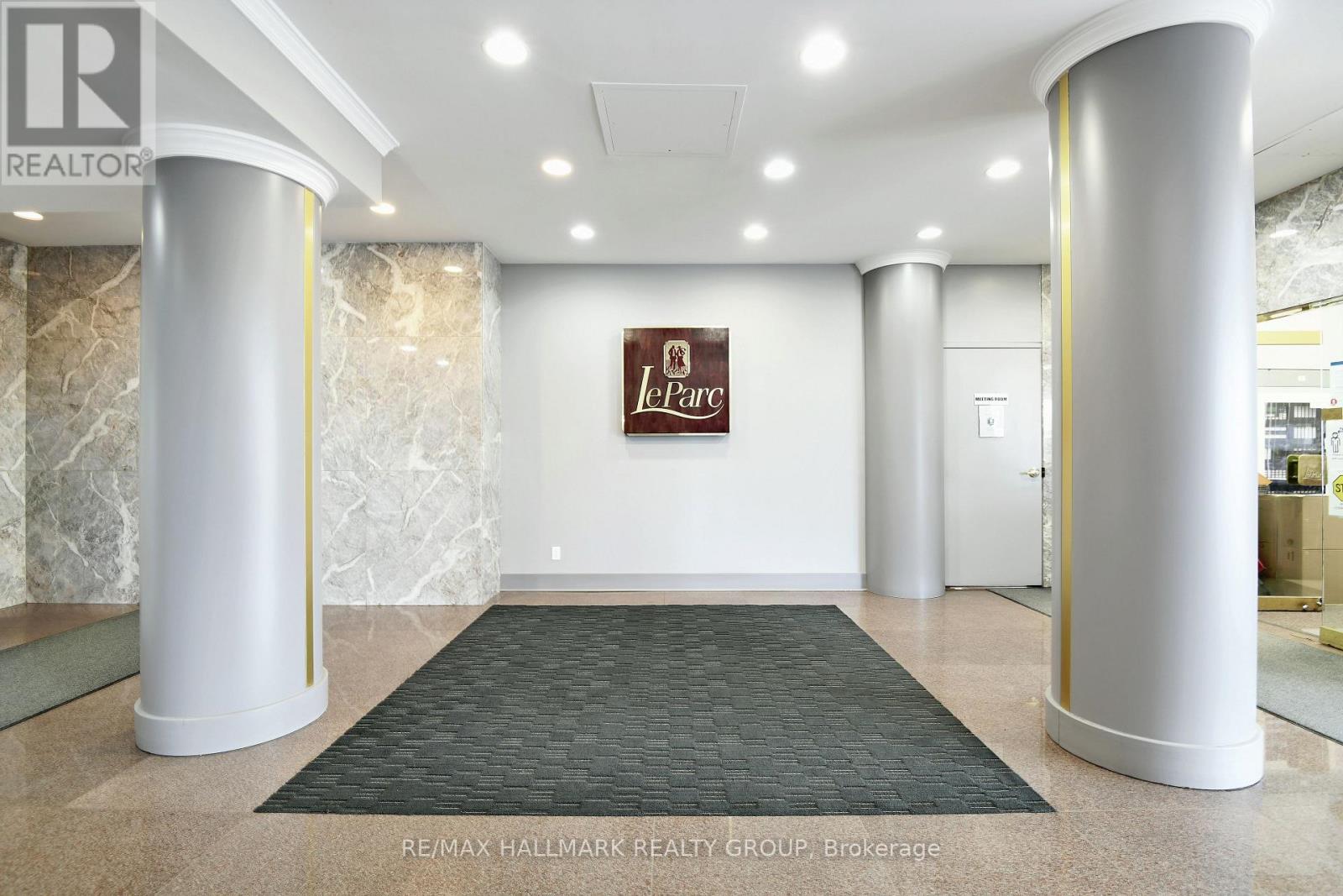 Move in ready, two bedrooms two full bathroom condo in sought after Le Parc. Bright & spacious dining/living room w/floor to ceiling windows. Features 2 sizeable bedrooms, 2 full updated bathrooms and in unit laundry. Large private balcony, and storage locker. Approx 1040 sq ft. Condo fees includes heat, hydro, water & recreational amenities such as indoor & outdoor pools, beautifully landscaped grounds w/walking paths, pond, exercise room & racquet courts, sauna, rec. room, 24/7 security and more. Many updates. Laminate and hardwood flooring. Great parking spot. Check this one out! (id:64974)