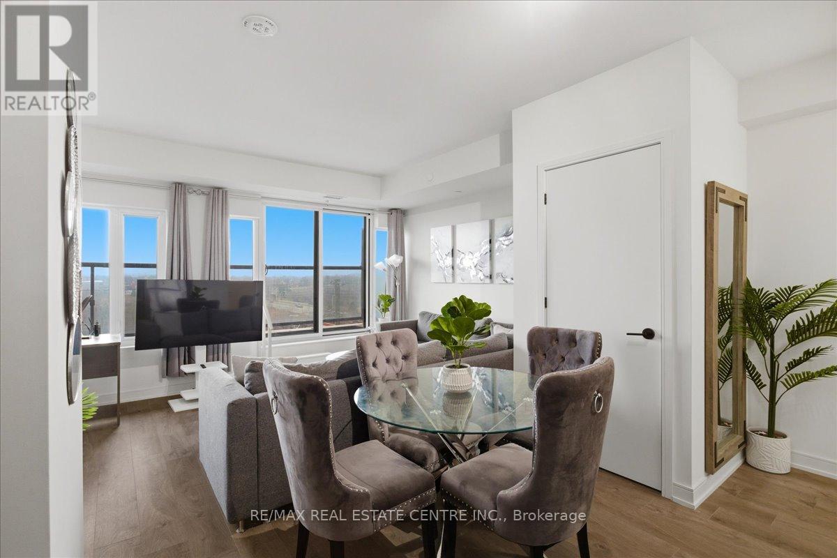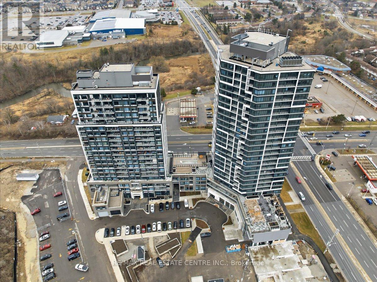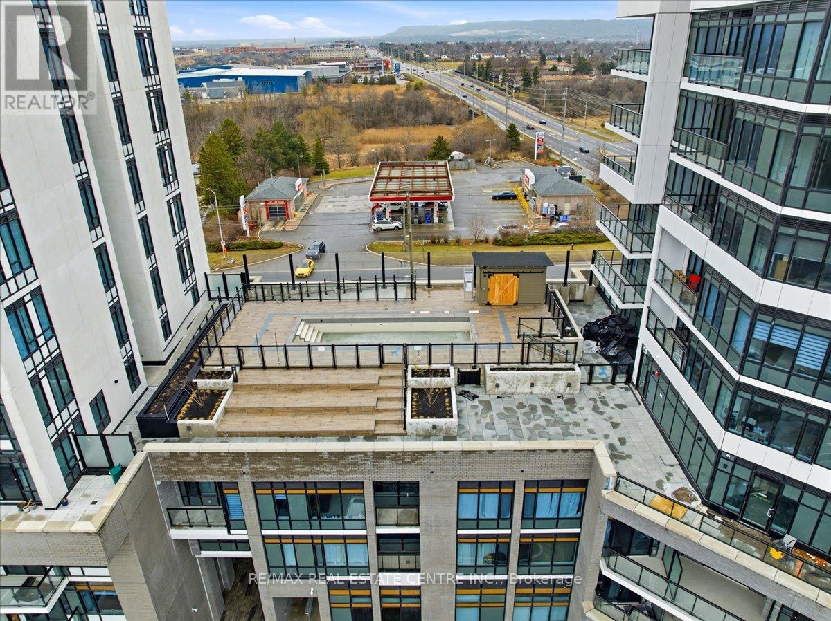 Is a stunning, well-kept, veyr bright, airy, 2 bedroom/2 Washroom mid-level Milton area condo that's perfectly situated on the South/East corner of HWY 25 and Derry in popular Coates neighbourhood of Milton close to plazas, Food Basics, restaurants, pub. transit, community parks, schools, trails, Milton Sports Centre, Milton District Hospital, Milton Mall and list goes on and on. The Connectt development by Lindvest has the distinction of being one of Milton's first and rare high-rise condominiums with great though and investment placed into lifestyle, conveniences and security. This particular unit comes with ground-breaking state-of-the-art amenities such as a full sized gym, yoga rooms, 24 hour concierge, party room, bike storage, pet spa, guest suites, party rooms, swimming pool, rooftop BBQ and cabannas, free wi-fi, business centre and so much more. The unit itself features decadent laminate flooring, sizeable kitchen w/backsplash, complimenting quarts countertops, stainless steel appliances, 9 ft ceilings throughout, 2 full bathrooms, stackable in-unit laundry, opem concept living w/ combined family and dining rooms, a large balcony, exclusive locker and 1 undergrlund parking spot. (id:64974)