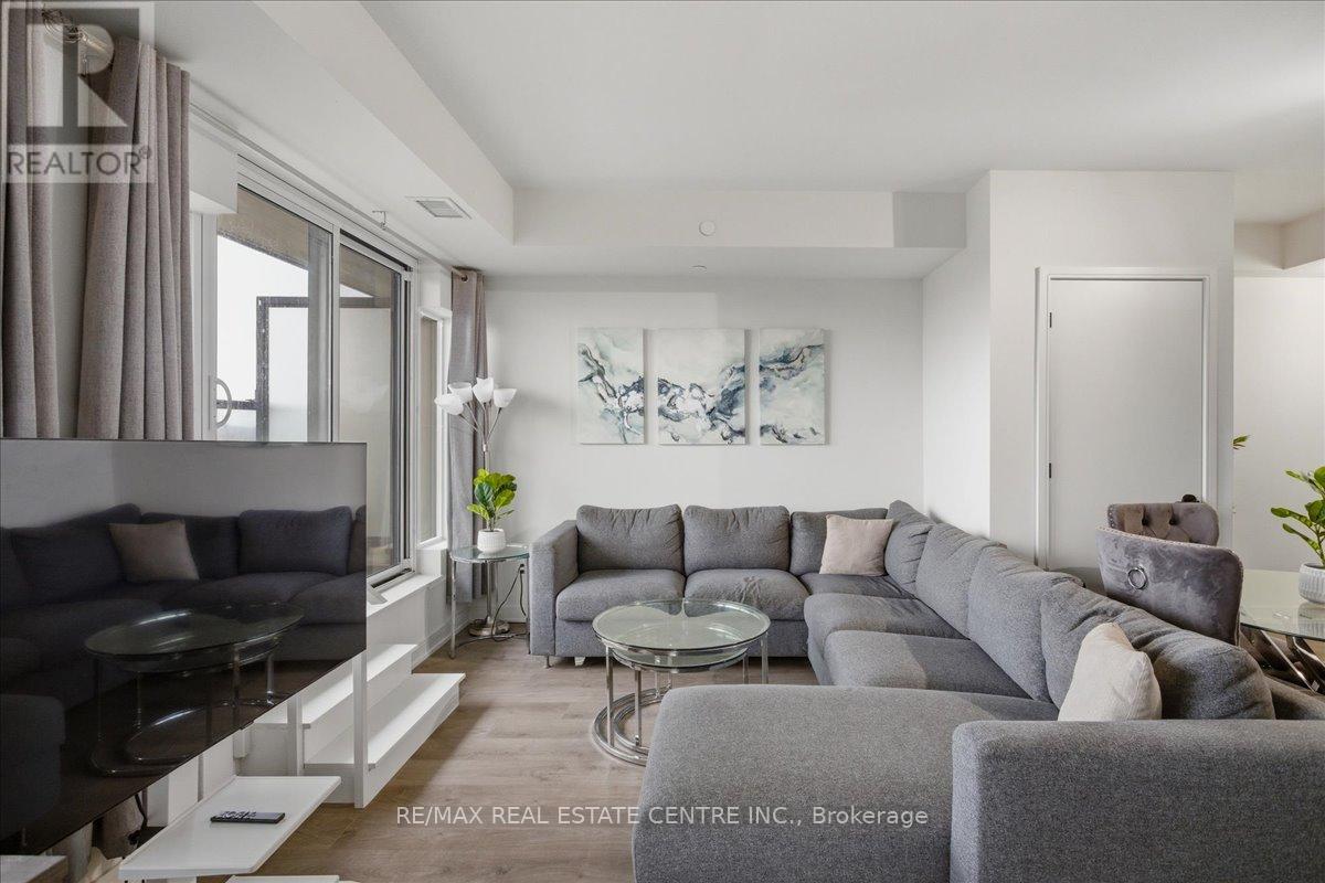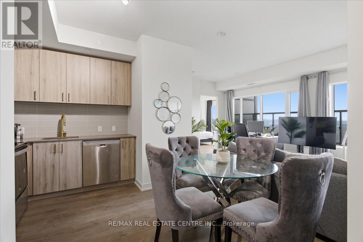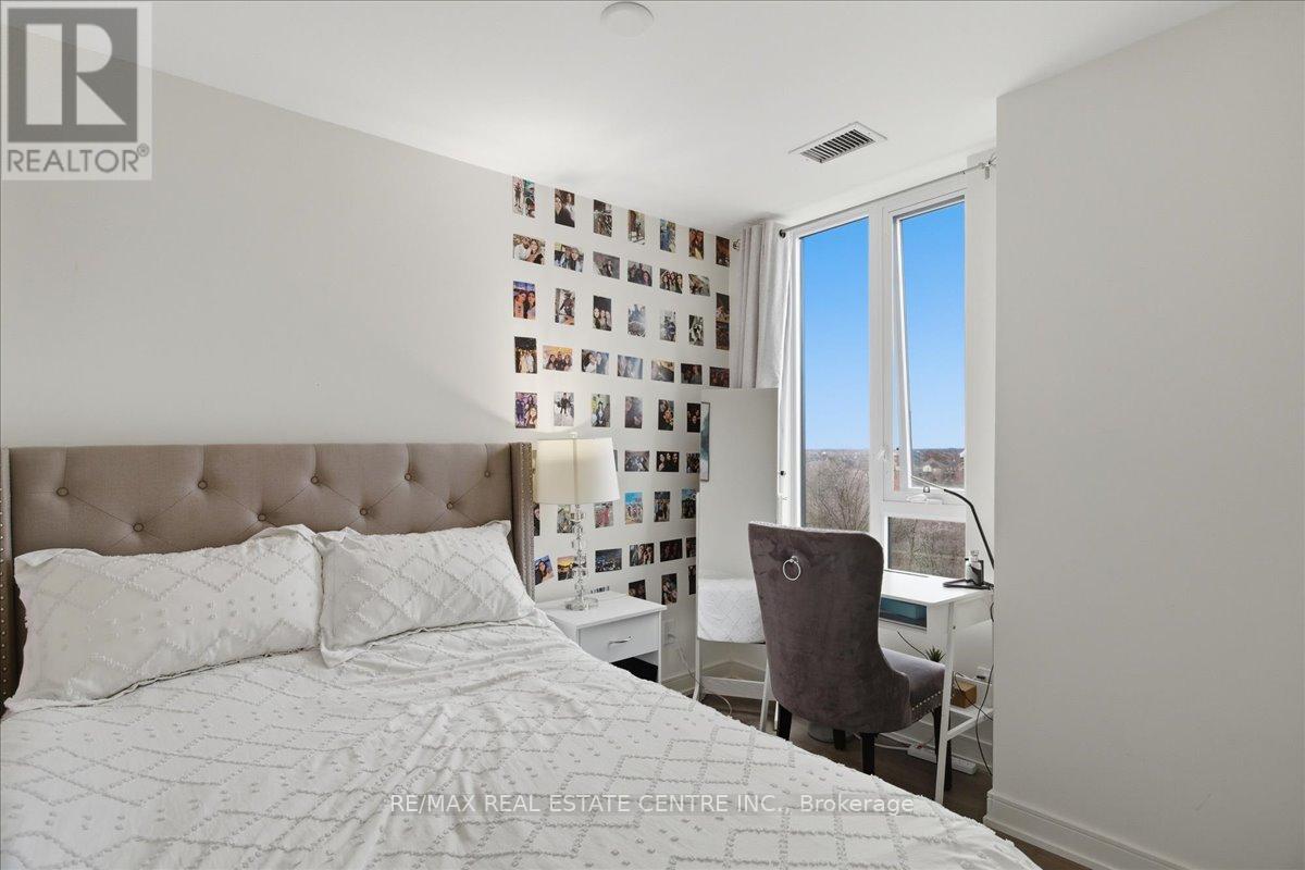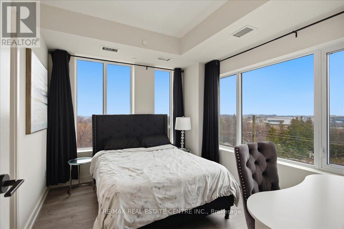 Is a stunning, well-kept, veyr bright, airy, 2 bedroom/2 Washroom mid-level Milton area condo that's perfectly situated on the South/East corner of HWY 25 and Derry in popular Coates neighbourhood of Milton close to plazas, Food Basics, restaurants, pub. transit, community parks, schools, trails, Milton Sports Centre, Milton District Hospital, Milton Mall and list goes on and on. The Connectt development by Lindvest has the distinction of being one of Milton's first and rare high-rise condominiums with great though and investment placed into lifestyle, conveniences and security. This particular unit comes with ground-breaking state-of-the-art amenities such as a full sized gym, yoga rooms, 24 hour concierge, party room, bike storage, pet spa, guest suites, party rooms, swimming pool, rooftop BBQ and cabannas, free wi-fi, business centre and so much more. The unit itself features decadent laminate flooring, sizeable kitchen w/backsplash, complimenting quarts countertops, stainless steel appliances, 9 ft ceilings throughout, 2 full bathrooms, stackable in-unit laundry, opem concept living w/ combined family and dining rooms, a large balcony, exclusive locker and 1 undergrlund parking spot. (id:64974)