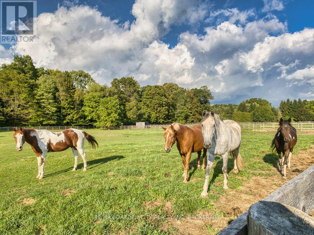 This 15.46 acre professional grade equestrian facility is the most sought after and picturesque horse farm in the Niagara Region. Nestled in the hills of North Pelham surrounded by mature woods and pasture with groomed private trails. Frost free hydrants service each paddock. Two 1/2 acre, one 1 acre, and one 2 acre paddock with 3 shelters plus a 6 acre hayfield. Two massive sand rings 200' x 135' and 150' x 120' with good footing. 20 Stall barn, wash bay, tack room, viewing lounge and office with a 140' x 60' indoor arena. Second barn 50' x 30' with 6 stalls plus a washroom. Third smaller barn has 2 stalls presently used as a chicken coop and dog kennel. A 40' x 30' shop with a loft area. Inviting, updated, 3+1 bedroom, 2 storey farmhouse built in 1953. 2 Bathrooms. New quartz counters with oversized fire clay farmhouse sink. Formal living and dining rooms, main floor laundry and office. Hardwood floors throughout the upstairs. Master bedroom has ensuite privileges. Full height basement with a bright rec room, wainscotting and wood stove. Wine cellar, storage room, 200 amp breakers, water softener, CA, forced air natural gas furnace This well maintained property has endless possibilities from an income investment to a great family property and everything in between. Please contact your Realtor for more detailed information. By appointment only, do not go direct to the property. (id:64974)