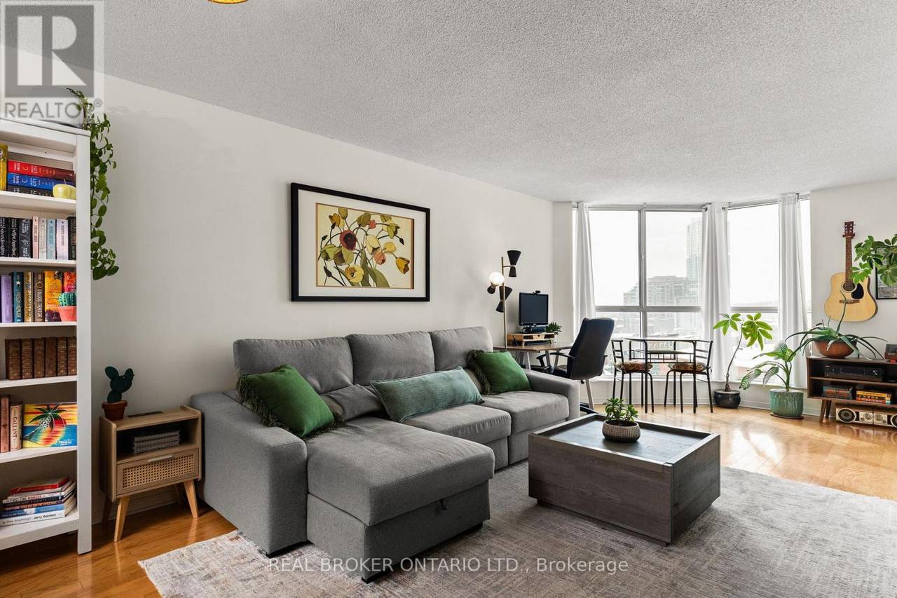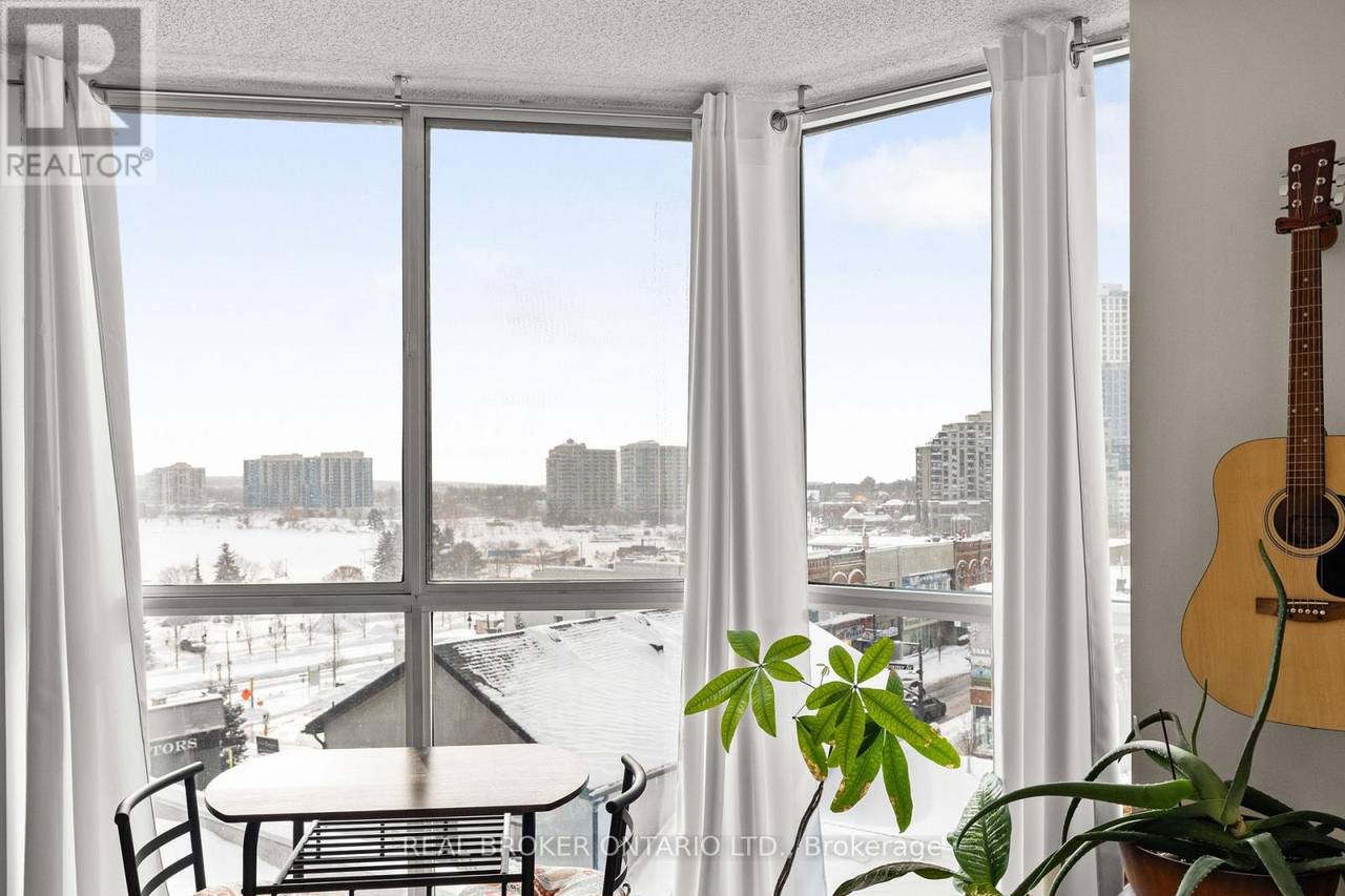 UTILITIES INCLUDED IN CONDO FEES! This beautifully updated 1-bed + den, 1-bath condo offers south-west exposure with fantastic views of Kempenfelt Bay, the marina, and downtown Barrie. Large windows flood the space with natural light, showcasing stunning sunsets and the city lights at night. The 775-square-foot unit features hardwood floors throughout the living room and den, with vinyl flooring in the spacious bedroom. A newly renovated bathroom elevates the space with a modern tub, toilet, vanity, and gorgeous tile work that seamlessly flows into the foyer. The den is perfect for a home office or hobby space, and the unit also offers convenient in-suite laundry. Included with the unit are one underground parking space and a storage locker. Building amenities feature an indoor pool, sauna, hot tub, gym, and a party/games room with monthly events. Condo fees cover heat/central air, hydro, water, building insurance, parking, and common elements, with on-site management, a superintendent, dual elevators, and visitor parking. Located just steps from waterfront trails, shopping, restaurants, and transit, this is downtown Barrie living at its best. (id:64974)