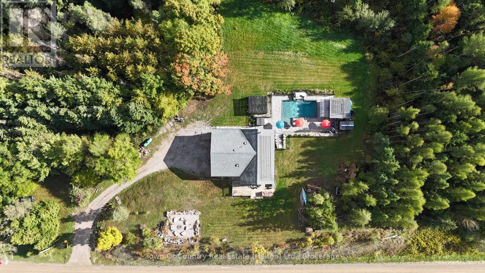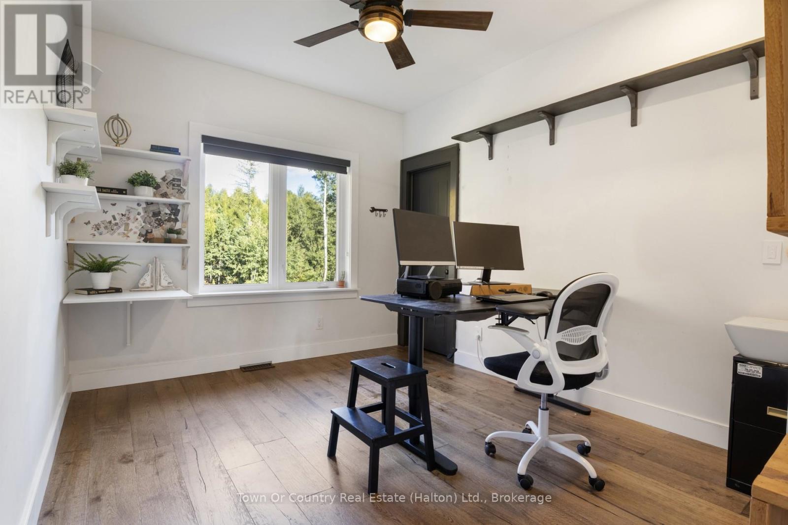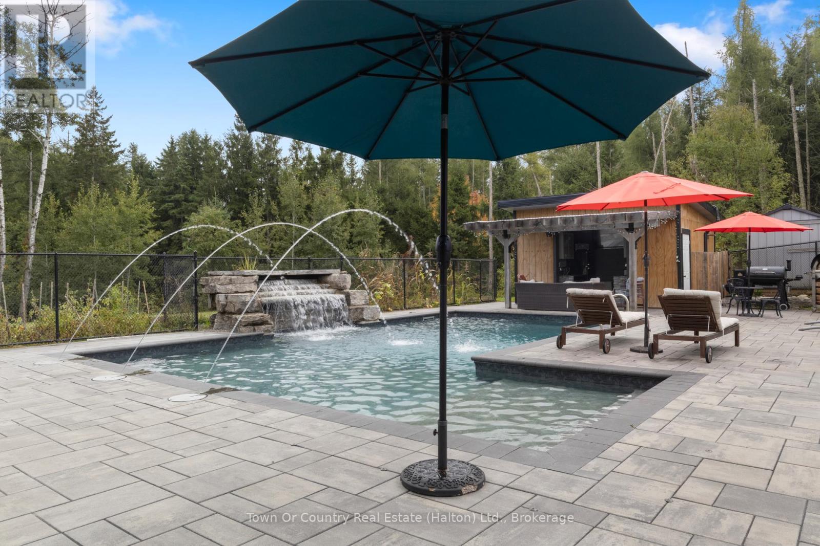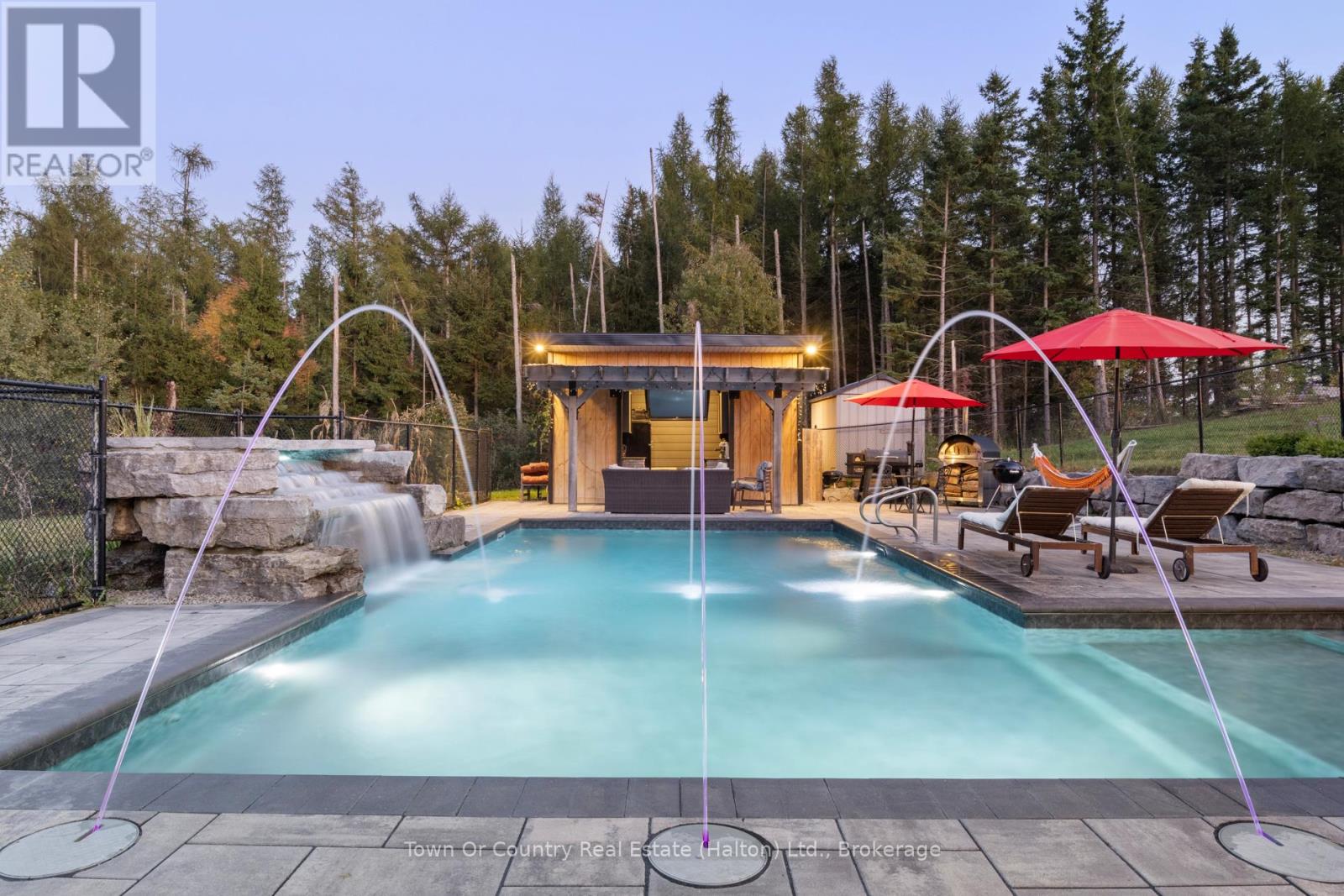 Welcome to 5041 Third Line in the south end of Erin - A custom-built 2017 bungalow with a walk-out basement leading to a professionally landscaped backyard featuring an inground pool with rock waterfall, set on a private 1.4-acre retreat surrounded by nature. Designed for both everyday comfort and effortless entertaining, this home offers a rare blend of space, privacy, and thoughtful design. The main floor bungalow layout is bright and open, with oversized windows that flood the home with natural light and frame peaceful views of the backyard. With 3 bedrooms, a dedicated office, and 3.5 bathrooms, the floor plan balances functionality with warmth. A striking floor-to-ceiling wood-burning fireplace, ducted into the central air system, adds both character and efficient heat. The kitchen and dining area are made for gatherings, featuring sleek appliances and room for a large family table. The fully finished walk-out basement extends the living space and functions like a second home. Complete with a family room, private office, generous storage, and a separate entrance to the side yard, it's ideal for multi-generational living, a future in-law suite, or relaxed game and movie nights. Step outside to your own resort-style escape. The landscaped pool with rock waterfall is the centre piece of a backyard designed for both entertaining and quiet moments. Stone interlock lounging areas, a firepit, terraced hardscaping, and mature trees create exceptional privacy and a true connection to nature. Additional highlights include a heated 3-car garage and a peaceful setting that feels worlds away - yet remains just 10 minutes to groceries, shops, trails, and Tim Hortons. Whether you're looking for a custom bungalow with a walk-out basement, a private property with a pool, or a home that adapts beautifully to changing life stages, 5041 Third Line offers a lifestyle that's hard to replace. (id:64974)