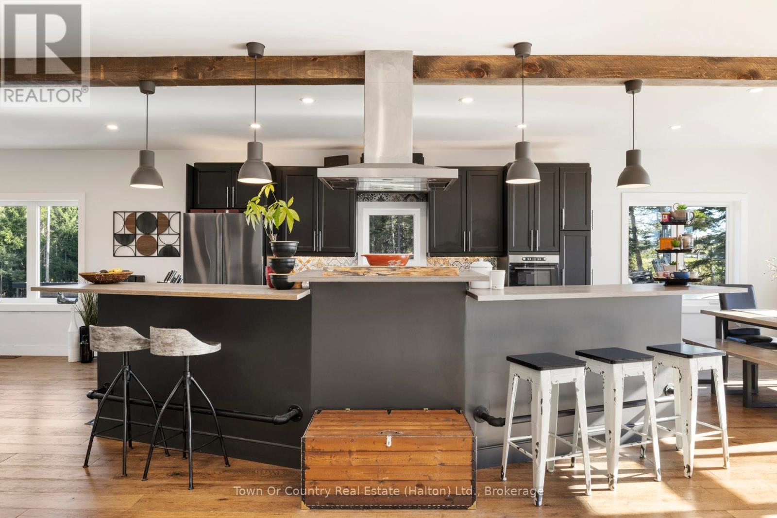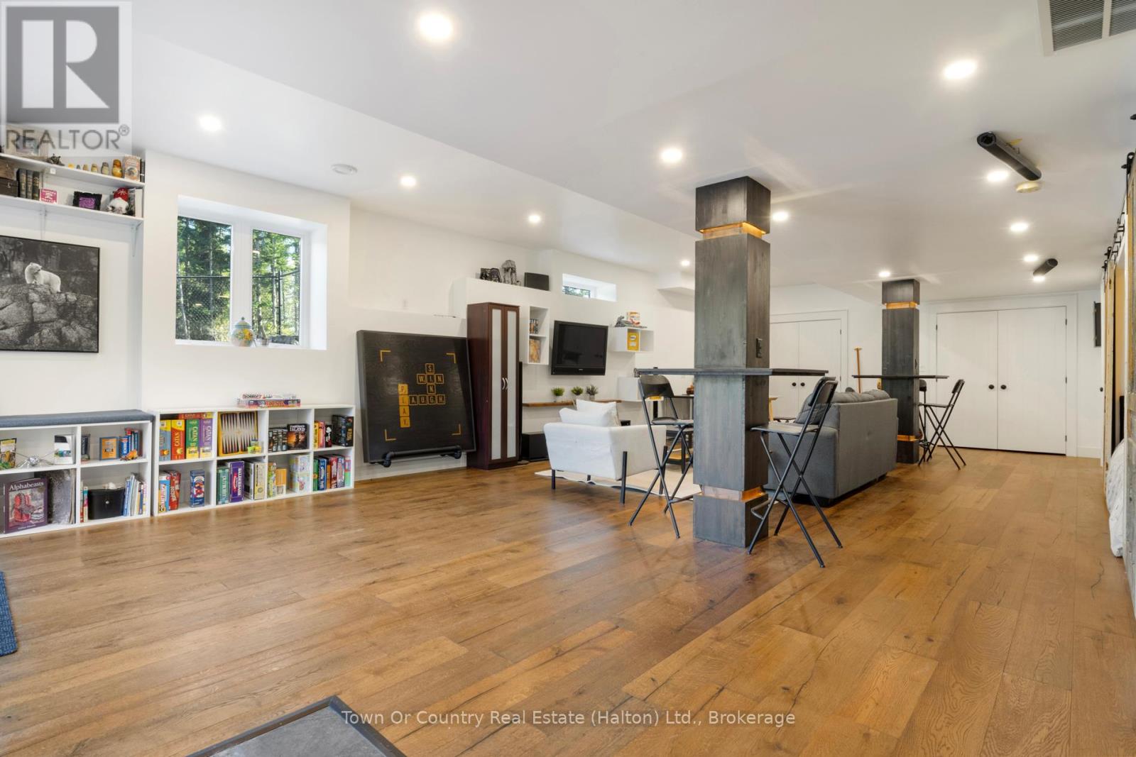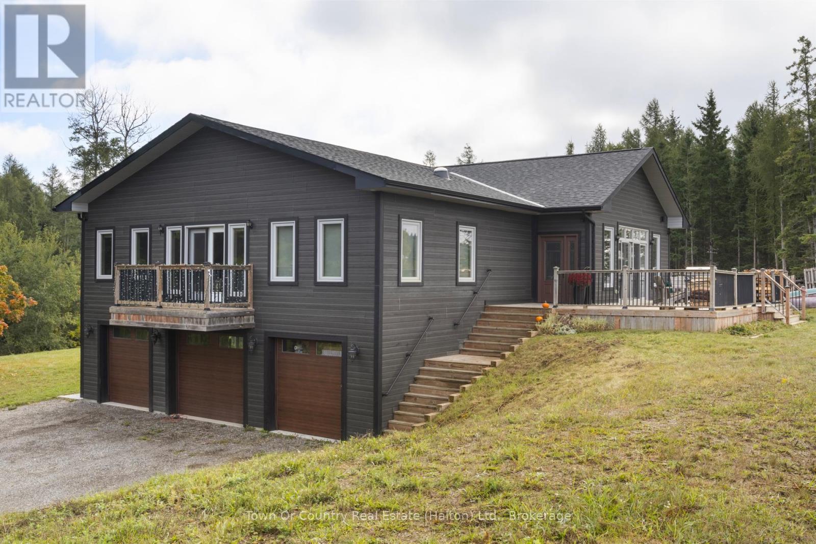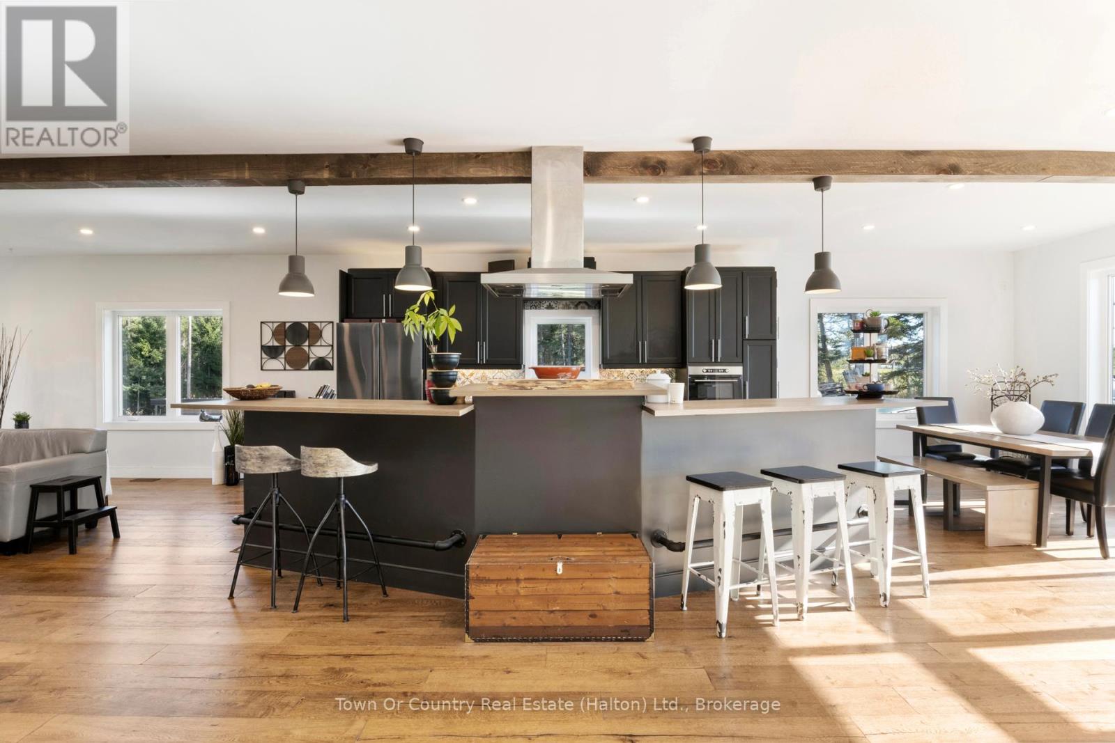 Welcome to 5041 Third Line in the south end of Erin - A custom-built 2017 bungalow with a walk-out basement leading to a professionally landscaped backyard featuring an inground pool with rock waterfall, set on a private 1.4-acre retreat surrounded by nature. Designed for both everyday comfort and effortless entertaining, this home offers a rare blend of space, privacy, and thoughtful design. The main floor bungalow layout is bright and open, with oversized windows that flood the home with natural light and frame peaceful views of the backyard. With 3 bedrooms, a dedicated office, and 3.5 bathrooms, the floor plan balances functionality with warmth. A striking floor-to-ceiling wood-burning fireplace, ducted into the central air system, adds both character and efficient heat. The kitchen and dining area are made for gatherings, featuring sleek appliances and room for a large family table. The fully finished walk-out basement extends the living space and functions like a second home. Complete with a family room, private office, generous storage, and a separate entrance to the side yard, it's ideal for multi-generational living, a future in-law suite, or relaxed game and movie nights. Step outside to your own resort-style escape. The landscaped pool with rock waterfall is the centre piece of a backyard designed for both entertaining and quiet moments. Stone interlock lounging areas, a firepit, terraced hardscaping, and mature trees create exceptional privacy and a true connection to nature. Additional highlights include a heated 3-car garage and a peaceful setting that feels worlds away - yet remains just 10 minutes to groceries, shops, trails, and Tim Hortons. Whether you're looking for a custom bungalow with a walk-out basement, a private property with a pool, or a home that adapts beautifully to changing life stages, 5041 Third Line offers a lifestyle that's hard to replace. (id:64974)