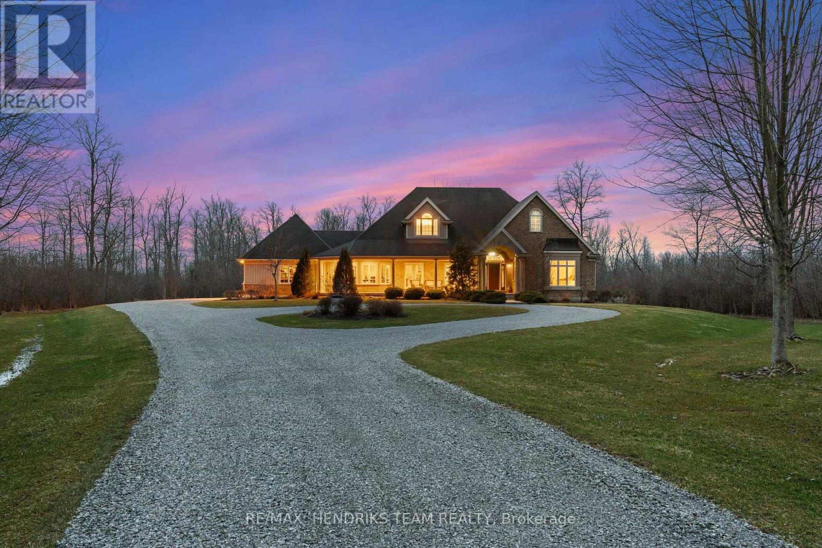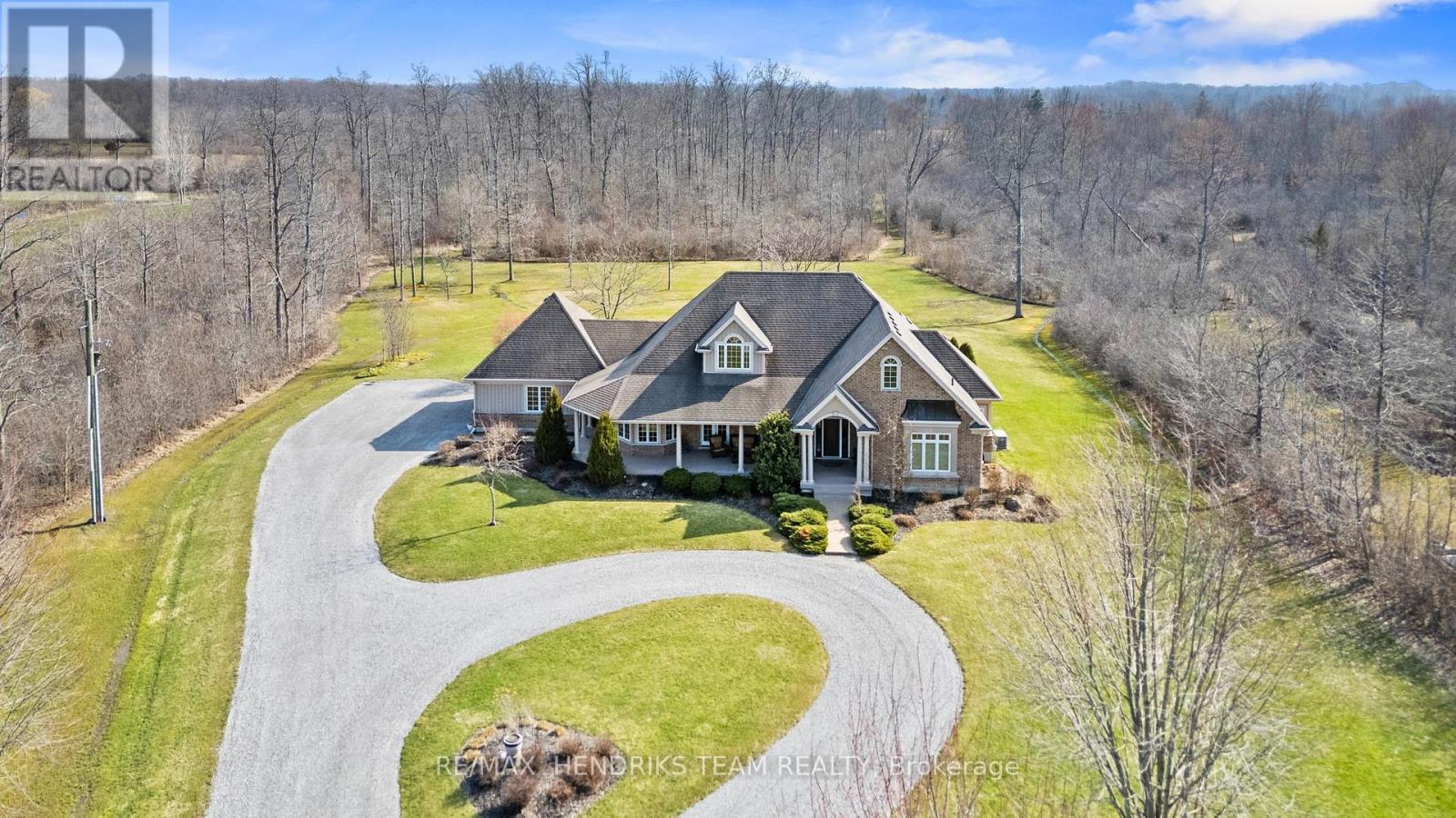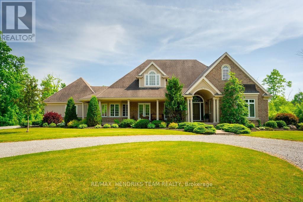 Imagine waking up to pure serenity everyday. The feeling of complete privacy makes this home so special. The entrance to this 11.8 acre property offers an amazing presentation of professional landscaping and prestigious architecture. A meandering tree lined driveway leads its way to a stately custom built bungalow with an impressive arched entranceway and covered front porch. Inside, a bright foyer opens with sightlines to the backyard which showcases its natural surroundings. The living room features cathedral ceilings and a floor to ceiling stone fireplace with gas insert. This space flows into a formal dining area with sliding glass doors accessing the back patio. The kitchen is designed for convenience, comfort and entertaining. It also offers a panoramic view of the front yard and gardens. A lofted upper level provides flexible space for home office use or lounge. The oversized primary suite includes a walk in closet and five piece ensuite and connects directly to the covered porch by separate doorway. The second bedroom, main floor laundry and double car garage are generous in size. The lower level features a rec-room with new carpeting, pot lights and gas fireplace, along with an oversized bedroom and two piece bathroom. (rough in provided for a future shower/tub). Experience the outside grounds which feature a mature forest, walking trails, backyard illumination, beautiful sunsets and spectacular night time sky's. Meticulous landscaping integrates the home seamlessly into the natural environment which only time and vision can create . This is more than a home, it's a lifestyle treasure. Additionally this property is located minutes away from Crystal Beach and Sherkston Shores and a host of other amenities including marinas, golf clubs, bicycle trails, shopping, outdoor markets and restaurants. Venues located in Niagara Falls, Buffalo and Niagara on the Lake are within convenient driving distance. (id:64974)
