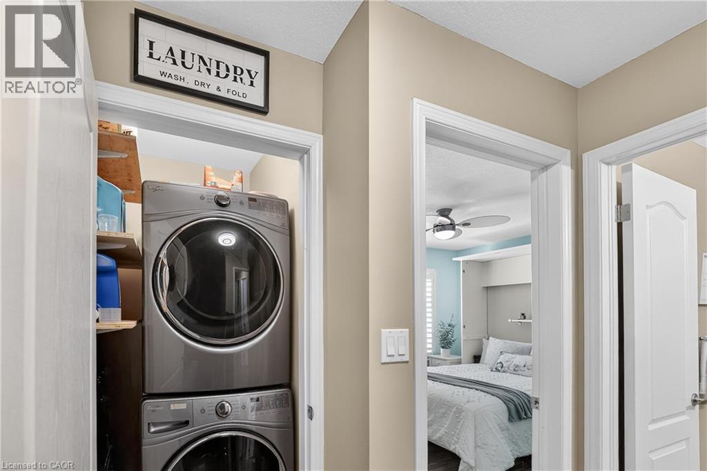 SMART, STYLISH LIVING … Comfort, functionality & smart design come together at 5048 Serena Drive in Beamsville. This well-appointed 2-storey stacked condo townhome offers an easy-care lifestyle w/thoughtfully designed living spaces and quality finishes throughout. Entry begins with a tiled foyer featuring wood stairs leading to the main living level and down to convenient INSIDE ACCESS from the single garage, located at rear of building. Main floor living space is BRIGHT & INVITING, anchored by a spacious living room w/durable vinyl flooring & patio doors that open onto a BALCONY - a perfect spot to enjoy fresh air or a quiet moment. Just off the living area, a utility room provides storage & mechanical access. The kitchen & dinette area offer a comfortable everyday layout w/tile flooring, breakfast bar w/GRANITE countertop & generous cabinetry providing excellent storage & workspace. Pot lights enhance the kitchen area, and a convenient 2-pc bath w/UPGRADED high-profile toilet completes the main level. Upstairs, the second level offers 2 bedrooms, 2 bathrooms, and convenient, stackable, BEDROOM-LEVEL LAUNDRY. Vinyl flooring runs through the hallway and bedrooms, creating a clean and cohesive feel. The second bedroom features a MURPHY BED, providing flexible space for guests, home office, or everyday use. Spacious primary bedroom offers a comfortable retreat w/professionally installed closet organizers & 3-pc ensuite featuring a tile surround shower & NEW high-profile toilet. A separate 4-pc bath w/another NEW high-profile toilet completes the level. California shutters throughout the upper level add timeless style and privacy while allowing natural light to flow through the space. Well-designed, low-maintenance living in a convenient Beamsville location that is close to local amenities, schools, shopping, wineries, and easy highway access make this home a fantastic option for all. CLICK ON MULTIMEDIA for virtual tour, drone photos, floor plans & more. (id:64974)