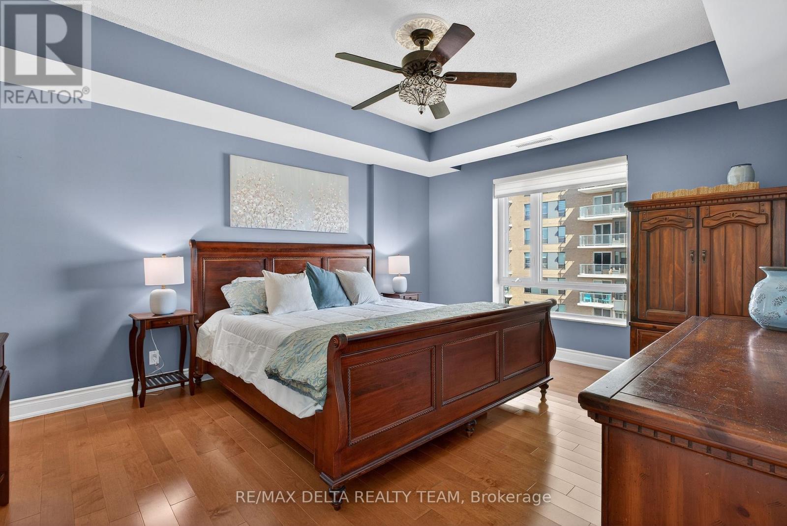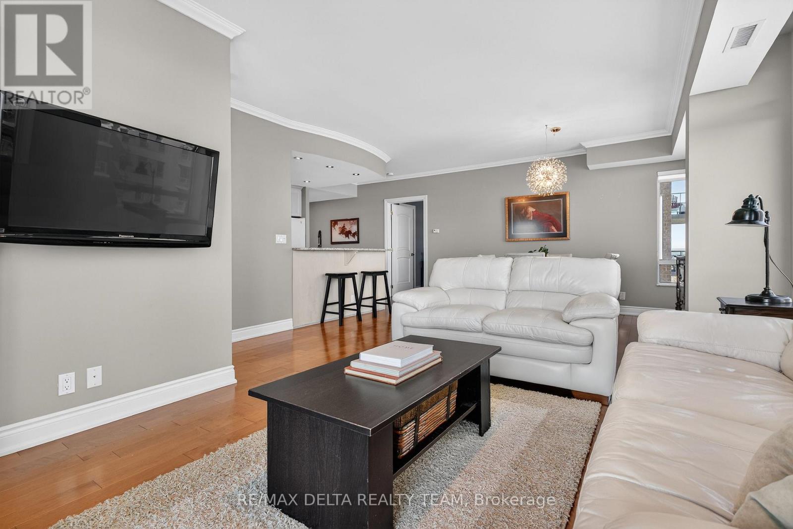 Welcome to Petrie's Landing - where waterfront living meets everyday comfort. This beautifully maintained 2-bedroom, 2 full bathroom condo offers a bright, open-concept layout with abundant natural light and stunning views of the Ottawa River from your private balcony. Meticulously cared for and in true move-in condition, this home showcases genuine pride of ownership throughout. Finished with high-end details, including rich hardwood flooring, granite countertops, and elegant finishes, the space strikes the perfect balance of style and functionality. The kitchen features a breakfast bar, modern backsplash, and ample cabinetry - ideal for both entertaining and daily living. The living and dining areas flow seamlessly, framed by large windows that flood the space with natural light and draw your eye toward the water. Step onto the balcony and take in the river views - a rare and calming backdrop to your everyday life. The primary bedroom offers a custom walk-in closet and a well-appointed ensuite bath with a low barrier glass shower enclosure, while the second bedroom and full bathroom provide flexibility for guests, family, or a home office. A rare bonus: 2 parking spaces (one underground and one above ground space) and 2 storage lockers, adding exceptional value and convenience. Residents enjoy premium amenities including a fitness center, party room, library/lounge, and a beautifully landscaped riverside patio with BBQ area. Located steps to the Ottawa River, scenic trails, and Petrie Island, and just minutes to Place D' Orléans, Hwy 174, and future LRT - this is effortless condo living in one of Orléans' most desirable communities. (id:64974)