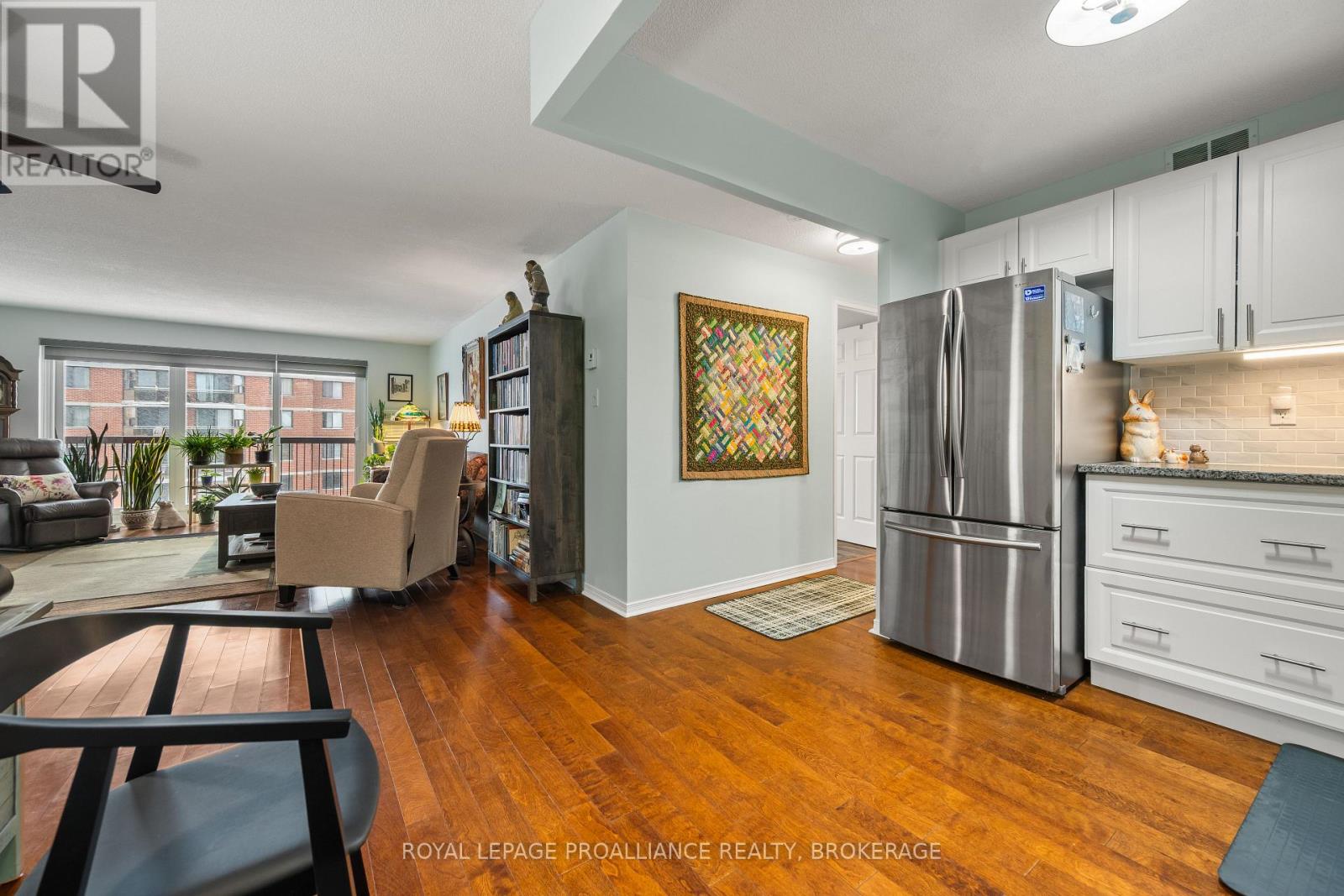 Welcome to Unit 505 at 14 Greenview Drive, a bright & beautiful condo centrally located in one of Kingston's most convenient neighborhoods. This exceptional suite is one of the only units in the building featuring a fully open-concept kitchen, transforming the traditional layout into a far more spacious, functional, & contemporary design. The equipped open kitchen flows seamlessly into the dining & living areas, creating an inviting, connected space that feels significantly larger than its counterparts. With ample cabinetry, generous counter space, & clear sightlines across the main living areas, it's a layout that enhances everyday living & makes hosting effortless. The living room is sun-filled & comfortable, offering flexibility for multiple furniture arrangements & easy access to a private balcony-perfect for morning coffee, fresh air, or unwinding with an evening view. The bedrooms are well-proportioned, the 3pc bathroom is tastefully updated & the unit also includes thoughtful closet space. The entire unit feels bright & airy thanks to the fifth-floor elevation & wide window exposure. Residents of 14 Greenview Drive enjoy a well-managed building with excellent amenities, including an outdoor pool, a library/lounge, a games room, common laundry, bike storage, secure entry, & dedicated parking. Located steps from public transit, parks, & a golf course, & just minutes to downtown Kingston, Queen's University, & hospitals, this is a truly great condo to call home. Perfect for first-time buyers, downsizers, or investors seeking a turnkey space in a prime location. (id:64974)