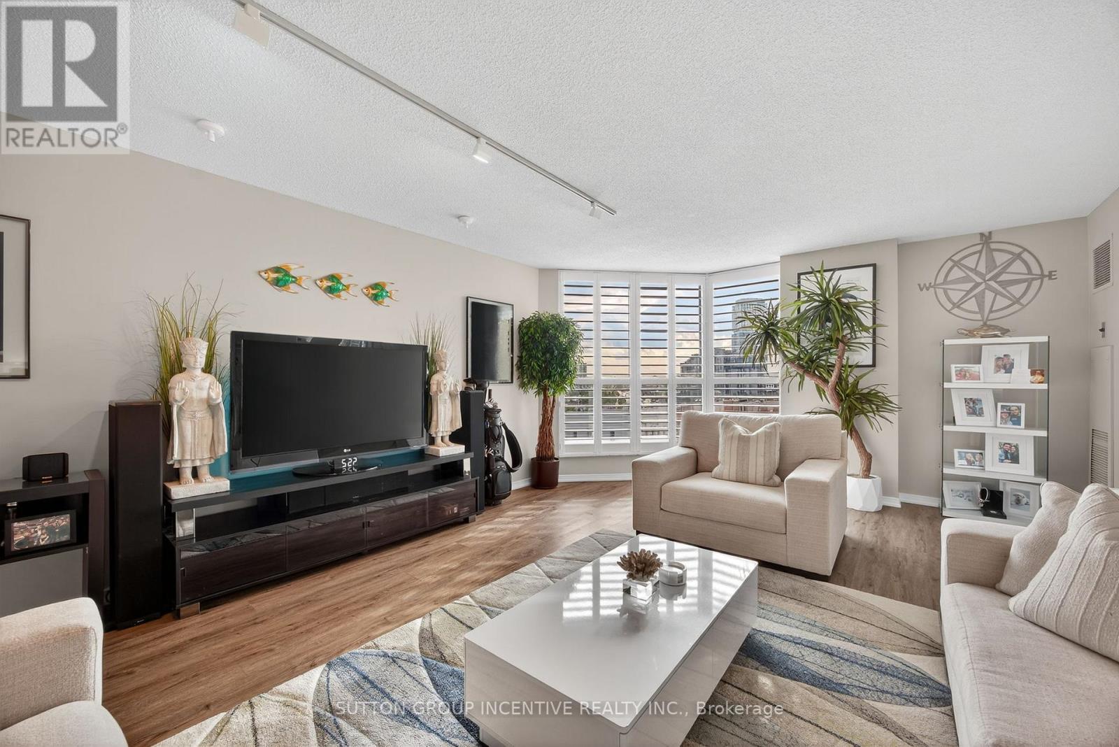 SHOWS LIKE A MODEL! THIS CONDO SHOULD BE IN A MAGAZINE! STUNNING BRIGHT 855 SQUARE FEET 1 BEDROOM + DEN CONDO IN PRIME DOWNTOWN LOCATION WITH BEAUTIFUL WATERFRONT VIEWS! MANY FEATURES: QUALITY LAMINATE/NO RUGS, NEWER STAINLESS STEEL APPLIANCES,BACKSPLASH IN KITCHEN,GLASS SHOWER,CALIFORNIA SHUTTERS,NEW LIGHTS, FRESH PAINT, FURNITURE NEGOTIABLE, EXCELLENT UNDERGROUND PARKING SPOT, LOCKER,POOL,HOT TUB,GYM,PARTY ROOM++ FEES INCLUDE:HEAT/HYDRO/WATER & MORE!!! SHOWS 10++ (id:64974)