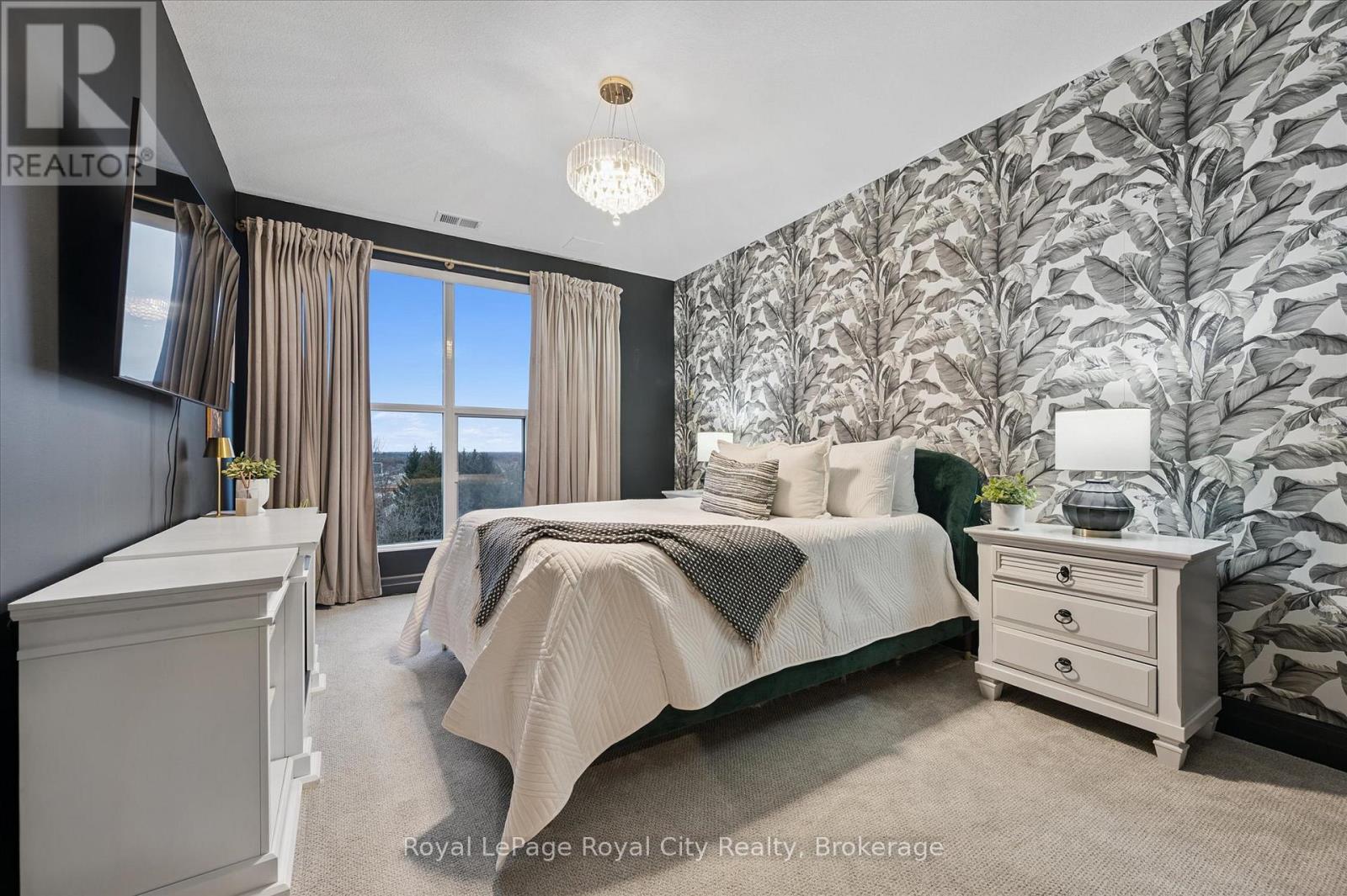 Situated in the prestigious Gordon Square Towers, Suite 505 is an exceptional executive 2 bedroom + den corner residence that is a show stopper! Designed for those who value elevated living, this luxurious condominium showcases floor-to-ceiling windows framing breathtaking views from every room, flooding the space with natural light and highlighting the soaring ceilings and rich engineered hardwood . The beautifully appointed kitchen flows effortlessly into the open-concept living area, creating a refined yet comfortable setting ideal for entertaining, working from home, or simply unwinding at the end of the day. The expansive primary suite offers a peaceful retreat with a gorgeous ensuite, while the versatile den provides flexibility as a home office, guest space, or media room. Perfectly suited for professionals, down sizers seeking turnkey luxury, or executive buyers craving low-maintenance living without compromise. Residents of 1800 Gordon enjoy an unmatched lifestyle with thoughtfully curated amenities including a fitness centre, golf simulator, and an impressive SkyLounge with billiards and a wet bar, plus a lovely guest suite, all designed to extend living beyond the suite itself. Set in South Guelph's most sought-after, amenity-rich neighbourhood, this remarkable residence offers a rare blend of sophistication, convenience, and community - a truly elevated way of life. (id:64974)
