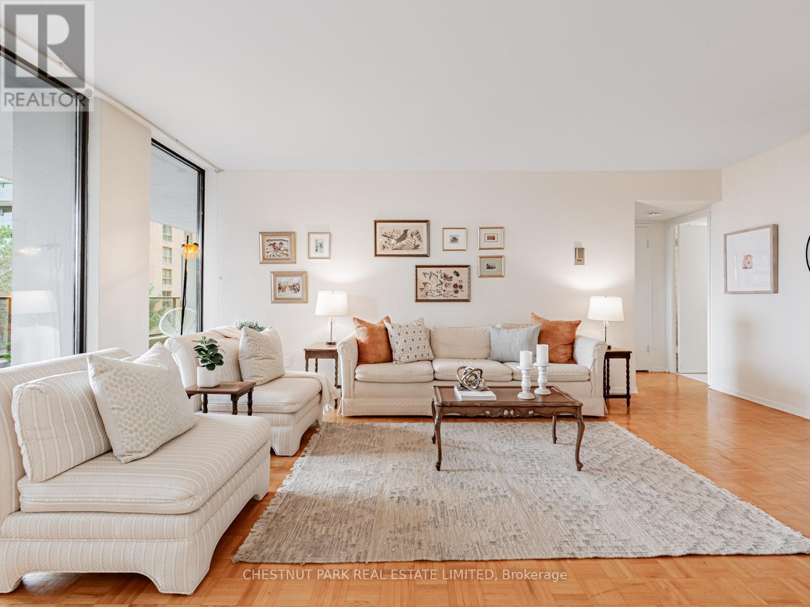 Stunning south views over the city skyline. Floor-to-ceiling windows overlooking the pool, Balfour Park, and the city skyline enhance the views from every room. Approximately 718 sq ft, plus a 210 sq ft balcony. This beautifully maintained 1-bedroom, 1-bathroom suite is in perfectly kept original condition. Located in an oasis of calm with heated pool, sauna, exercise rooms and 24/7 consierge. It is steps away from the shops, subway, library, services, cappuccino bars, and restaurants at Yonge and st Clair. This building is perfectly situated in the city, offering the best of urban living in a park-like setting. The friendly, welcoming community is another asset of this first-class co-op. Book clubs, tai chi, knitting groups, coffee get-togethers, movie nights, hobby room, men's club, walking groups, and more. Located close to the gardens and walking paths of Balfour Park, a morning or evening stroll is easily accessible. Generous visitor parking, concierge, 24/7 security, and management on site are further benefits of the Avoca Apartments. All-inclusive maintenance fees include property taxes, hydro, heat, A/C, cable TV, internet, common elements, and building insurance. There are no pets, rentals, or ensuite laundry allowed. (id:64974)