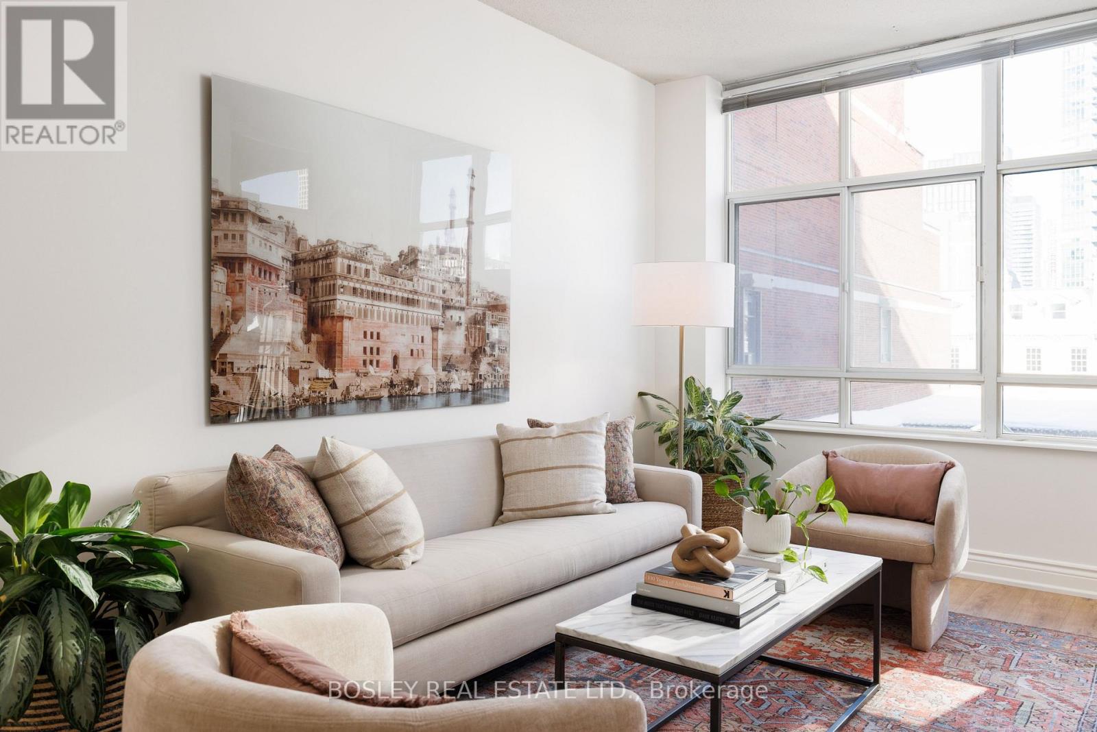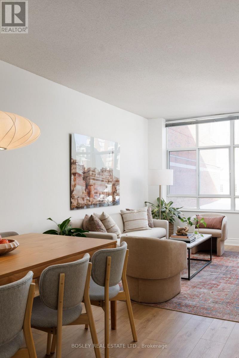 Welcome to this beautifully renovated 1 bedroom plus den suite at The Saint James, a low-rise, established, boutique building steps from the St Lawrence market and St James Park. Offering approximately 800 sq ft with 9' ceilings, this spacious home has been thoughtfully updated throughout. New laminate flooring, an updated kitchen, and renovated bathrooms create a fresh, move-in-ready living experience. Tucked away from the hustle and bustle of St. Lawrence Market, the suite enjoys a quiet exposure and opens onto a generous north-facing balcony, perfect for morning coffee or relaxing at the end of the day. The primary bedroom is exceptionally spacious, featuring a walk-in closet and private 4-piece ensuite. The den is a true separate room, generously sized and ideal as a guest bedroom, home office, or nursery. A convenient powder room off the entry adds everyday functionality and is perfect for guests. The open living and dining area flows seamlessly from the kitchen, creating a comfortable space for both entertaining and daily living. Complete with parking and locker, this well-appointed suite is steps to St. Lawrence Market, shops, restaurants, transit, and the Financial District-offering the perfect blend of space, style, and urban convenience without sacrificing peace and privacy. (id:64974)
