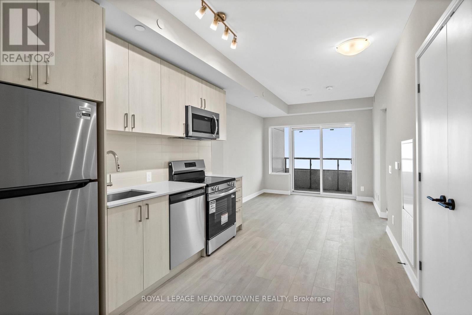 Milton's latest condo offering at Connectt is a delight. Be the first to live in this one-bedroom plus den condo featuring 563 square feet of living space and a 55 square foot balcony. Building features include concierge, plus upcoming game room, theatre, kids' playroom, rooftop outdoor pool, gym, media room, and community BBQ area. Condo walk score is excellent, with grocery and multiple food options across the street. Steps away from bus routes and connection to Go Transit. (id:64974)