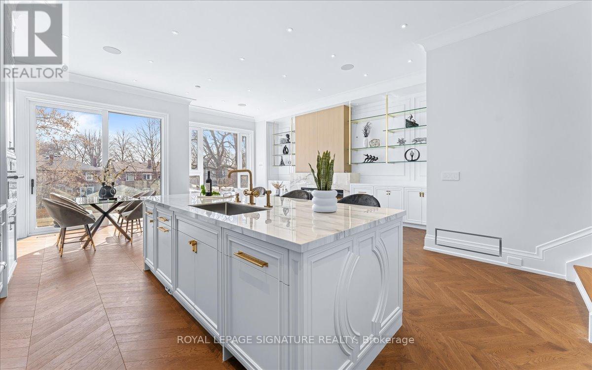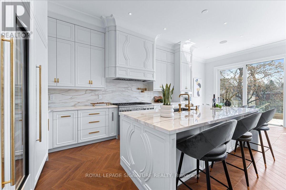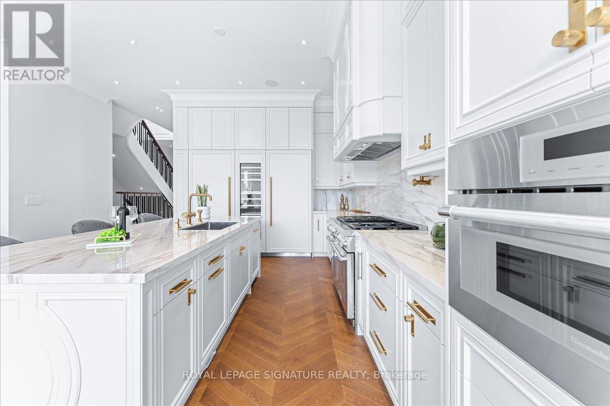 Experience luxury living in this brand-new, two-story home on a 150-foot-deep lot in the prestigious Mount Pleasant East area!Unparalleled luxury finishes throughout. Living/Dining features a gas fireplace w/ burled walnut wood. Office w/ built-inmillwork & glass door, European chevron white oak flooring throughout the main floor. Enjoy an exceptional layout w/ achef-inspired dream kitchen w/ an Italian porcelain countertop(Antolini). Large family room features 11 ft ceiling, Gasfireplace, fully customized built-in wall unit w/ white oak rift cut, completed w/ porcelain and solid brass hardware. ThePrimary bedroom w/ 10 ft ceiling retreat features a luxurious 5-piece heated ensuite and boutique-style his/her walk-in closet.Walk-out basement features heated floor, Wine display w/ over 200 bottles capacity, Bar w/ granite countertop, Fully customfabricated w/ mini fridge, Gas fireplace finished w/ Italian porcelain. Heated floor in the foyer and powder room. E.V charger. (id:64974)