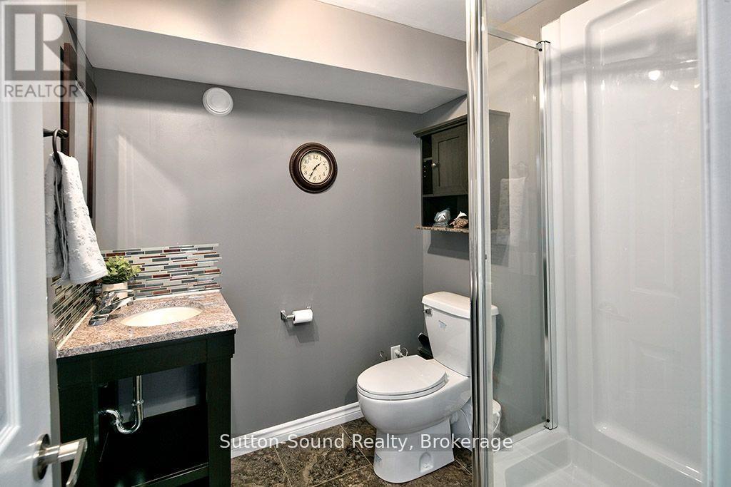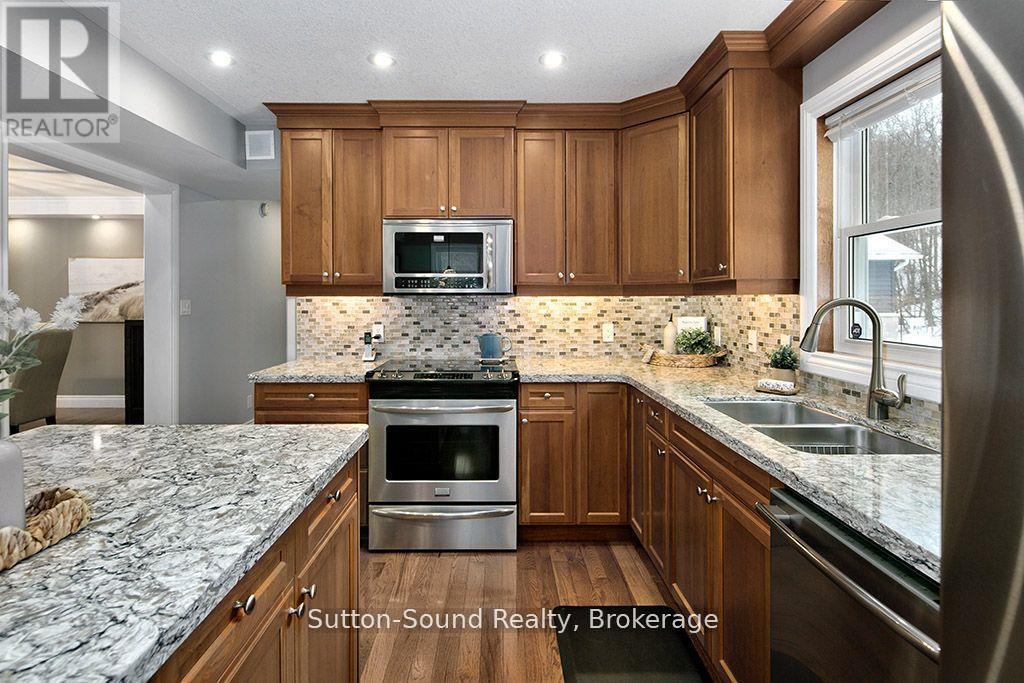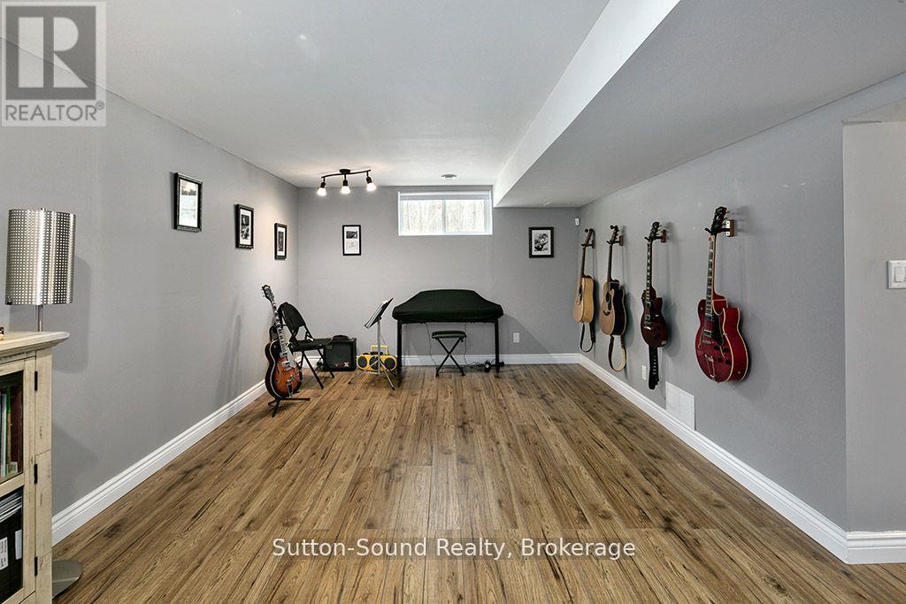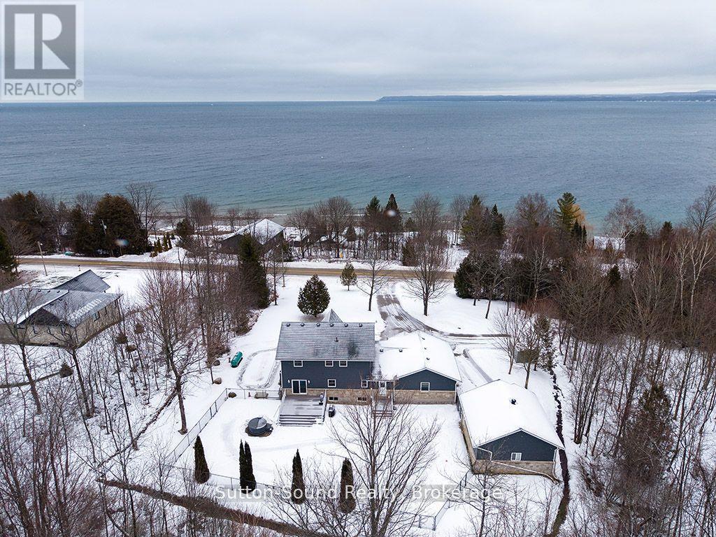 CUSTOM BUILT HOME AND SHOP WITH SEASONAL VIEWS OF GEORGIAN BAY! Located on sought after Grey Rd1, close to waterfront parks, water access, hiking and desirable areas of Georgian Bluffs. This exceptional 4 bed, 4 bath executive home showcases beautiful hardwood floors, an abundance of windows and natural light and many detailed finishes. The main level offers an open concept kitchen/dining/great room with Vandolder cabinetry, quartz countertops, large breezeway entry and laundry room. The sliding doors allow direct access to composite decking, hot tub and beautifully landscaped/private backyard. Upper level offers 3 bedrooms with primary walk-in closet and ensuite and full guest bath. Upper deck is perfect for morning coffee and Georgian Bay sunrises. Lower level has 4th bed/office, 3 pc bath and finished family room. Upper and lower entrances into the house from attached garage. Separate 600 sq ft 2 bay garage/shop with extra tall overhead doors. This home is extra efficient with heat pump and full home standby generator. For the extensive list of updates, ask your realtor and book your showing! (id:64974)