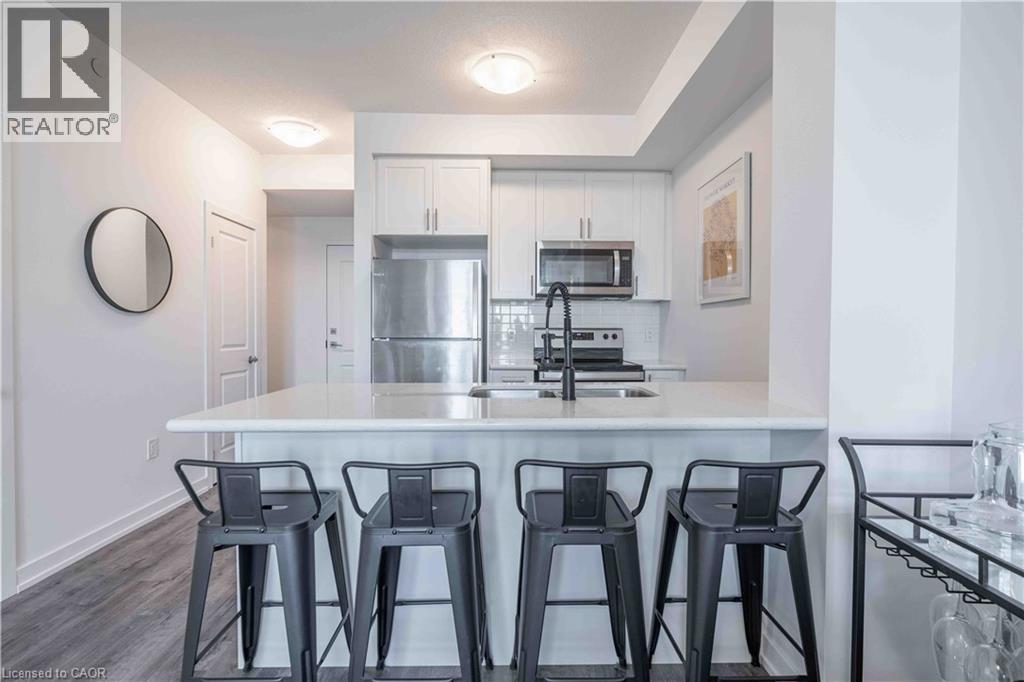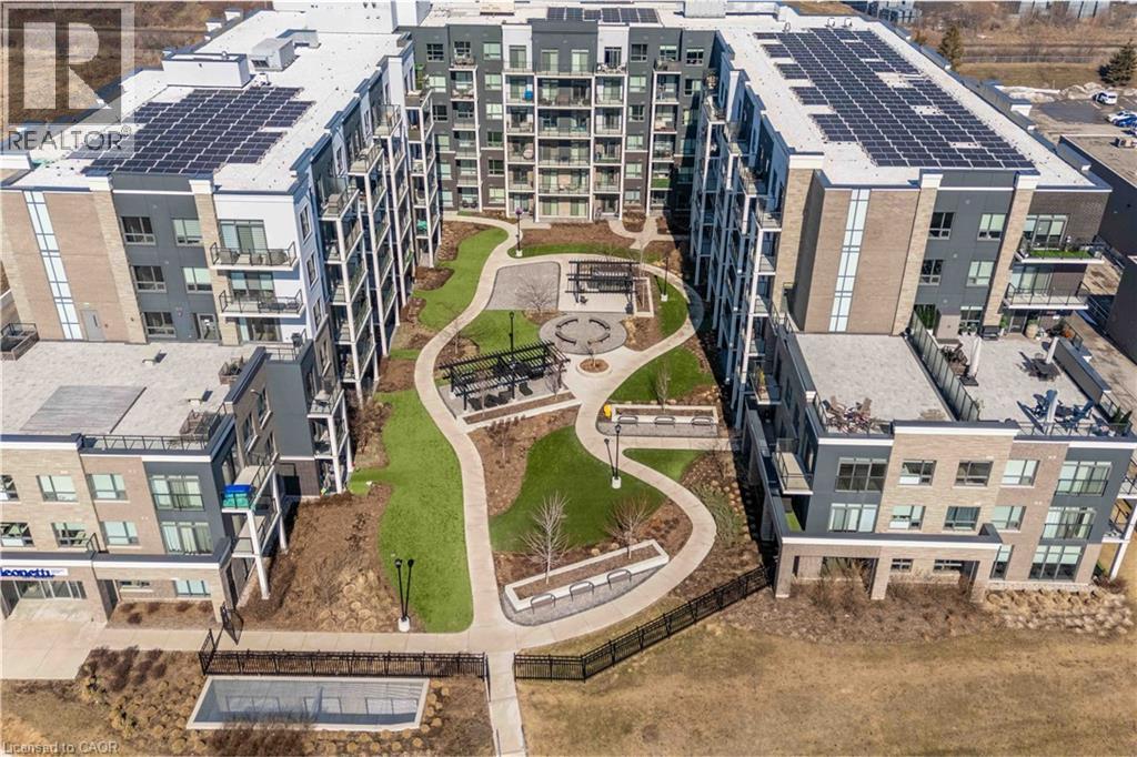 Welcome home to your spacious new condo in the highly desirable Utopia building in beautiful Beamsville. This stunning open-concept 1 bedroom + den corner unit is loaded with upgrades including quartz countertops, stainless steel Whirlpool appliances, a breakfast bar, and luxury vinyl plank flooring throughout. Enjoy your morning coffee on the extended-length balcony with access from both the living room and the bedroom. The building offers fantastic amenities, including a party room, fitness room, rooftop terrace, and bike storage and features a state-of-the-art geothermal heating and cooling system designed to help keep utility costs low. Perfect for first-time buyers, downsizers, or investors, this unit is conveniently located close to the highway, shopping, restaurants, wineries, and the GO Station. Includes one owned locker and one owned underground parking space. (id:64974)
