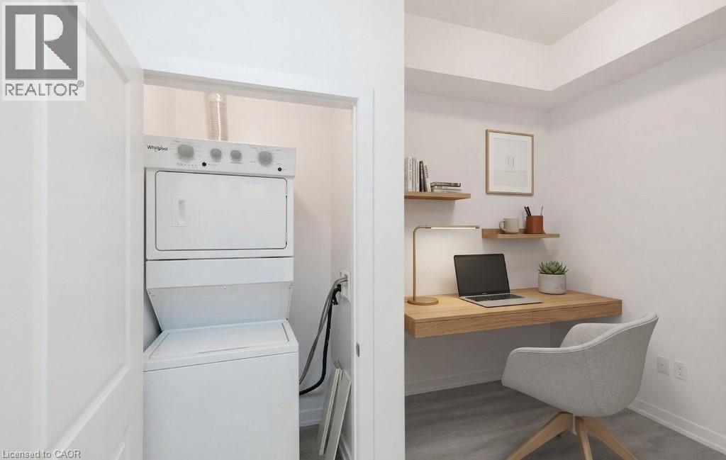 Welcome to hassle free luxury living in Beamsville's premiere Utopia condo! This incredibly rare 1 Bed + Large Den layout stands out from the crowd with 2 FULL bathrooms (no more sharing when guests visit!) Boasting 9 ft ceilings and an open concept design, this unit feels bright and spacious. The generously sized den is the ultimate work from home sanctuary or perhaps a nursery, while the private, south facing balcony offers a peaceful courtyard view to unwind. Upgrades include sleek stainless steel appliances, modern pendant lighting over the island, and convenient in-suite laundry. Say goodbye to basement storage runs; your spacious, dry locker is located just down the hall on the exact same floor! Everyday living is effortless with Amazon packages delivered straight to your door, garbage chutes on every level, and one premium underground parking spot. Enjoy VIP building amenities like a fully functional party room leading to a sunlit terrace with panoramic views, and a ground-level fitness centre. Eco-friendly geothermal heating and cooling are included in your monthly rent! Tucked away with only one direct neighbour for maximum quiet, yet just steps to Sobeys, dining, and immediate QEW access. A truly unique lease opportunity! (id:64974)