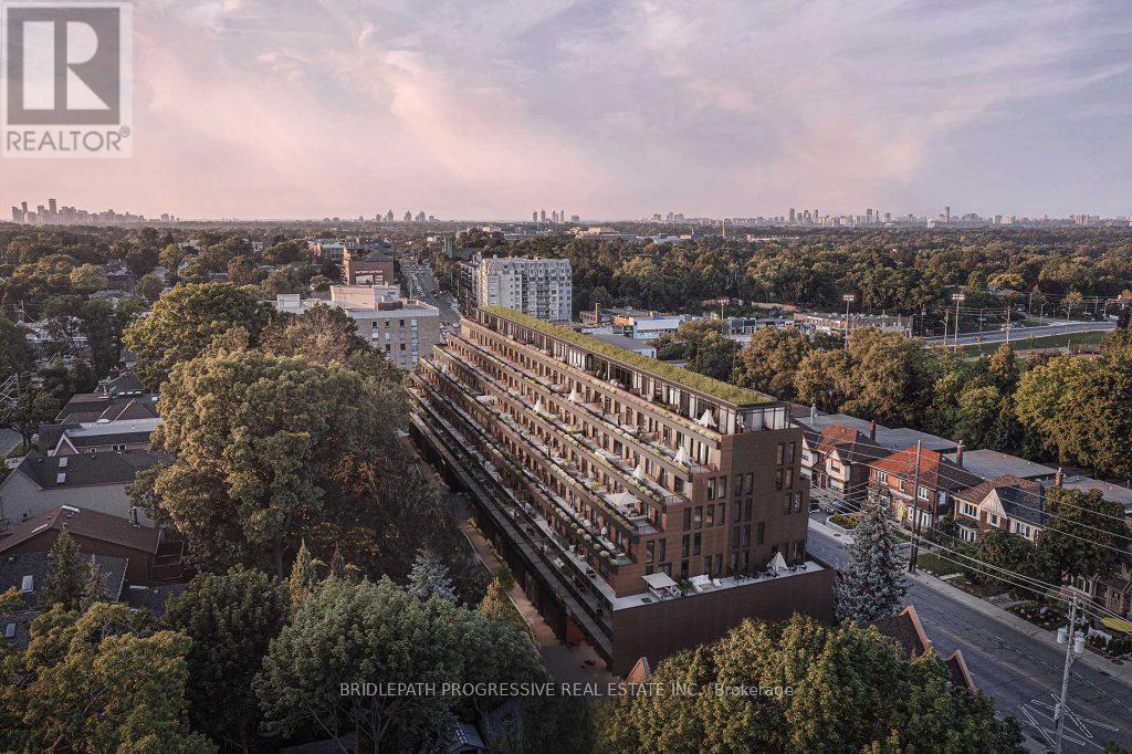 Welcome to Unit 506 at Leaside Common, a brand-new luxury residence in one of Toronto's most desirable neighbourhoods. This intimate 9-storey boutique building by Gairloch Developments showcases striking architecture by BDP Quadrangle and refined interiors by Sixteen Degree Studio.This never-lived-in, southeast-facing two-bedroom plus den, two-bathroom suite offers just under 1,000 square feet of bright, functional living space, complete with a private terrace. The open-concept layout features 9-foot exposed concrete ceilings, premium engineered hardwood flooring, and smooth-painted walls, creating a modern yet timeless feel.The kitchen is both elegant and practical, showcasing an eat-in island, custom Italian cabinetry, engineered quartz countertops and backsplash, and a full suite of high-end stainless steel appliances, including a built-in electric oven, gas cooktop, and panelled refrigerator and dishwasher.The primary bedroom includes a walk-in closet and a spa-inspired ensuite with a frameless glass shower featuring rain head and hand shower. Additional highlights include a full-size Energy Star-certified washer and dryer, smart thermostat, and an Energy Recovery Ventilation system designed to enhance indoor air quality.Residents enjoy an impressive collection of amenities, including a fitness studio, co-working lounge, party room, outdoor terrace, children's playroom, and pet spa, along with 24-hour concierge service, ground-level retail, and smart building access.Located in prime Mount Pleasant East, Leaside Common is steps to the new Leaside LRT Station and minutes to the Don Valley Parkway, with close proximity to Sunnybrook Hospital, boutique shops, cafés, and top-ranked schools such as Leaside High School and Toronto French School-offering the perfect balance of urban convenience and neighbourhood charm. (id:64974)