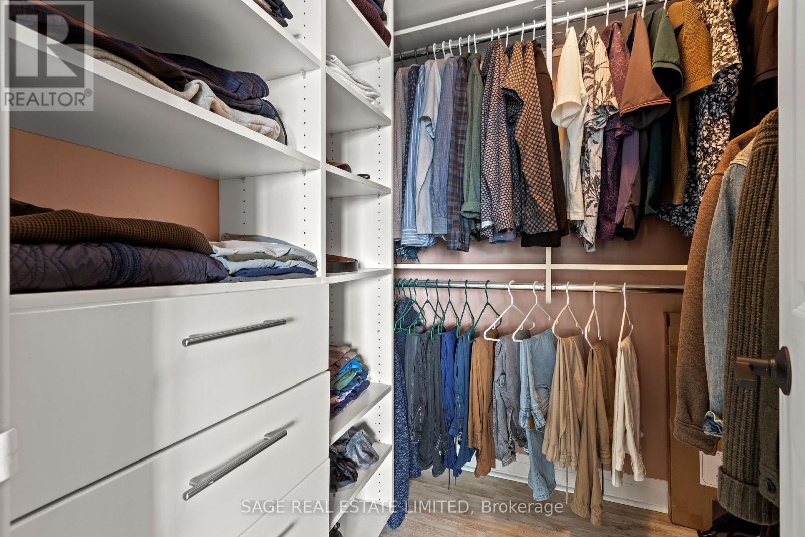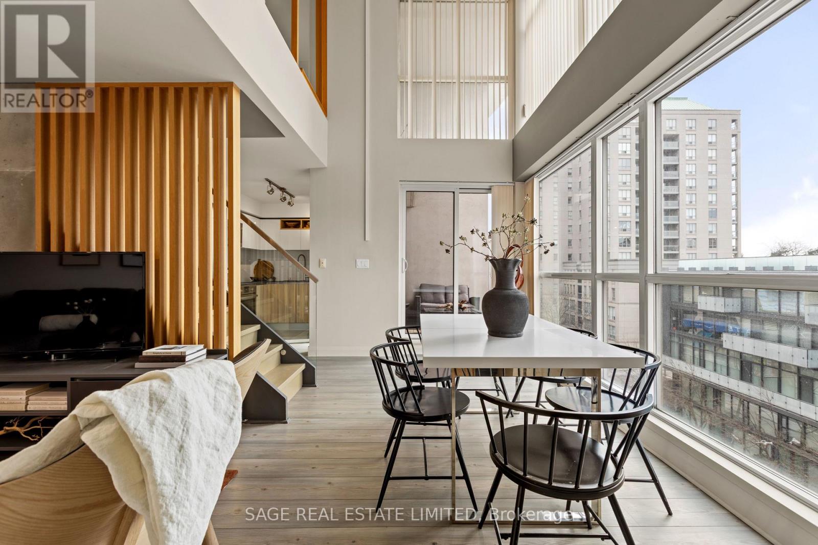 There is a lot to like about this bright and spacious two-bedroom, three-bathroom loft. Spanning two levels, Suite 506 offers over 1,000 square feet of living space and feels even larger thanks to the dramatic 17-foot ceilings in the dining room and expansive floor-to-ceiling, wall-to-wall windows that flood the space with natural light. The updated kitchen features custom Pedini cabinetry, quartz countertops, and premium Bosch appliances. Both the kitchen and dining area provide direct access to a large, covered balcony that is a perfect extension of the living space. The spacious living room is enhanced by custom built-in shelving and a custom integrated entertainment unit, creating both functionality and style. The standout feature is the massive primary bedroom, which easily accommodates a king-sized bed, dresser, and nightstands. It includes a walk-in closet, a 4-piece ensuite with a window, and a walkout to a private balcony. The second bedroom also offers a walk-in closet and its own 4-piece ensuite, ideal for guests or family. Additional upgrades include custom under-stair storage, sleek glass stair railings, and a recently renovated main floor powder room featuring new tile, vanity, and toilet, along with the addition of extra storage space. The unit includes one parking space and one locker. Please note "other" in room details is the balcony. Residents enjoy access to building amenities such as a fitness centre and an outdoor patio with BBQ. 18 Merton Street is a boutique-style building that offers a true sense of community and is perfectly situated in a vibrant neighbourhood where you are just steps from shops, restaurants, grocery stores, pubs, parks, and the TTC Davisville subway station. Outdoor enthusiasts will love having the Beltline Trail right at their doorstep-ideal for walking, running, or cycling. (id:64974)