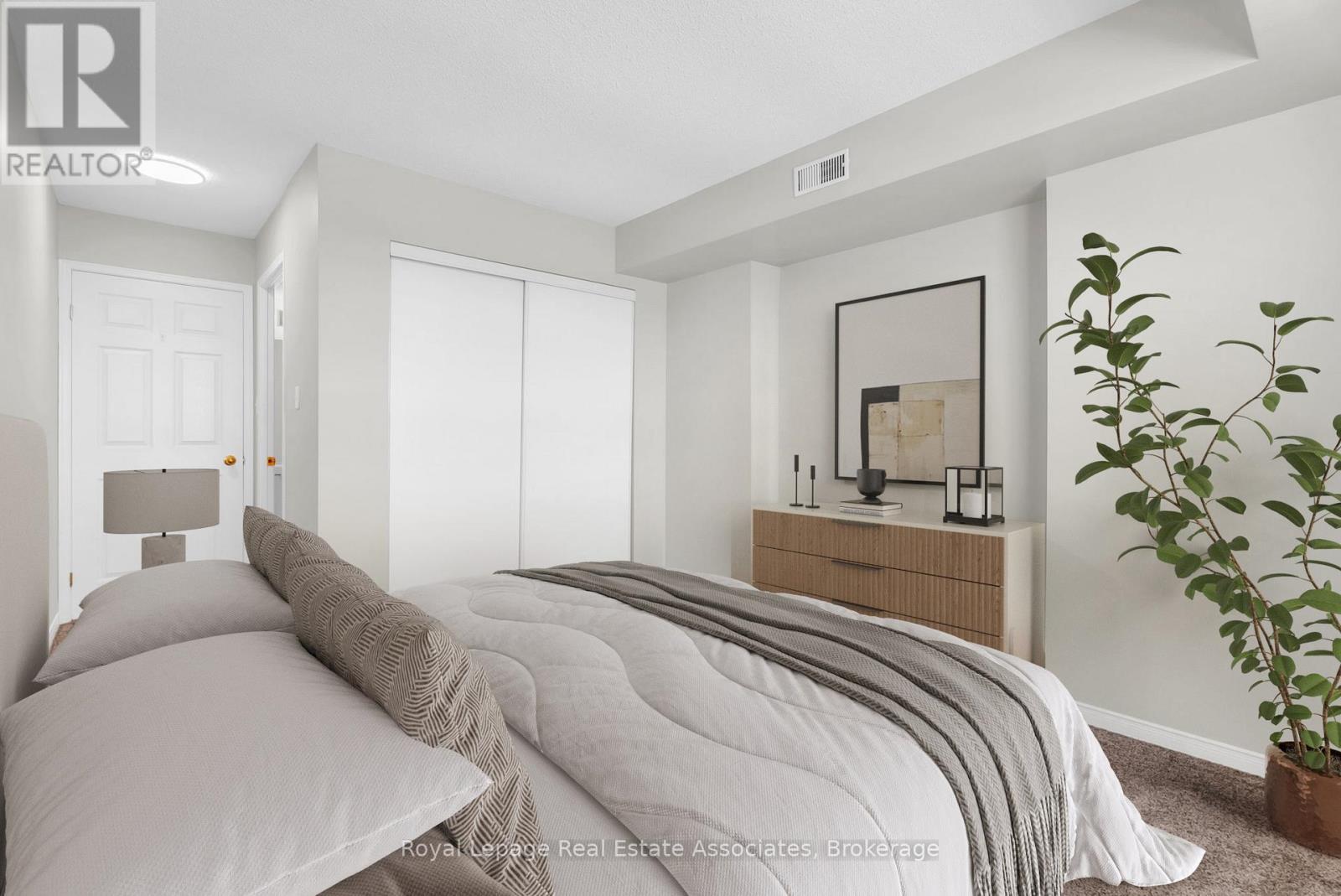Feel right at home in this bright and inviting 2+1 bedroom, 2 bathroom corner suite in the heart of Streetsville. Offering over 1,000 sq. ft. of thoughtfully designed living space, this move-in-ready condo is ready for your final touches. The kitchen is both functional and welcoming, featuring stainless steel appliances, a centre island, and a layout that stays connected to the main living area. Updated laminate flooring (2024) enhances the open-concept living and dining space, complete with a cozy reading nook and unobstructed views, while a private balcony provides the perfect place to enjoy your morning coffee or unwind at the end of the day. Both bedrooms with updated carpeting (2024) are well-sized and thoughtfully positioned, including a primary bedroom with a double closet and a private 4-piece ensuite, and a second bedroom with its own 4-piece semi-ensuite and closet, ideal for guests or family. A separate den located between the bedrooms offers a versatile space for a home office, hobby area, or quiet retreat. Freshly painted and well-maintained, the unit also includes an ensuite laundry and ample storage for added convenience. Two tandem parking spots underground. Located just steps from Streetsville's boutiques, cafés, restaurants, parks, community events, and the Credit River trails, this home places the best of the neighbourhood right outside your door, with easy access to the Streetsville GO Station, transit, and major highways for effortless commuting. A wonderful opportunity to enjoy spacious condo living in one of Mississauga's most loved communities. (id:64974)