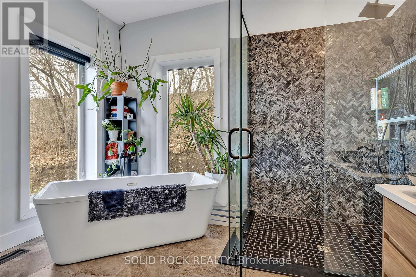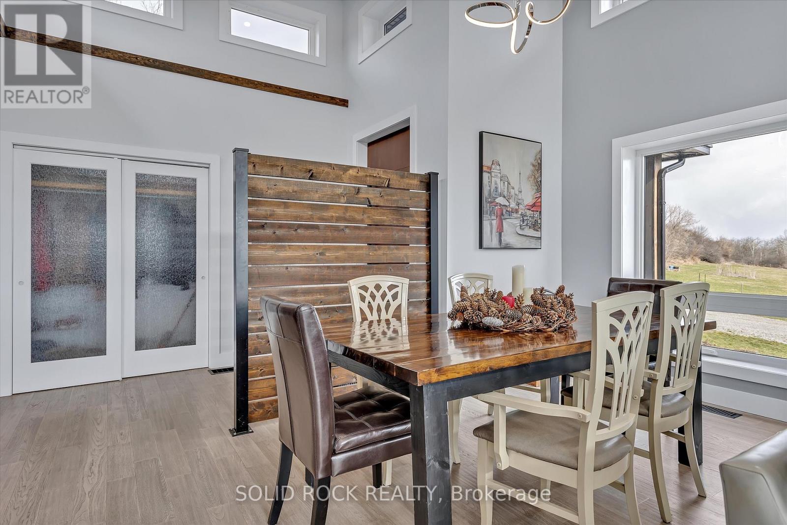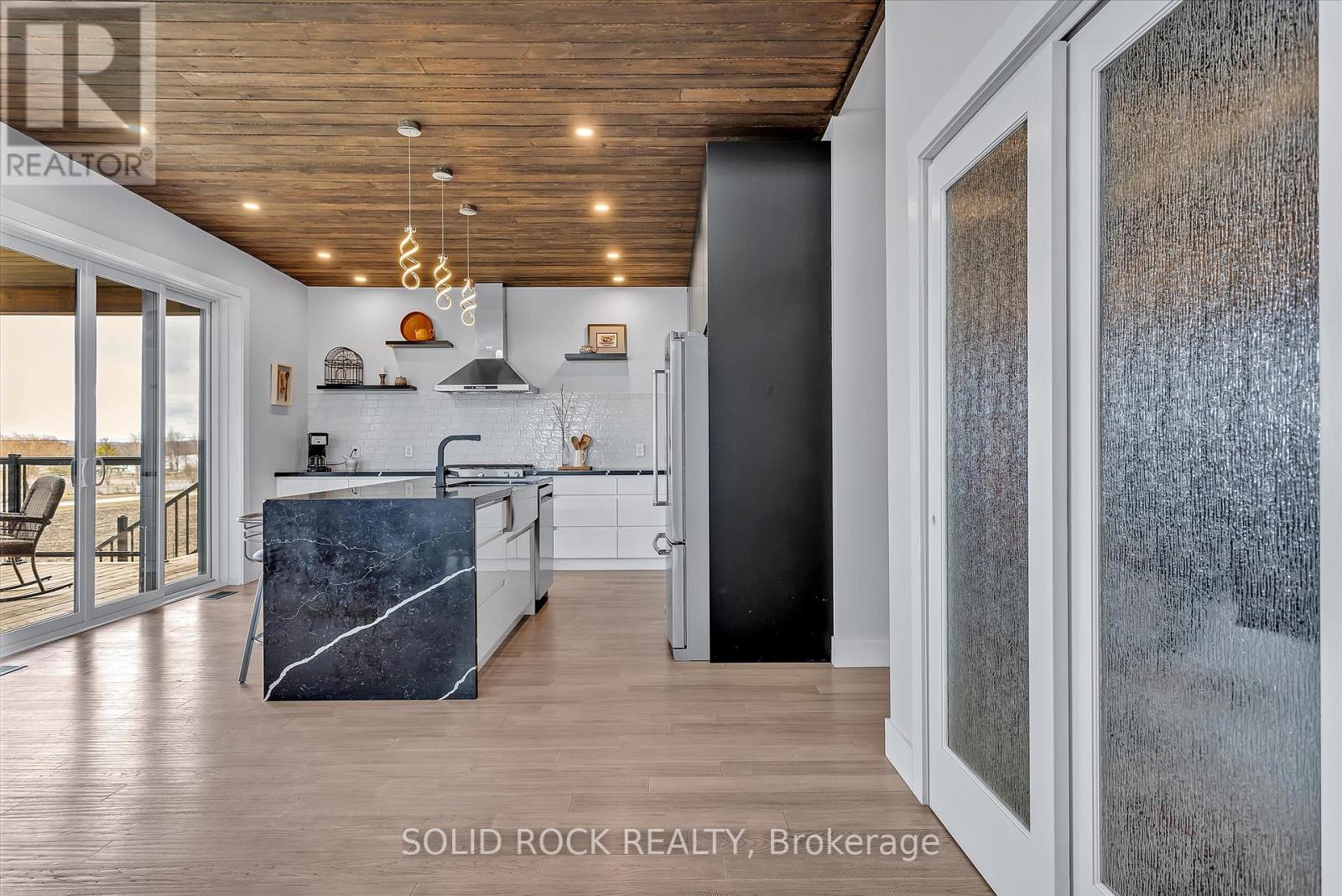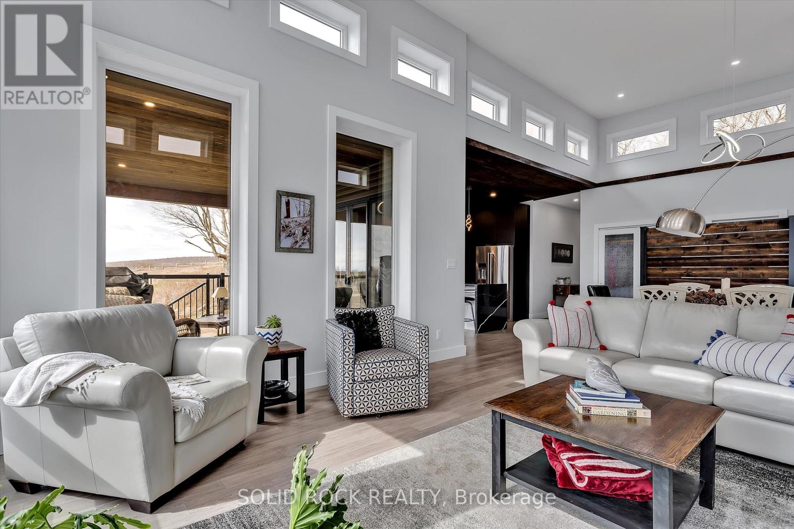 Country Living and Luxury Space yet close to a great Community and Amenities not even 10 minutes away! What more could you ask for. This impeccably kept home can meet the needs of a buyer who wants to have a lifestyle that is both private but also can provide the comfort of being close to retail stores, restaurants, services, hospital, clinics, events, etc. Step through the impressive 8-ft solid wood door into a bright and airy open-concept living space, seamlessly connecting the living room, dining area, and chef-inspired kitchen. From here, walk out to the 14' x 17' deck and take in serene views, the perfect spot for morning coffee or evening entertaining. Gourmet Kitchen is Designed for gathering & entertaining. Sleek black quartz countertops with a striking 9-ft center island. Custom-built cabinetry with hidden spice racks and organized storage. Floor-to-ceiling windows framing breathtaking views of the property & river. Thoughtful Design & Comfortable Living, 2,800 sq. ft. of finished living space (main + bsmnt). Two ethanol fireplaces add warmth and ambiance without emissions on both levels, 9-inch deep window sills, perfect for decor or indoor plants. Lower Level Retreat. Fully finished spacious bsmnt with large windows for natural light, Ideal for a rec room, home gym, or guest space. Ideal for Entertaining or Cozy Nights. Built in 2021 with an energy-efficient design, High-efficiency electric heat pump with propane backup and membrane roof. 8' x 12' greenhouse and 1,200 sq. ft. vegetable garden perfect for homegrown harvests. Oversized three-car garage with direct access to a functional mudroom/laundry combo features sink, countertops & ample cabinetry for everyday convenience. This move-in-ready gem is designed for those who value quality, efficiency, and a connection to nature. Whether entertaining guests, growing your own produce, or simply relaxing with breathtaking views, this property delivers the ultimate blend of comfort, sustainability, and beauty. (id:64974)