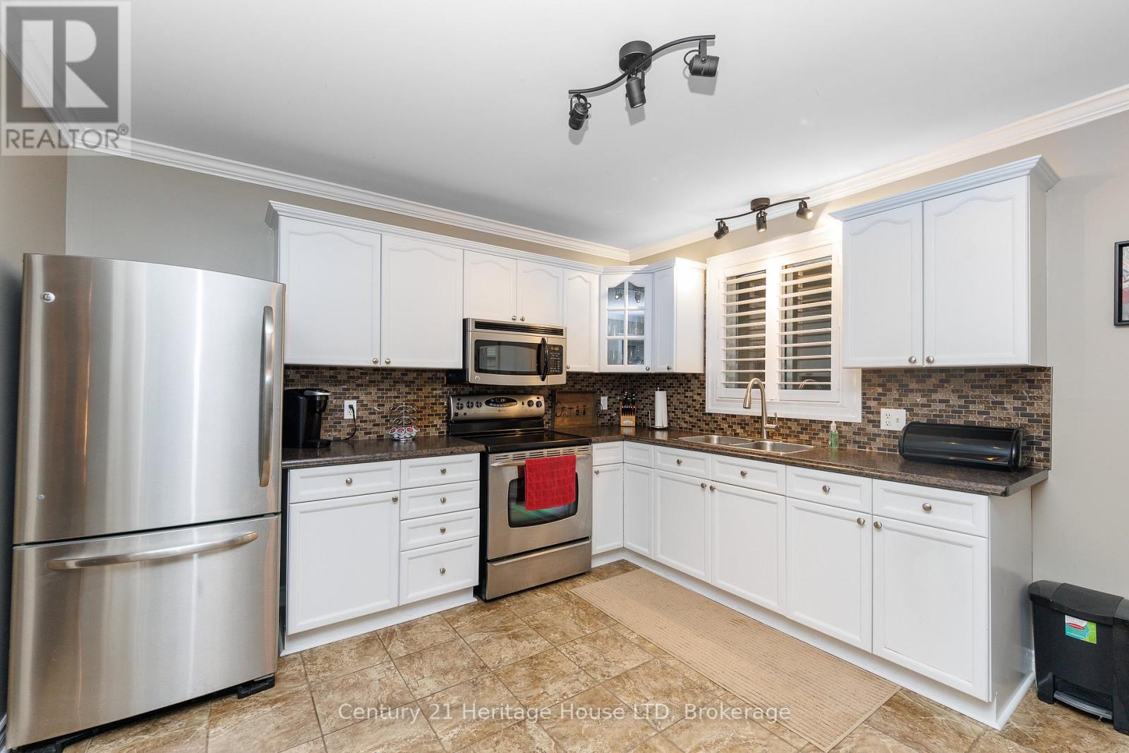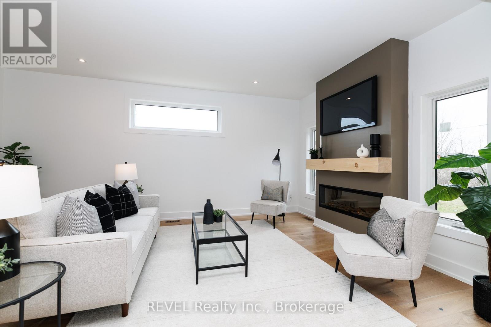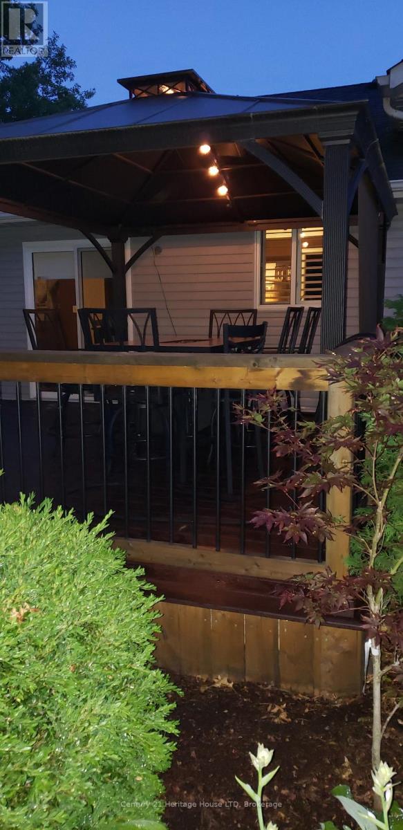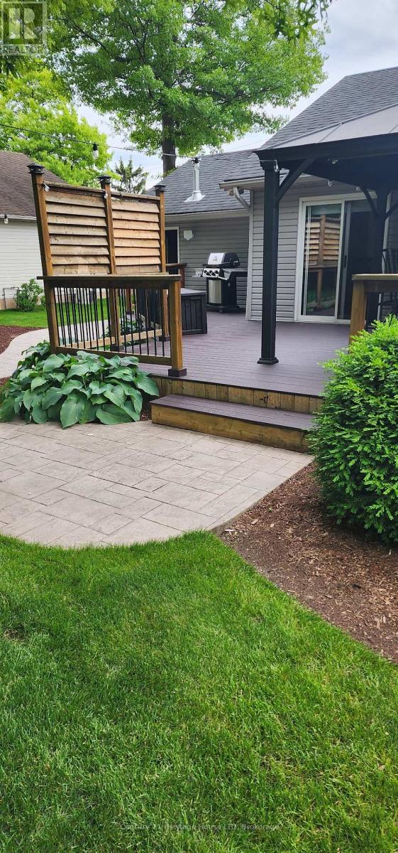 Not quite Urban, not quite Rural! Come take a look at this charming side split sitting on a generous lot with no rear neighbors. First time on the market, this home offers the perfect blend of comfort, convenience and location. Close to shopping, gym, QEW, the Peace Bridge and schools. Enter through the heated garage to an eat in kitchen with sliding doors to a 18ft x 20ft composite deck with a hard top gazebo. Enjoy morning coffee or evening cocktails and watch the deer in a private setting. French doors lead from the kitchen to the formal living room. On the second level you find 3 bedrooms with the primary bedroom having ensuite privileges to a four piece bathroom. On the lower level is a freshly painted expansive family room with bar and gas fireplace. Surround sound system included. Plenty of room to entertain at the bar equipped with a kegerator. The lower level features a 3pc bathroom, large laundry/utility room and extra storge. Updates include roof (10 years), furnace 2 years, A/C 8 years. All of this on a professionally landscaped lot with inground watering system and hard wired exterior lighting. The street is scheduled (2025) for complete make over with sidewalks (on the opposite side) and curbs. (id:64974)