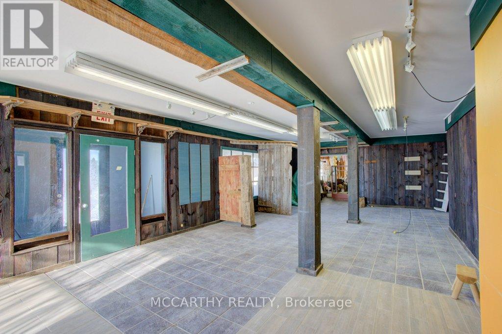 Highway Commercial, 2.98 Acres, 3600 sq ft total Lg Store showroom, Offices 2 washrooms w 3 bedroom, one bathroom, 2nd floor Apartment, Shed, 1 car garage lg yard Great exposure on Highway 89/10 coming into Shelburne At Primrose, close to Country Cabin Restaurant, Highland Motel, Garden Centre, Champ Burger, Super Burger, Subway & Petro Canada Plenty of parking & wrap around driveway to the back of the building. Commercial space is 2500 sq ft Covered patio Front entrance comes into the large showroom, with large display windows for natural light. 2nd large showroom both with Warm wood walls. Convenient second Side entrance into the office space with x 2 doors, one covered, has 3 office spaces, plus a lg Reception/office the Hallway which leads into the store showrooms. Many options for rental, can be divided up into smaller units or all one main floor user Main floor has several doors into the units and could add more doors if needed. Large back yard that has some trees and space to have outside events, storage etc. One residential 3 bed one bath living quarters/Apartment above. Live and work opportunity. Investment opportunity! Large yard space is open for other opportunity to build, expand or lease out. Second floor was built with Pana-bode style Log construction, out side has Stucco and wood siding, Metal roof, front store Covered porch, Upper Back Deck and front covered deck. Upper unit has Cathedral Wood ceiling with wood beams. Interior Pretty wood log walls. Cozy County 1100 sqft Living quarters on the second floor entrance from the back with stairs to a good sized deck. Cathedral ceiling living room with large windows and a gas fireplace. Three good sized bedrooms with large windows, one three piece bath with walk-in glass shower. Self contained laundry room, separate hot water tanks on both levels. Separate Hydro meters for each floor. Air-conditioning on the main level. Forced air gas heat on main level Floor plans are in the photos and attached. (id:64974)