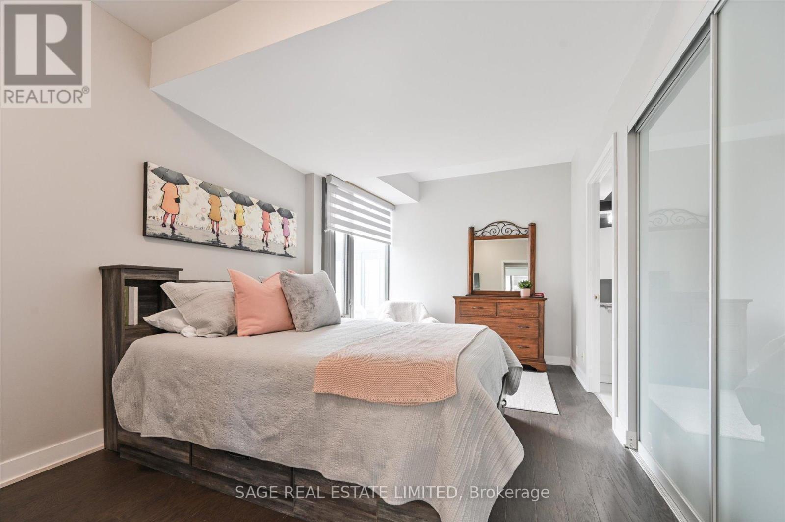 Say hello to the MYC Condos at Yonge & Davisville...a seamless blend of modern design, everyday convenience, and the midtown Toronto lifestyle you've been dreaming of.This 926 sq. ft. two-bedroom, two-bath suite is thoughtfully designed with a bright, open-concept layout and floor-to-ceiling windows that fill the living space with natural light.The kitchen is the true star, featuring sleek cabinetry, quartz countertops, stainless steel appliances, and a custom pantry/coffee bar that makes mornings just a little better. The spacious breakfast bar seats four - perfect for casual meals, espresso catch-ups, or entertaining friends.The primary bedroom offers a generous double closet, spa-inspired ensuite, and peaceful courtyard views through another wall of glass. The second bedroom is equally versatile - ideal as a guest room, office, yoga nook, or den...with a walkout to the 47 sq. ft. balcony for fresh-air breaks, morning coffee, or evening unwinds. A full double closet adds extra storage.Living at MYC comes with standout amenities including a fully equipped fitness centre, rooftop terrace with panoramic city views, stylish party room, guest suites, and 24-hour concierge service.And with a Walk Score of 93, daily life flows effortlessly. The Davisville subway, neighbourhood cafés, shops, restaurants, and the Beltline Trail are all just steps away. Your car may start collecting dust.Recent upgrades include zebra blinds (2022), refrigerator (2023), custom pantry/coffee bar (2024), updated second bathroom vanity and rain shower head (2024), Ecobee WiFi thermostat, new dining room chandelier and foyer light (2025), and fresh paint accents in the living room and second bedroom (2025).Complete with parking and a locker, this is a bright, well-appointed condo in one of midtown Toronto's most vibrant and walkable neighbourhoods (id:64974)