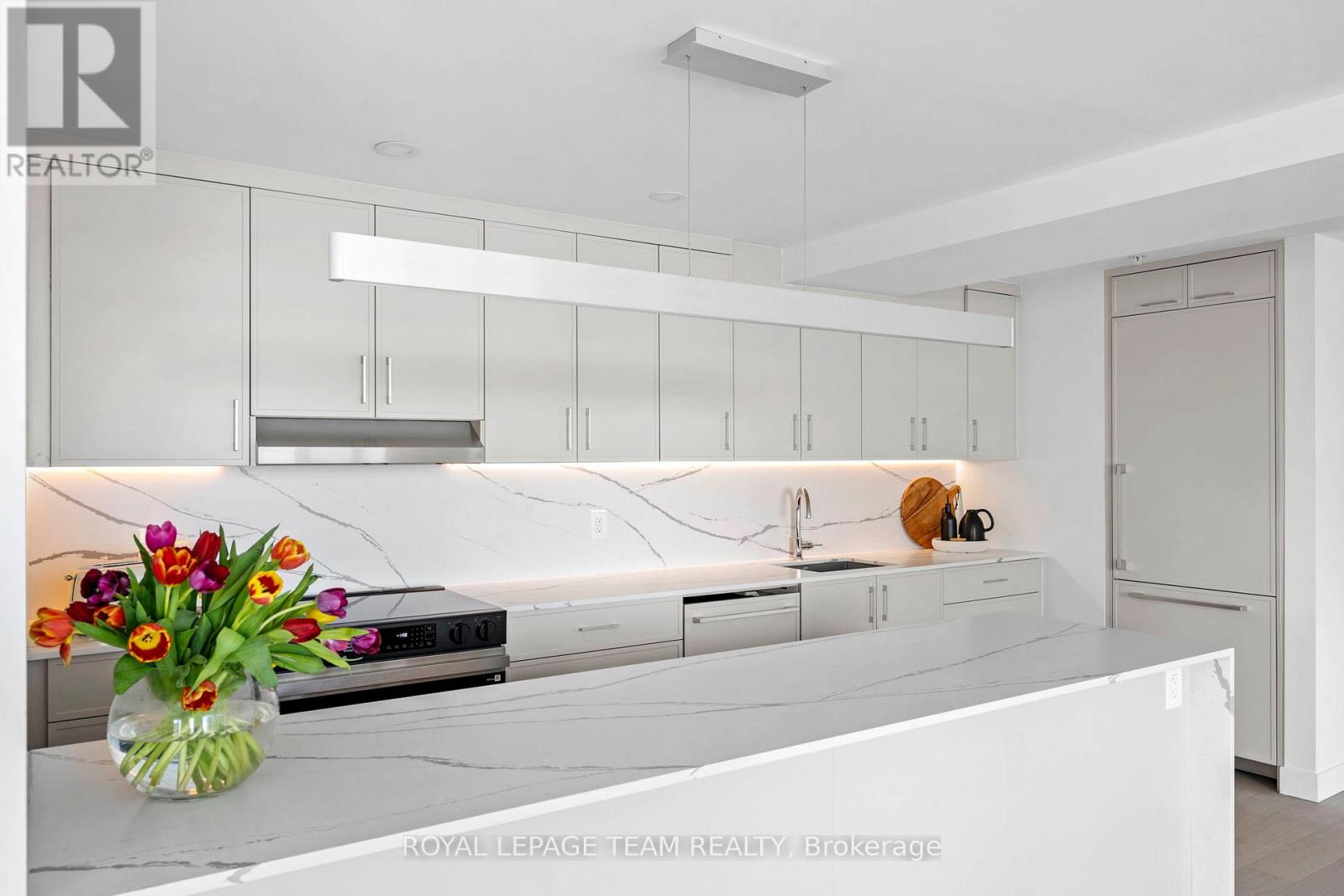 Available May 1, 2026, this brand new boutique rental residence offers a quiet, intimate living environment with a limited number of suites, designed for residents who value quality, comfort, and thoughtful design.This well-appointed two-bedroom, three-bathroom suite offers approximately 1,579 square feet of interior living space, complemented by a private terrace of approximately 472 square feet, creating a seamless extension of the home for outdoor living. The layout is both spacious and highly functional, with a defined entry that opens into a bright, open-concept living area.Large windows fill the space with natural light while showcasing beautiful Ottawa River views, enhancing the overall living experience. The main living and dining areas flow effortlessly to the terrace, offering an ideal setting for outdoor dining, relaxing, or entertaining in a private, elevated setting.The kitchen features stone countertops, contemporary cabinetry, and a clean, modern aesthetic that integrates naturally with the surrounding living space.Both bedrooms are generously sized and each feature their own private full ensuite bathroom, offering comfort and privacy. A convenient powder room is thoughtfully positioned for guests. In-suite laundry further enhances everyday functionality.Parking is available for an additional $250/month and storage is available for $50/month.Residents of The Westmount enjoy access to underground parking, secure bike storage, private lockers, a controlled access building, a resident lounge, and a dog wash station, all contributing to a refined boutique living experience.With expansive interior space, river views, a rare three-bathroom layout, and a well-proportioned private terrace, this residence offers a distinctive and elevated place to call home. (id:64974)