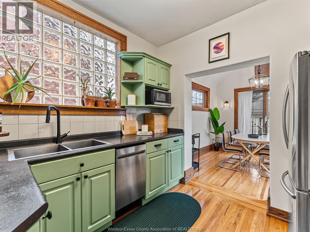 Olde Walkerville, where timeless character meets walkable urban living. Just steps from some of Windsor’s best shops, restaurants, beautiful parks and riverfront trails, this home offers the perfect blend of charm, space, and location. Inside, the main floor welcomes you with a stunning open foyer, an extended living room with a natural fireplace, an updated kitchen and dining area addition with access to the backyard. The second level offers 3 bedrooms and a spacious bathroom featuring a reglazed clawfoot tub with shower, blending old-world style with everyday function. The unfinished third-floor loft offers excellent potential to be renovated into additional living space - great set up for a home office, primary suite or huge play room! Over the past several years, this home has seen extensive updates while preserving its historic appeal, including water and sewer line replacement, gutters, downspouts, soffit, fascia, restored and steel-capped exterior chimney, refinished main floor hardwood, full list of updates available upon request. Complete with a detached garage, this is a rare chance to own a character-filled home in one of Windsor’s most iconic neighbourhoods. (id:64974)