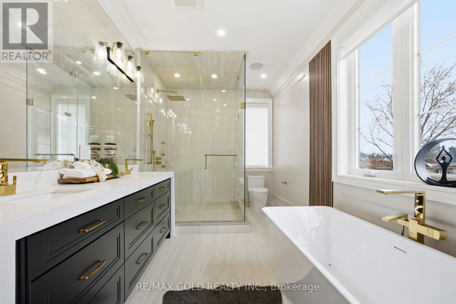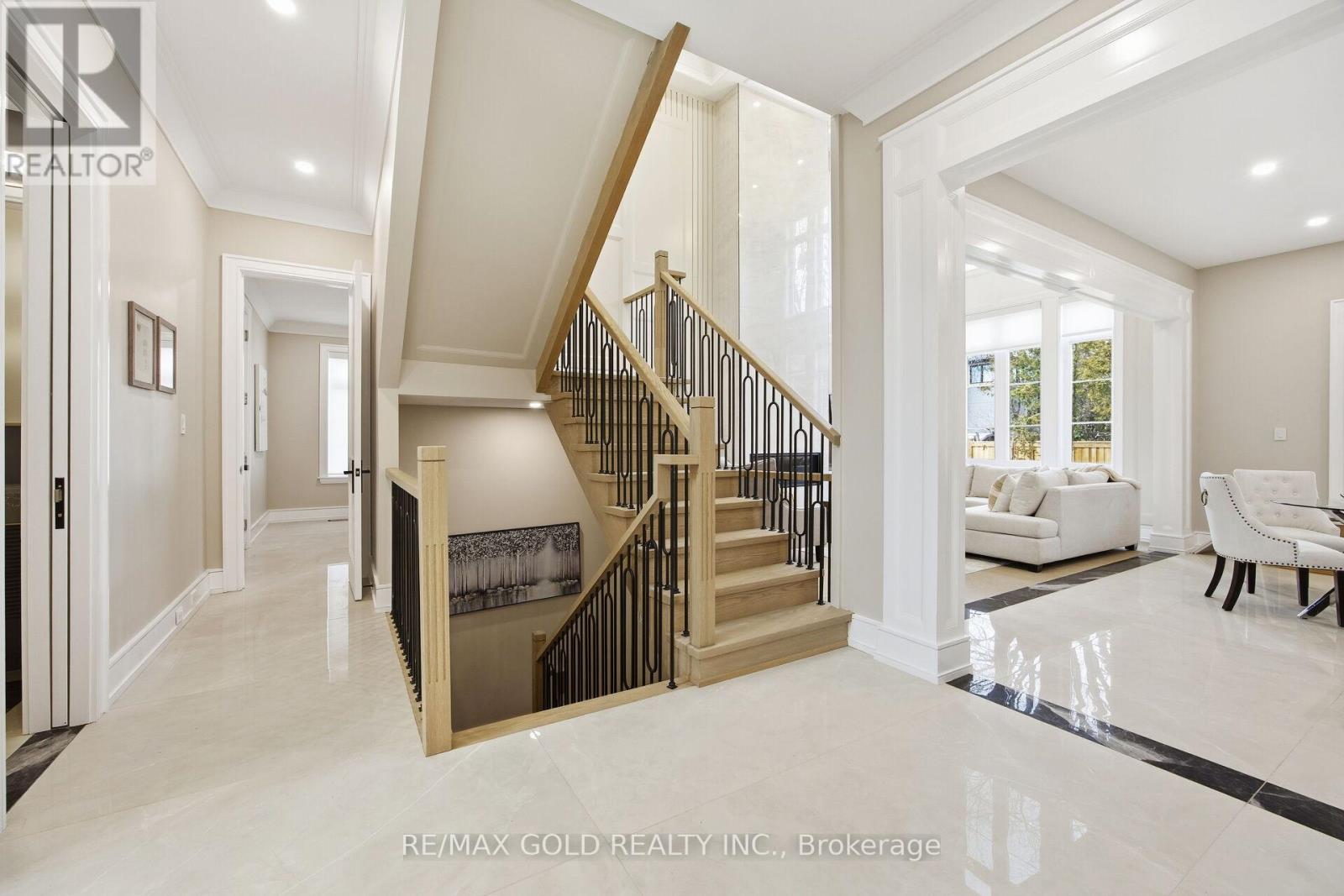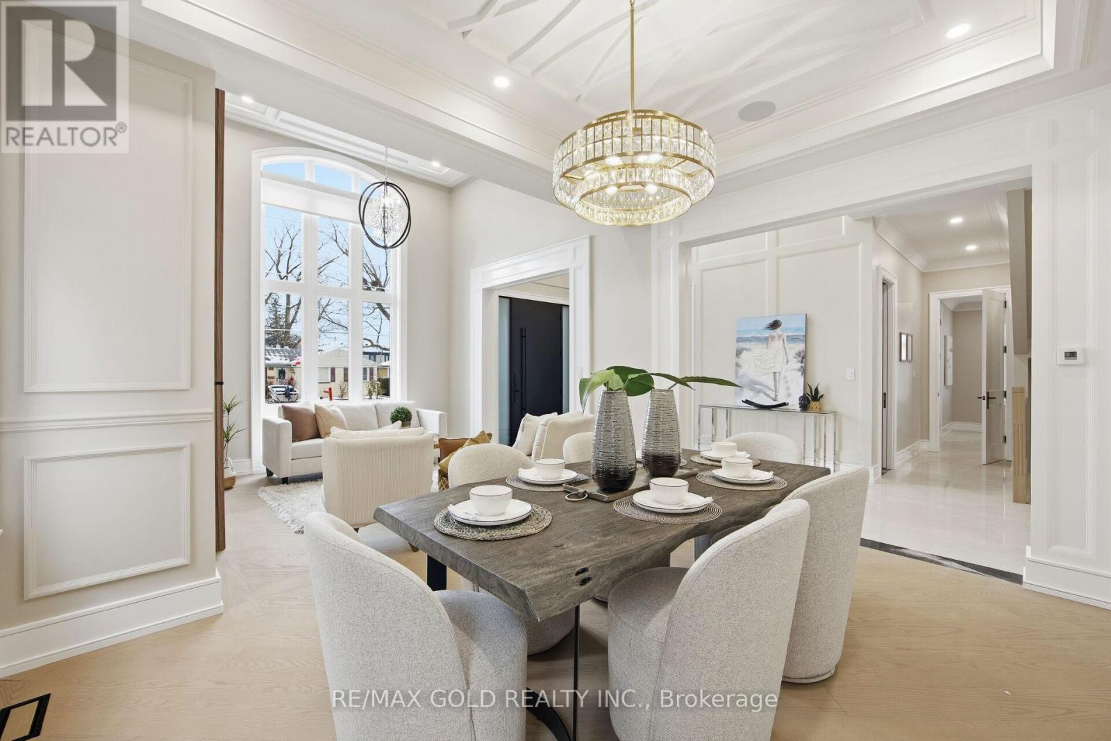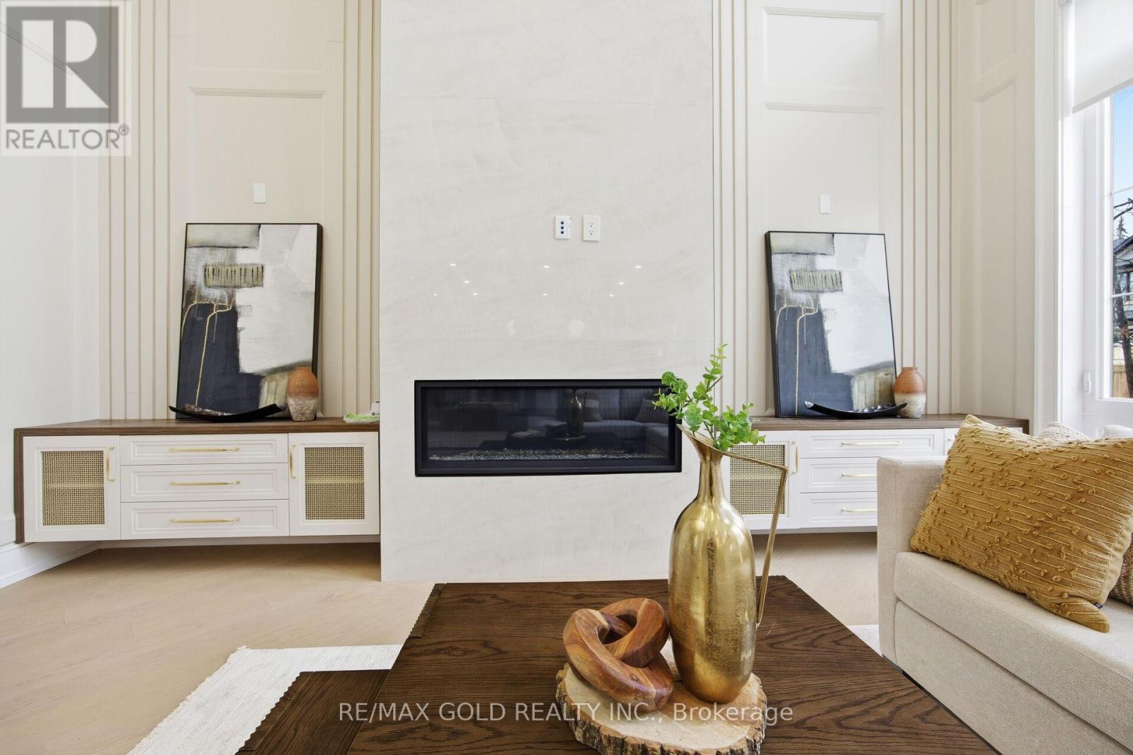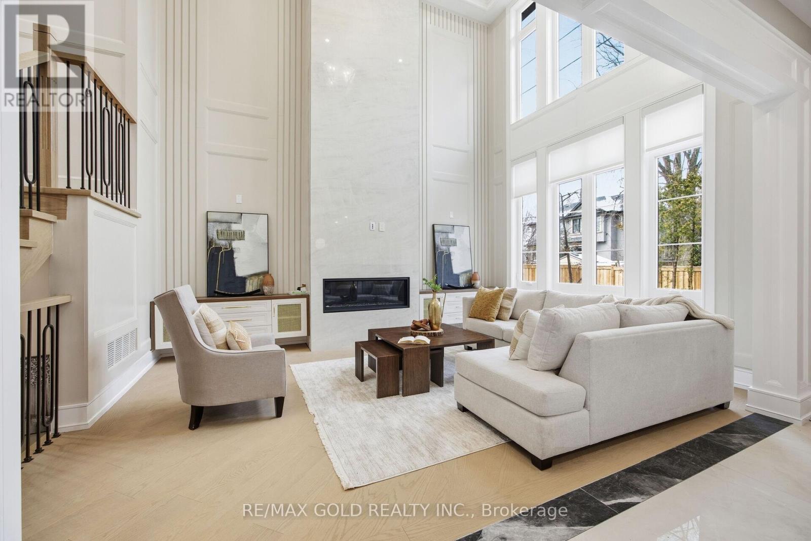 Welcome to an exceptional custom-built luxury residence, where inspired architecture, thoughtful design, and superior craftsmanship come together to create a home that is both elegant and functional. The grand foyer sets the tone, offering an impressive welcome into this truly distinguished home. Light & architectural impact, the interior features a dramatic skylight that fills the home with natural light. The show-stopping 20' family room is highlighted by a stunning floor-to-ceiling porcelain fireplace, sophisticated yet inviting atmosphere. The formal living room features 14' ceilings and expansive front-facing windows. The open-concept main level is enhanced by 10' ceilings, modern pot lighting, and floor-to-ceiling windows, allowing sunlight to pour into every corner. Elegant wainscoting and custom wall panelling throughout the foyer, living room, family room, and staircase showcase the exceptional detail and craftsmanship found throughout the home. At the heart is a chef-inspired kitchen, designed for both everyday living. It features panel-ready Miele appliances, including refrigerators & other appliances, offering a seamless, built-in aesthetic. This well-planned kitchen provides an outstanding layout, premium finishes, and a functional flow that opens to the backyard through sliding doors. Step outside to a covered rear patio, accessed from the kitchen, creating the perfect space for outdoor enjoyment. The fenced backyard ensures privacy, while the beautifully designed interlocked driveway and wrap-around hardscaping enhance curb appeal and durability. Car enthusiasts and active families will appreciate the extra-wide garage, designed to comfortably accommodate larger vehicles. A secondary rear garage door allows convenient access to the backyard-ideal for motorcycles or pets. The fully finished basement continues the luxurious living experience, with large window wells for enhanced natural light, a stylish wet bar & full bath. Extra-wide garage Doors. (id:64974)