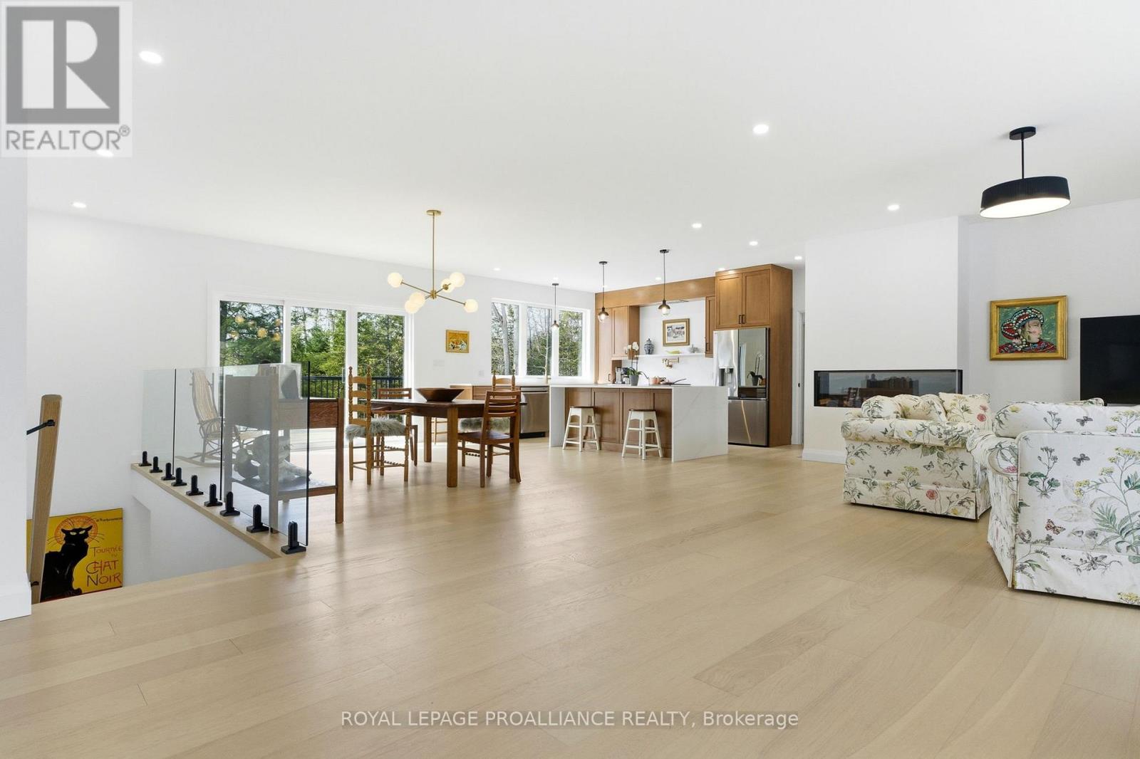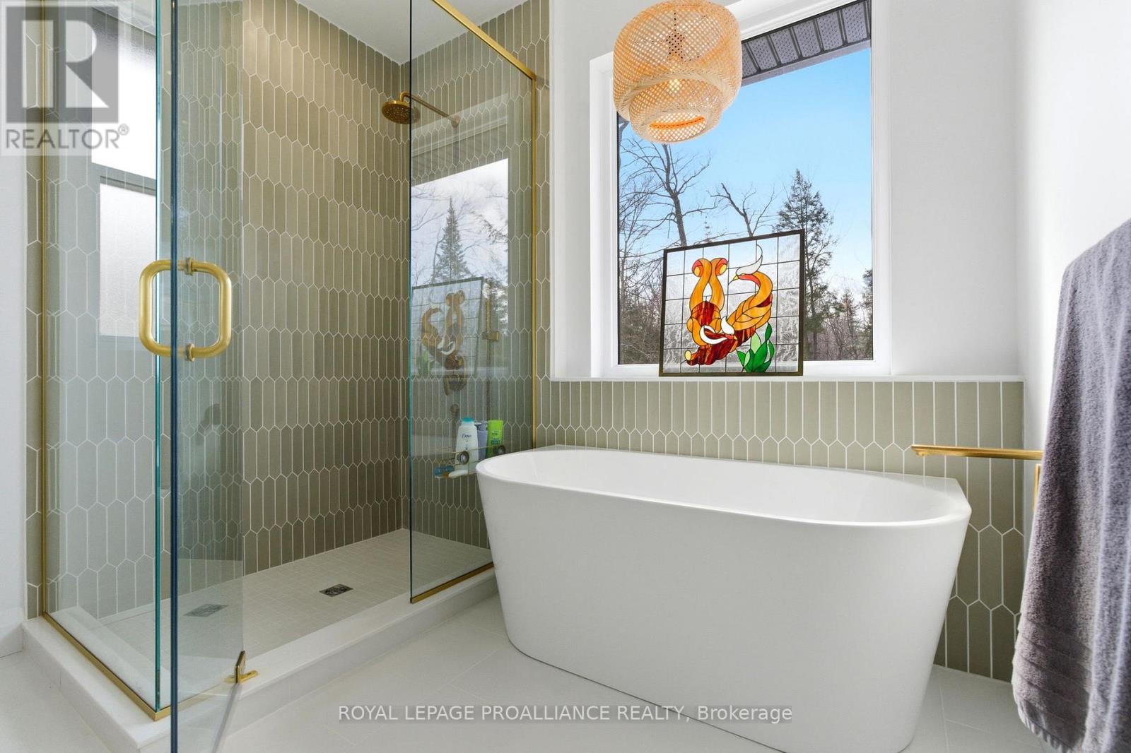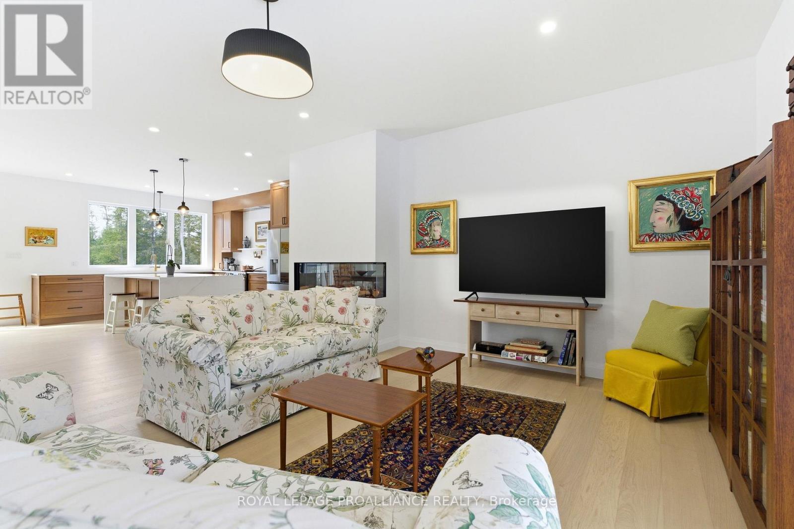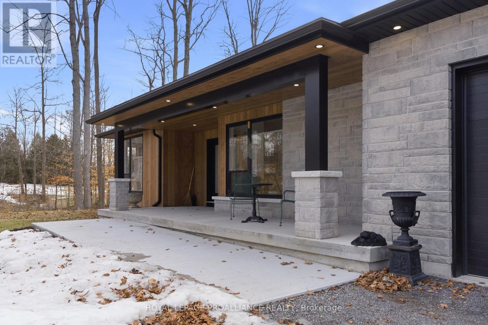 Welcome to 5070 County Rd 25 in Warkworth, a custom-built bungalow set on a peaceful 2-acre treed lot, where modern design meets the quiet beauty of country living. Built in 2023, this thoughtfully designed home offers a bright, open concept layout with expansive windows that draw in natural light and frame views of the surrounding woods. With 2+2 bedrooms and 3 full bathrooms, the home offers a functional layout suited for both everyday living and hosting. The kitchen is both stylish and practical, featuring clean modern finishes and a pot filler, while the adjoining dining area walks out to a spacious deck, perfect for morning coffee or evening gatherings overlooking the trees. The living room is anchored by a striking fireplace, creating a warm and inviting focal point. The main floor primary suite is a private retreat with a walk-in closet and a well-appointed ensuite complete with double sinks, a soaker tub, and a separate shower. A welcoming foyer, main floor laundry, and direct access from the attached garage into a mudroom add to the home's everyday convenience. The fully finished lower level expands your living space with two additional bedrooms, a full bathroom, and a large rec room with walkout access to the yard, ideal for guests, family, or flexible living arrangements. A covered front porch offers a quiet place to unwind. Exterior access to the garage adds additional functionality. Surrounded by nature yet just 30 minutes to the 401, this property offers the perfect balance of rural tranquility and accessibility. (id:64974)
