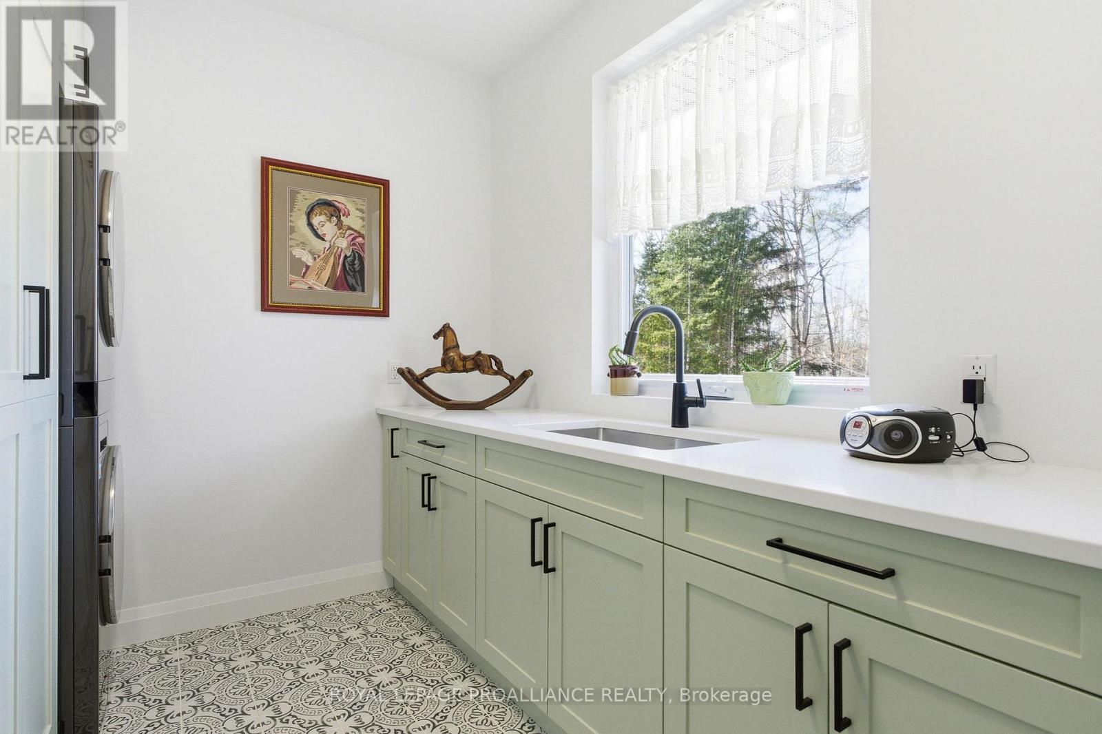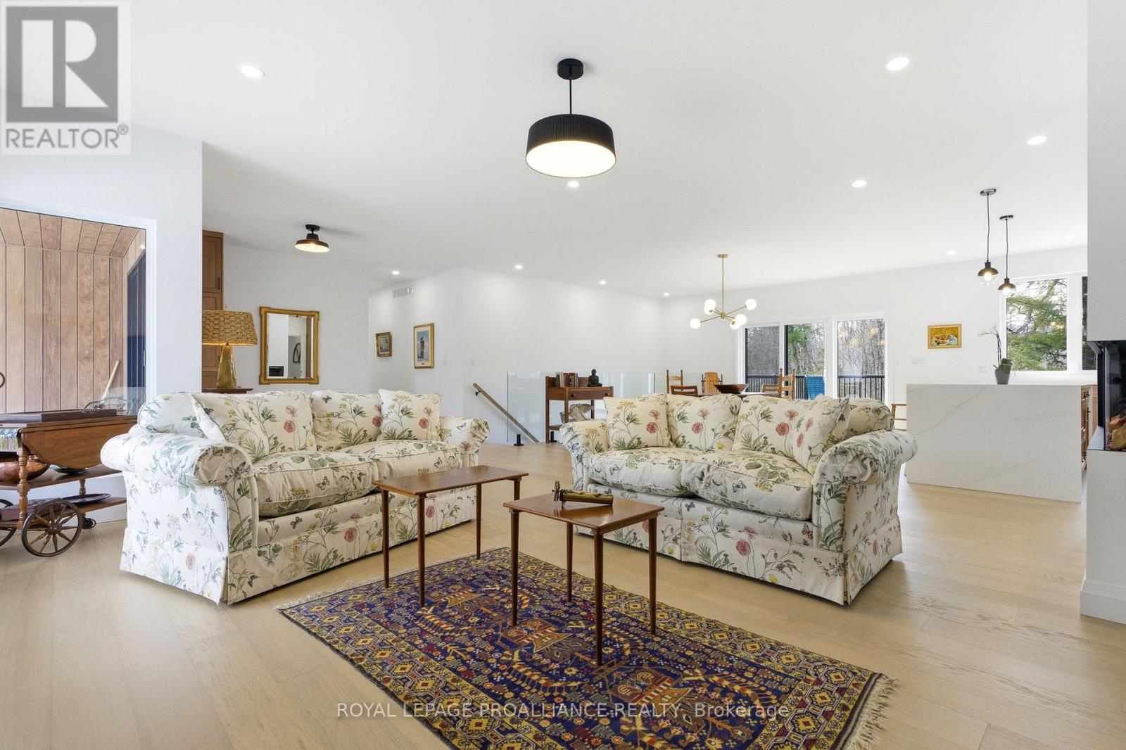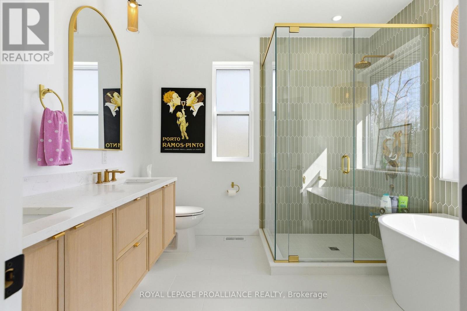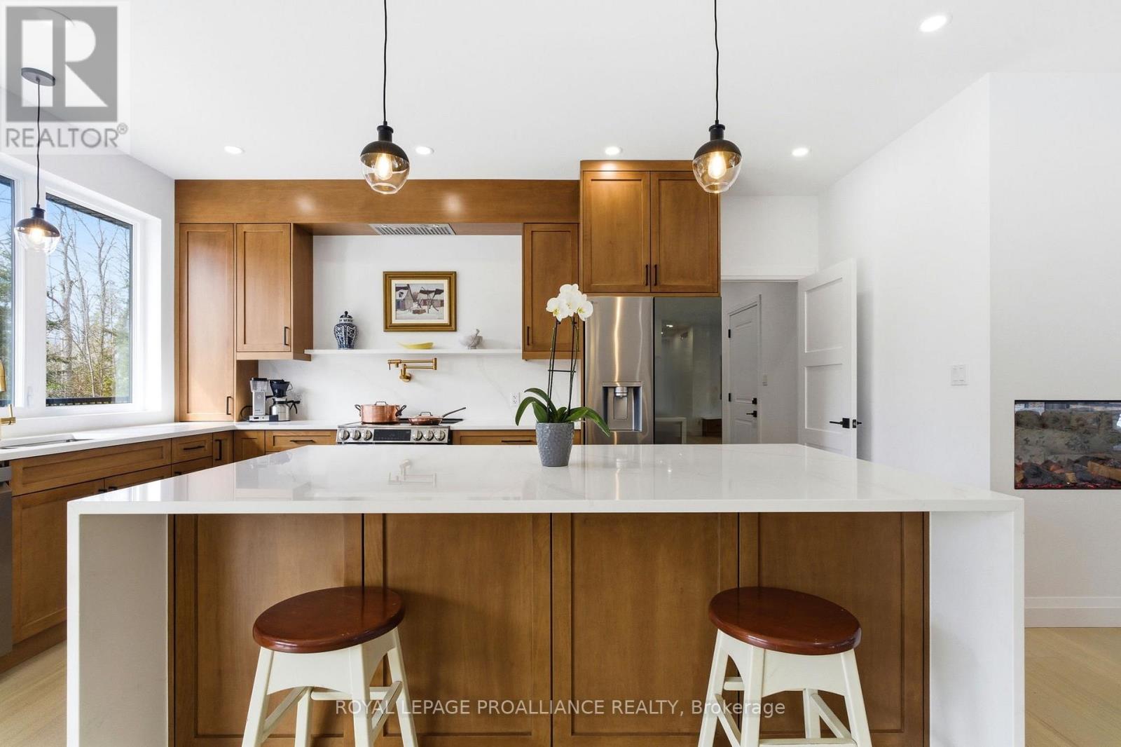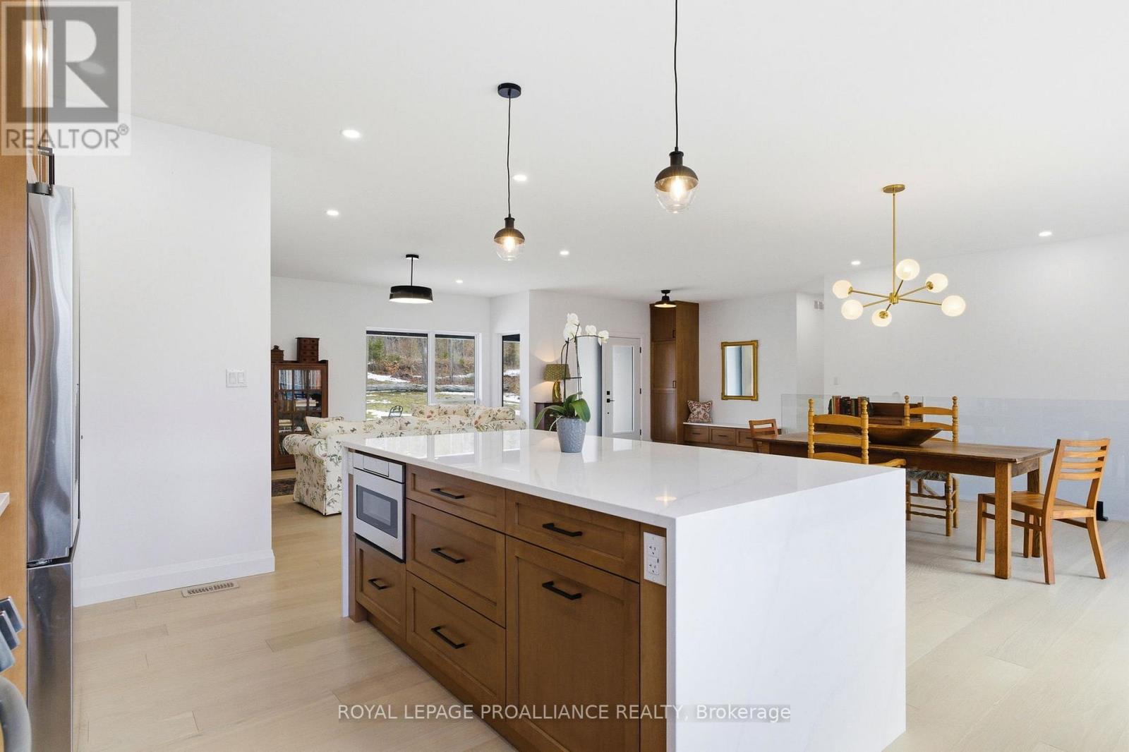 Welcome to 5070 County Rd 25 in Warkworth, a custom-built bungalow set on a peaceful 2-acre treed lot, where modern design meets the quiet beauty of country living. Built in 2023, this thoughtfully designed home offers a bright, open concept layout with expansive windows that draw in natural light and frame views of the surrounding woods. With 2+2 bedrooms and 3 full bathrooms, the home offers a functional layout suited for both everyday living and hosting. The kitchen is both stylish and practical, featuring clean modern finishes and a pot filler, while the adjoining dining area walks out to a spacious deck, perfect for morning coffee or evening gatherings overlooking the trees. The living room is anchored by a striking fireplace, creating a warm and inviting focal point. The main floor primary suite is a private retreat with a walk-in closet and a well-appointed ensuite complete with double sinks, a soaker tub, and a separate shower. A welcoming foyer, main floor laundry, and direct access from the attached garage into a mudroom add to the home's everyday convenience. The fully finished lower level expands your living space with two additional bedrooms, a full bathroom, and a large rec room with walkout access to the yard, ideal for guests, family, or flexible living arrangements. A covered front porch offers a quiet place to unwind. Exterior access to the garage adds additional functionality. Surrounded by nature yet just 30 minutes to the 401, this property offers the perfect balance of rural tranquility and accessibility. (id:64974)