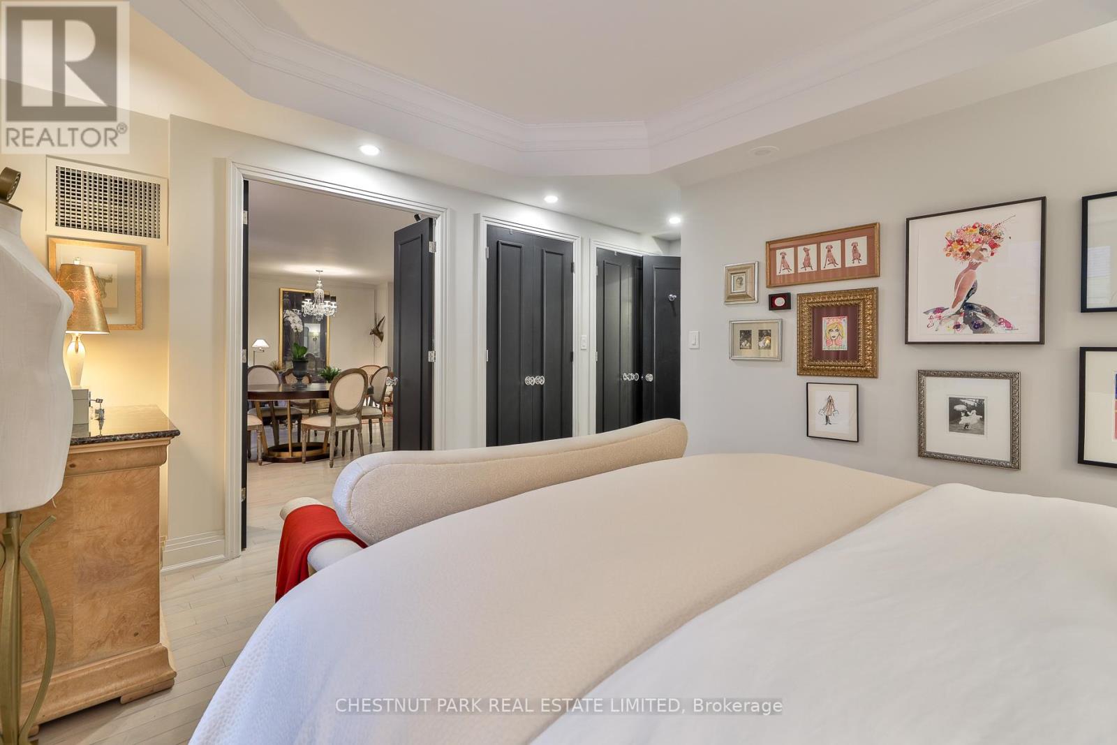 A beautifully upgraded and thoughtfully redesigned residence in one of Yorkville's most sought after boutique buildings. This refined suite boasts 925 square feet of meticulous and cohesive living space with high quality improvements throughout, including custom California Closets in three storage areas, upgraded lighting with pot lights, crown molding in recessed ceilings, re stained hardwood floors, new hardware, and elevated millwork that adds a timeless and sophisticated feel. The kitchen has been refreshed with upgraded new appliances including a gas stove, refinished cabinetry, improved lighting, and stylish finishes that enhance both function and design. The bedroom features a newly designed built in closet perfect for additional storage. The full bathroom renovation introduces a spa inspired level of quality with high end fixtures, custom storage, elegant materials and marble throughout. This suite includes one parking space and one locker. Situated in the heart of Yorkville, this residence offers unparalleled access to luxury shopping, Michelin rated dining, top fitness studios, the Four Seasons, the ROM, and the city's finest amenities. A rare opportunity to own a move in ready suite in a prestigious building steps from everything Yorkville has to offer. (id:64974)