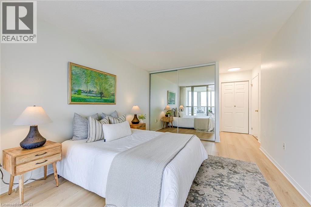 Welcome to one of Burlington’s most sought-after condominium communities, offering exceptional comfort, security, and convenience in a prime location. This beautifully updated 2-bedroom, 2-bathroom suite offers 1222 sq. ft. of bright, open-concept living space featuring new flooring, fresh paint, crown moulding, and expansive windows that fill the home with natural light. The spacious living and dining areas lead to an enclosed balcony with sweeping east-facing views of Lake Ontario and the Burlington skyline, creating a wonderful extension of the living space. The home is currently being upgraded with a brand-new kitchen featuring quartz countertops, along with a new bathroom vanity with quartz counters and undermount sinks, adding modern style and value. The generous primary bedroom includes an oversized closet, a 4-piece ensuite bath, and access to a sunroom perfect for a reading nook or office. A second large bedroom, full bathroom, in-suite laundry, and two underground parking spaces provide comfort and practicality. Residents enjoy an impressive selection of amenities including an indoor pool, sauna, exercise room, library, media room, party room, games room, car wash bay, outdoor BBQ area, visitor parking, and beautifully maintained grounds. Condo fees cover building insurance, cable TV and high-speed internet, water, landscaping, snow removal, parking, and common area facilities. Ideally located just steps to Appleby GO Station, Fortinos, Longo’s, major shopping plazas, restaurants, cafés, medical centres, Bateman Community Centre and Library, and the waterfront’s scenic parks and trails, with quick access to the QEW, 403, and 407. Families will appreciate proximity to top-rated schools including Frontenac PS, Pineland (French Immersion), Nelson HS, Ascension CES, and Assumption CSS. A perfect opportunity for downsizers, firsttime buyers, or anyone seeking move-in-ready living in a quiet, well-managed community close to every convenience Burlington offers. (id:64974)