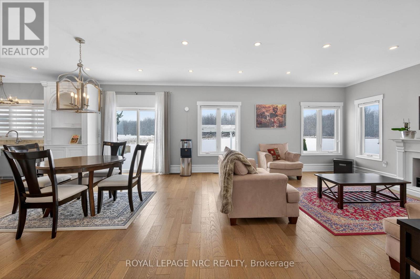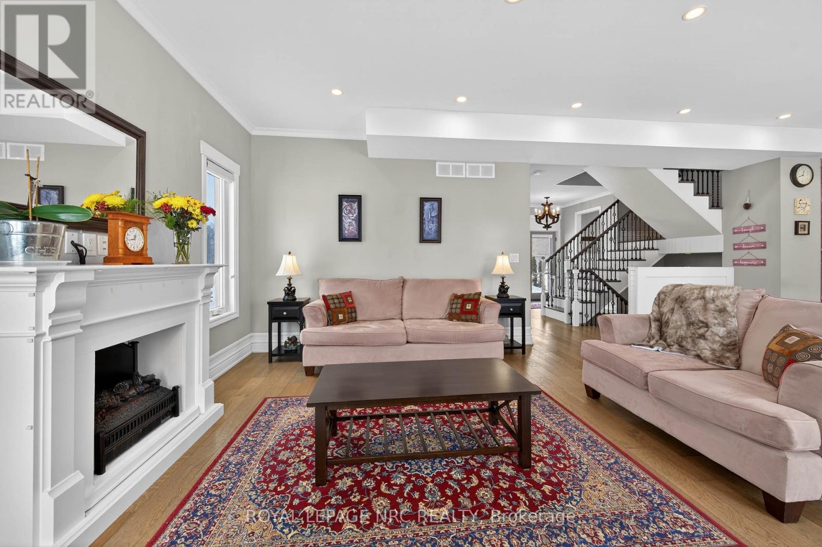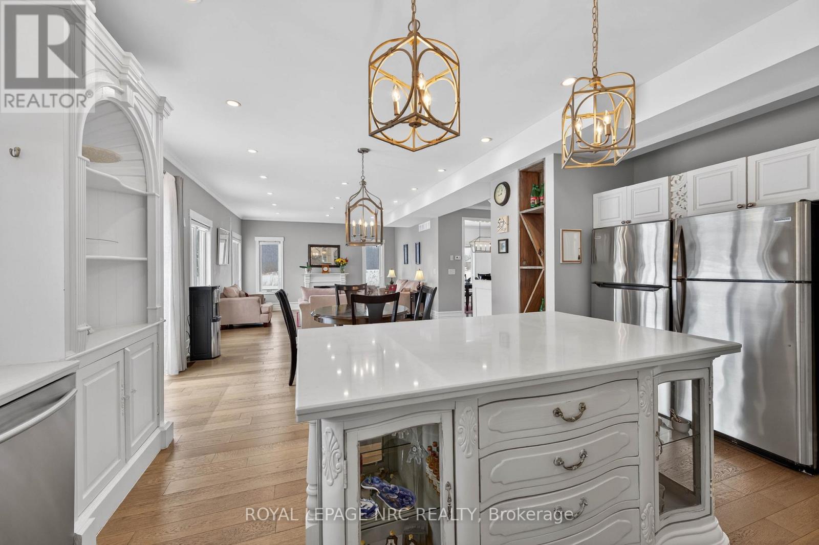 Exquisite custom-built home on 2.8 acres with pond, offering the perfect balance of country serenity and modern luxury.Bathed in natural light with 9' ceilings throughout, the heart of this home is a chef's kitchen featuring an oversized island, built-in appliances, and a butler's pantry, ideal for effortless entertaining. The rear of the home opens to tranquil landscaped views, seamlessly blending indoor and outdoor living.Hosting is effortless with a full-sized formal dining room, while upstairs boasts three generously proportioned bedrooms, including a primary suite with walk-in closet and luxurious ensuite. The fully finished basement provides two additional bedrooms, a full bath, and a media-style recreation room, with a walk-up to the oversized two-car garage.Step outside to a spacious patio overlooking the expansive grounds, perfect for entertaining or enjoying the peace and privacy of this stunning property. A detached, fully serviced and insulated oversized garage adds remarkable versatility for hobbies, a home business, or vehicle storage. Generac generator ensures uninterrupted comfort and peace of mind.Enjoy the tranquility of a rural setting without compromise: high-speed internet, reliable cellular service, mail delivery, and well-maintained winter roads ensure convenience and ease. On the school bus route. Ample parking, a circular driveway, and quick access to Welland and Port Colborne make this property the ultimate combination of luxury, privacy, and accessibility. (id:64974)
