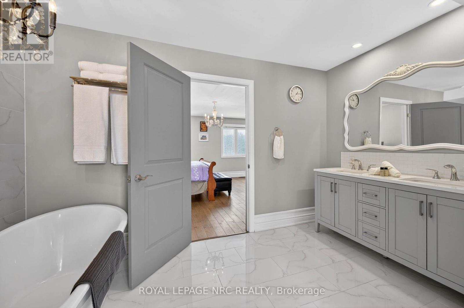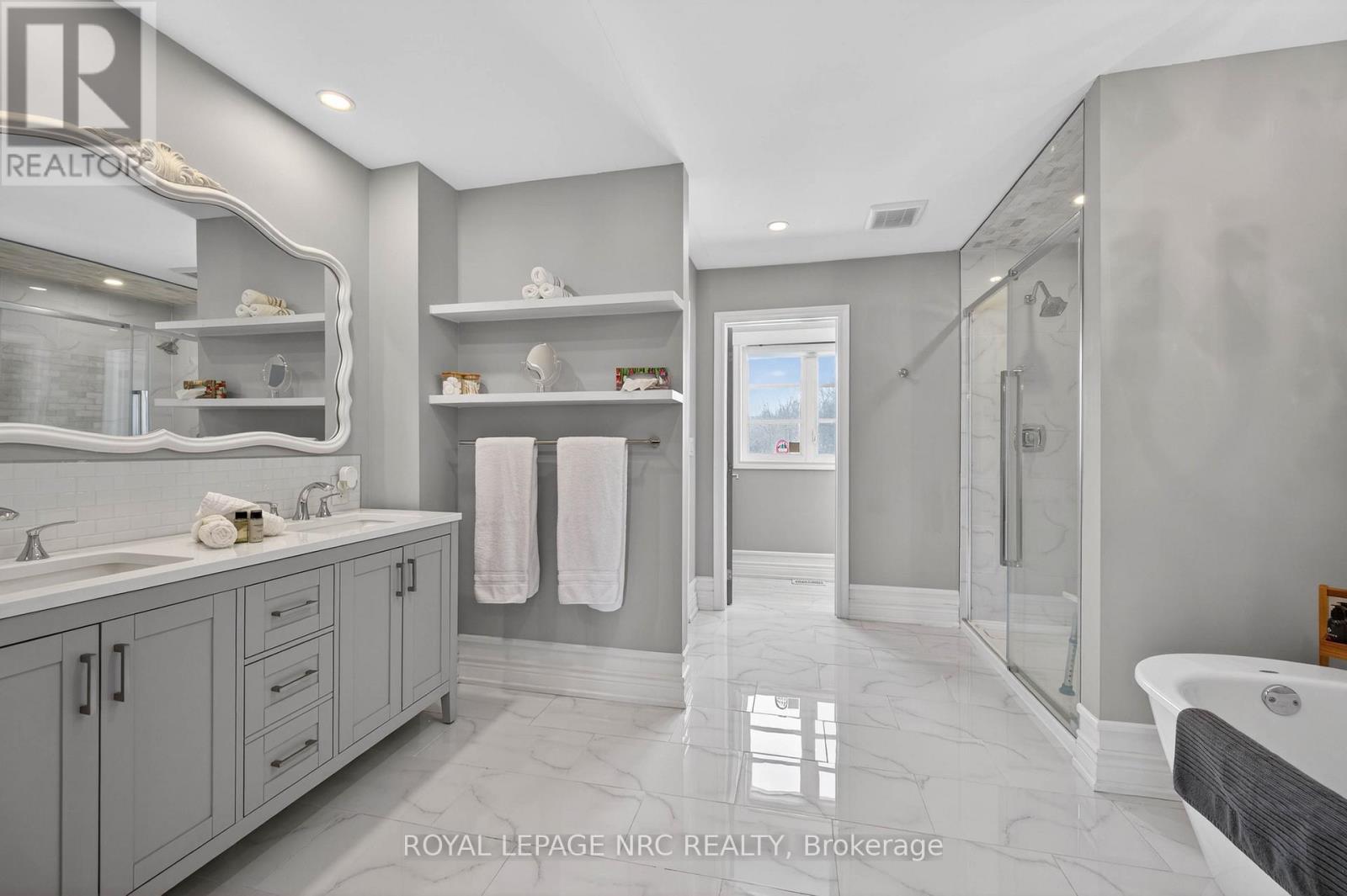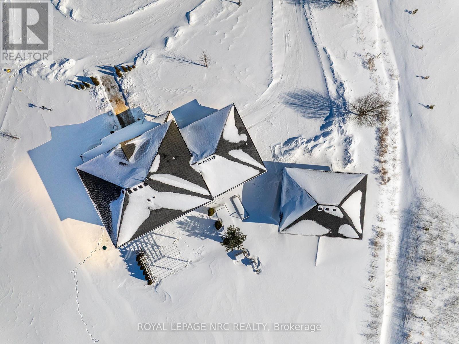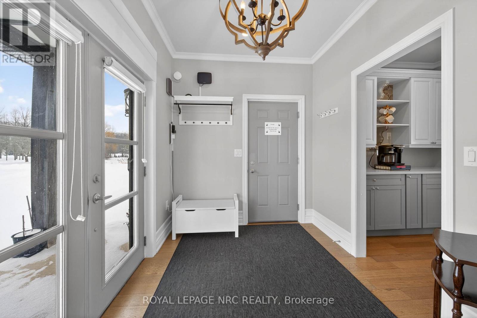 Exquisite custom-built home on 2.8 acres with pond, offering the perfect balance of country serenity and modern luxury.Bathed in natural light with 9' ceilings throughout, the heart of this home is a chef's kitchen featuring an oversized island, built-in appliances, and a butler's pantry, ideal for effortless entertaining. The rear of the home opens to tranquil landscaped views, seamlessly blending indoor and outdoor living.Hosting is effortless with a full-sized formal dining room, while upstairs boasts three generously proportioned bedrooms, including a primary suite with walk-in closet and luxurious ensuite. The fully finished basement provides two additional bedrooms, a full bath, and a media-style recreation room, with a walk-up to the oversized two-car garage.Step outside to a spacious patio overlooking the expansive grounds, perfect for entertaining or enjoying the peace and privacy of this stunning property. A detached, fully serviced and insulated oversized garage adds remarkable versatility for hobbies, a home business, or vehicle storage. Generac generator ensures uninterrupted comfort and peace of mind.Enjoy the tranquility of a rural setting without compromise: high-speed internet, reliable cellular service, mail delivery, and well-maintained winter roads ensure convenience and ease. On the school bus route. Ample parking, a circular driveway, and quick access to Welland and Port Colborne make this property the ultimate combination of luxury, privacy, and accessibility. (id:64974)
