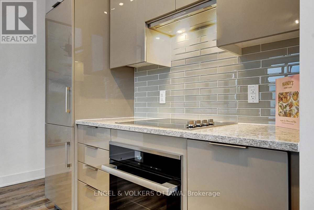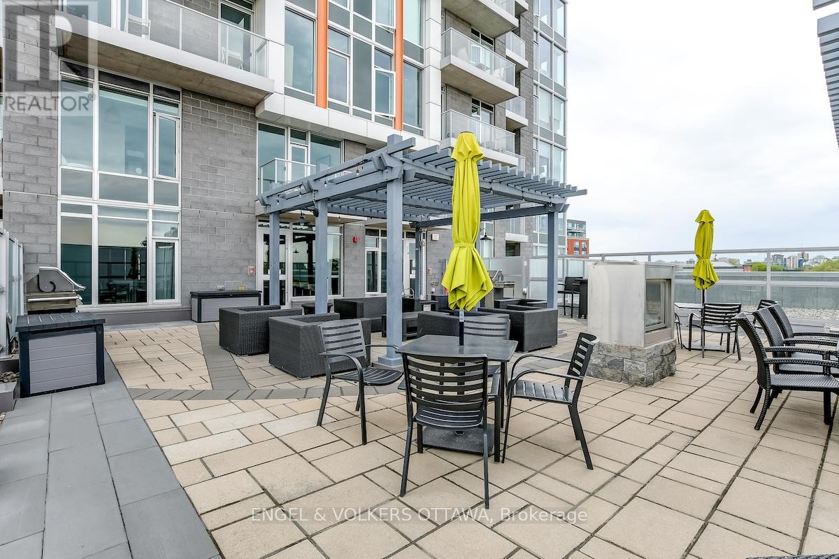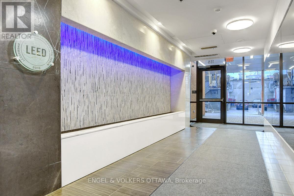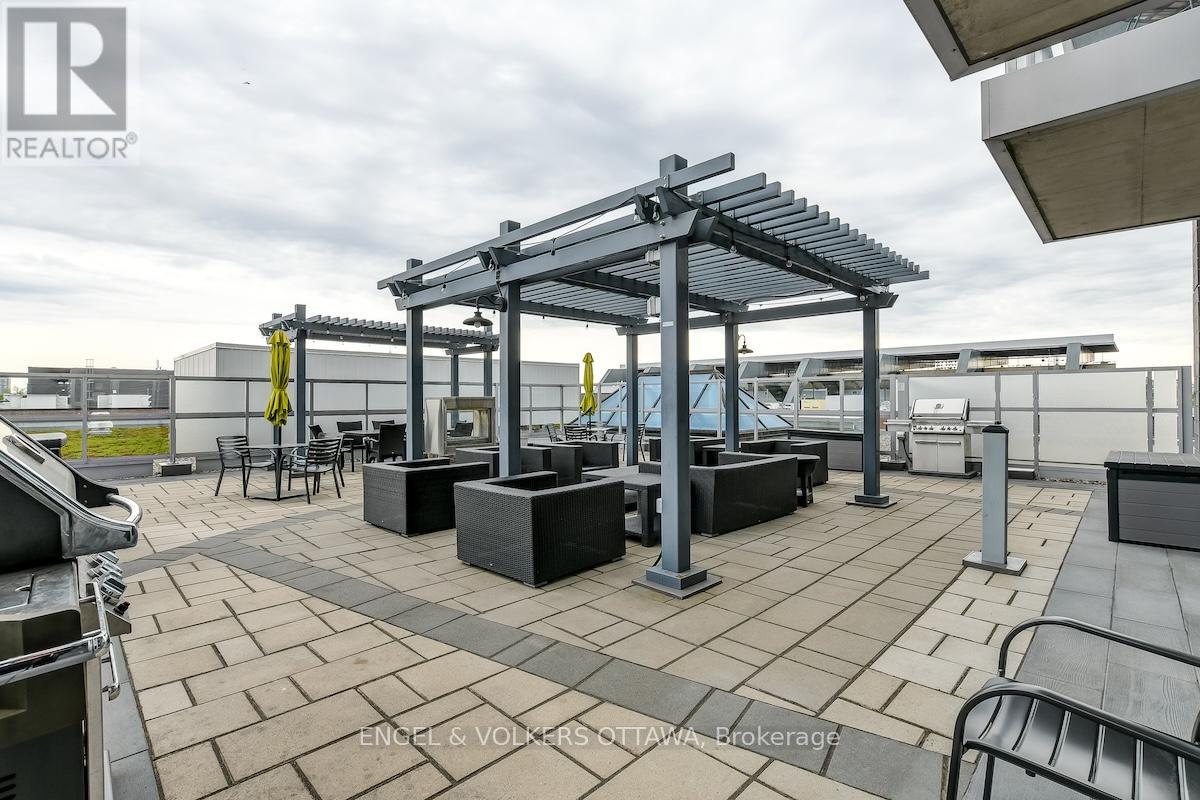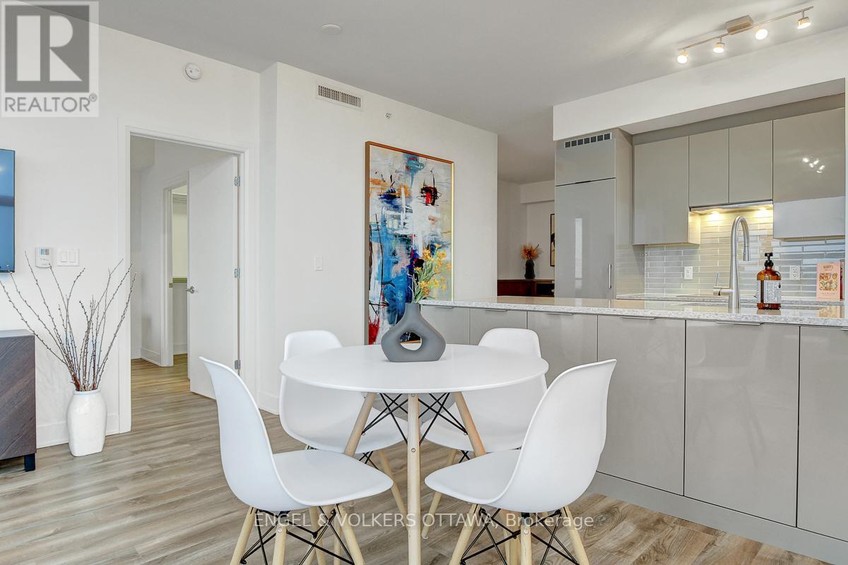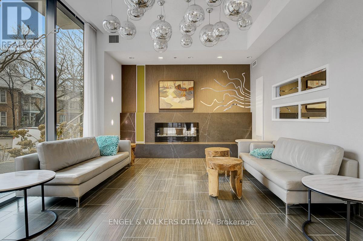 Enjoy this excellent location, a walker's paradise! Walk score is 99-100! In the heart of the Glebe with everything at your doorstep. Pleasing floorplan with 2 bedrooms, 2 baths and a beautiful light filled living/dining/kitchen. Floor to ceiling windows with electric blinds. Den area,(2.0x1.75) is actually an alcove with custom cabinetry. Super kitchen. Fantastic building amenities include 4th floor expansive rooftop terrace, party room, and meeting area. Well equipped gym is on the 2nd floor. Garage parking with EV infrastructure in place. There are 2 condominium corporations, one for building, one for parking. Condo located in Northeast corner of the building. Building name,The Vibe, says it all! (id:64974)