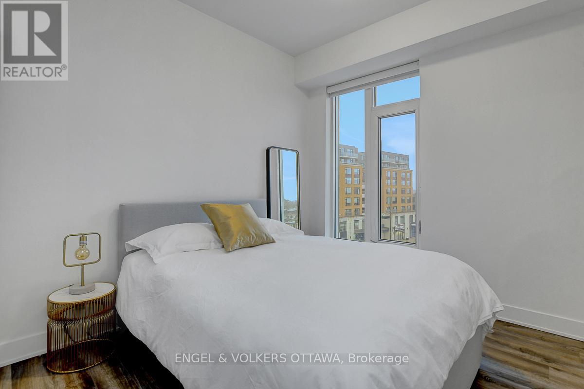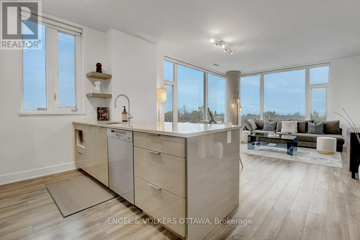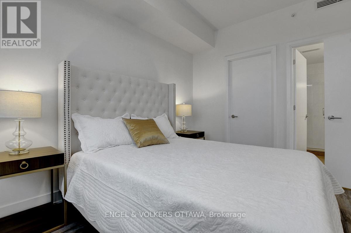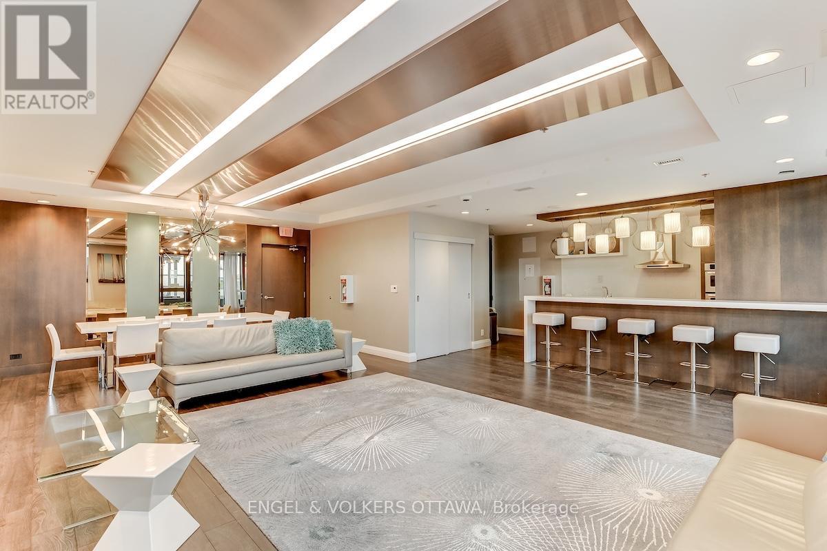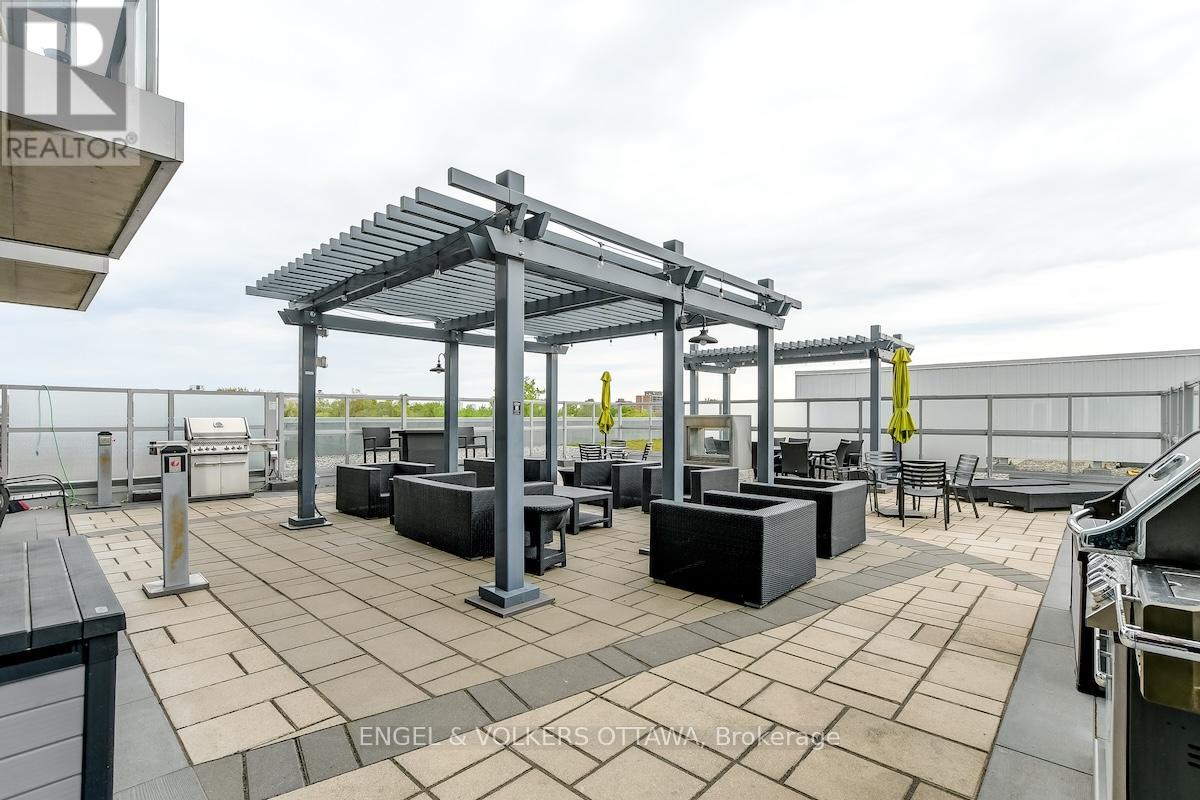 Enjoy this excellent location, a walker's paradise! Walk score is 99-100! In the heart of the Glebe with everything at your doorstep. Pleasing floorplan with 2 bedrooms, 2 baths and a beautiful light filled living/dining/kitchen. Floor to ceiling windows with electric blinds. Den area,(2.0x1.75) is actually an alcove with custom cabinetry. Super kitchen. Fantastic building amenities include 4th floor expansive rooftop terrace, party room, and meeting area. Well equipped gym is on the 2nd floor. Garage parking with EV infrastructure in place. There are 2 condominium corporations, one for building, one for parking. Condo located in Northeast corner of the building. Building name,The Vibe, says it all! (id:64974)