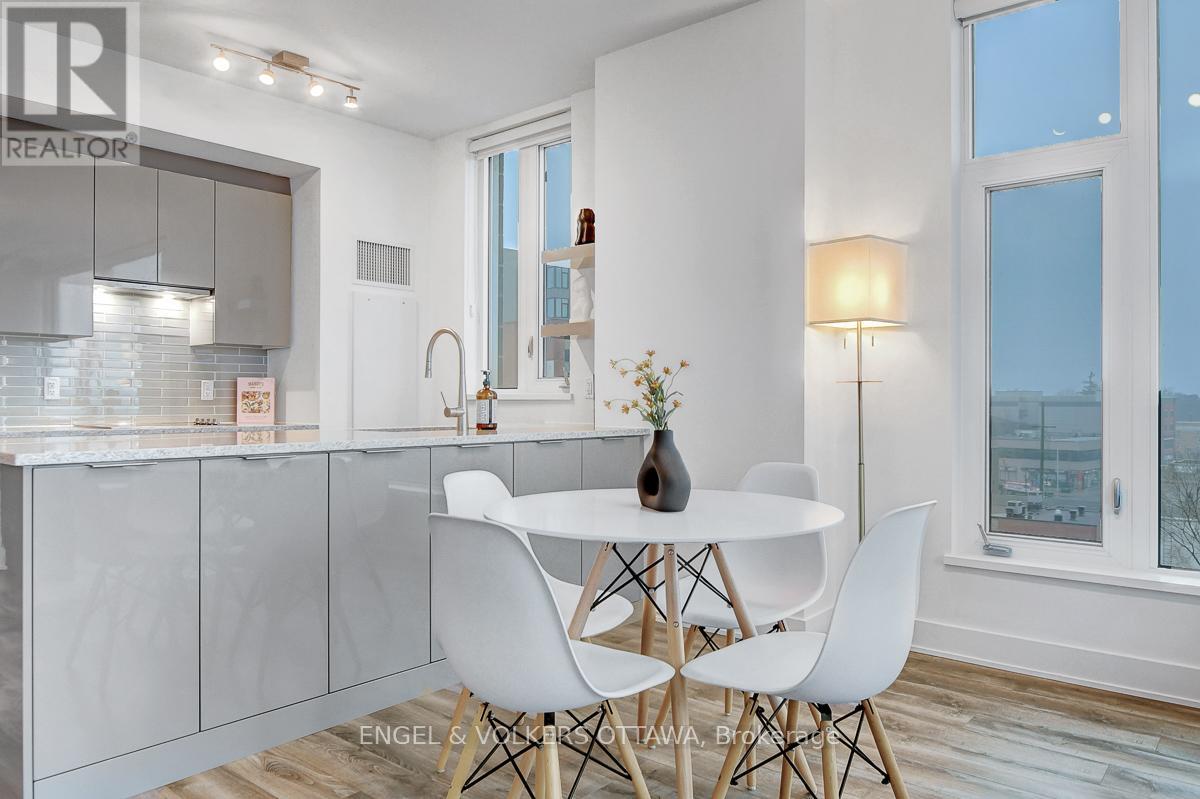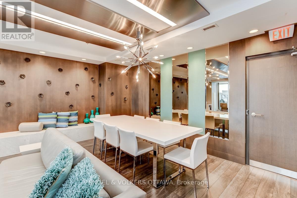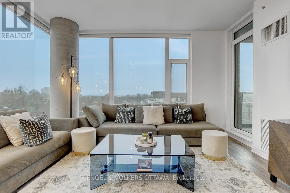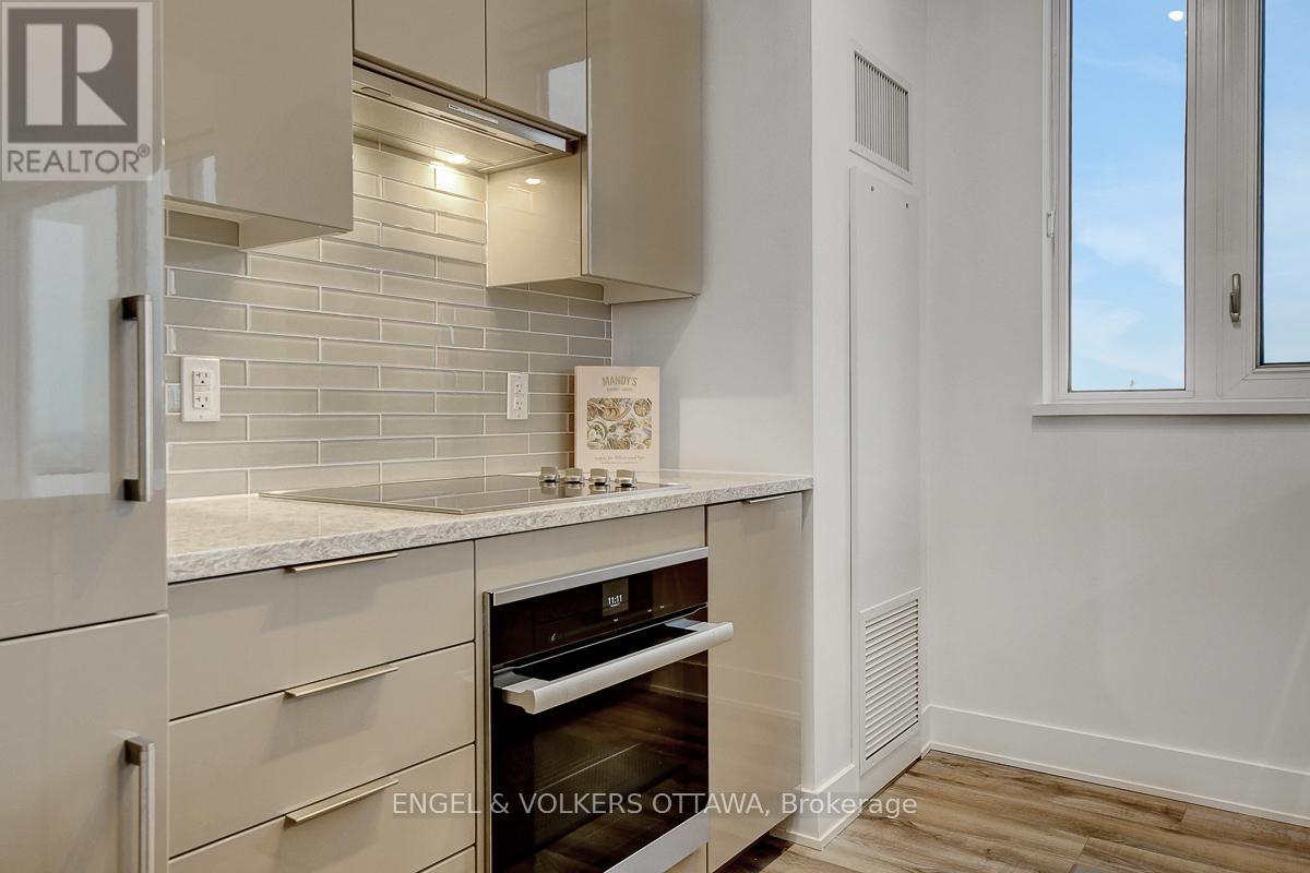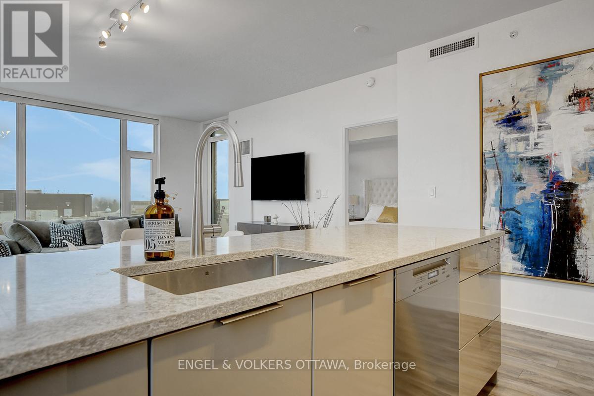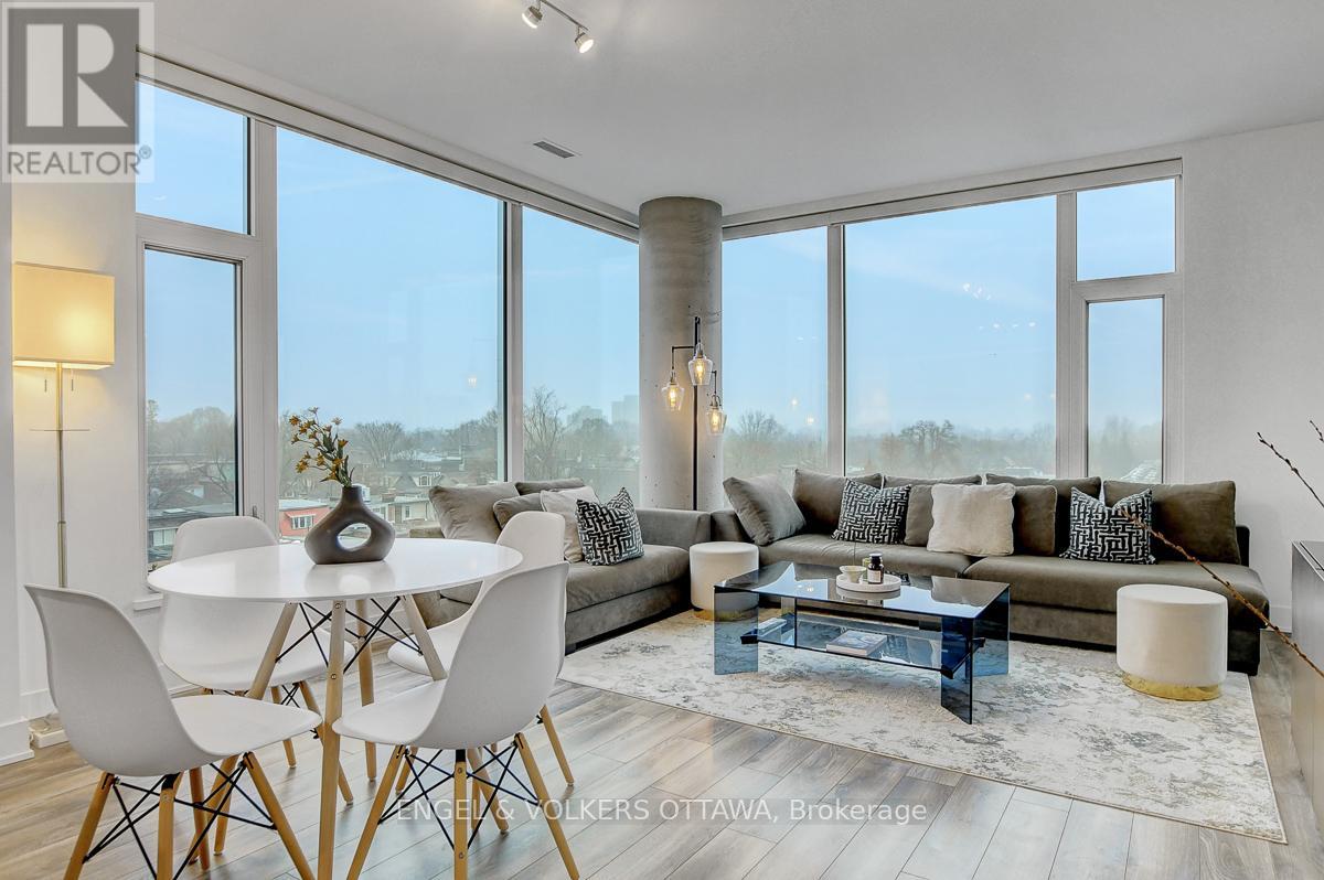 Enjoy this excellent location, a walker's paradise! Walk score is 99-100! In the heart of the Glebe with everything at your doorstep. Pleasing floorplan with 2 bedrooms, 2 baths and a beautiful light filled living/dining/kitchen. Floor to ceiling windows with electric blinds. Den area,(2.0x1.75) is actually an alcove with custom cabinetry. Super kitchen. Fantastic building amenities include 4th floor expansive rooftop terrace, party room, and meeting area. Well equipped gym is on the 2nd floor. Garage parking with EV infrastructure in place. There are 2 condominium corporations, one for building, one for parking. Condo located in Northeast corner of the building. Building name,The Vibe, says it all! (id:64974)