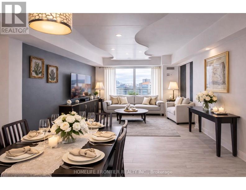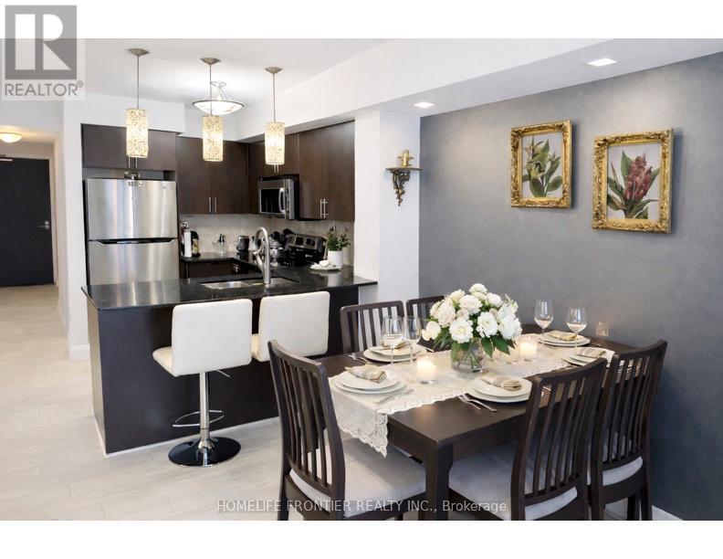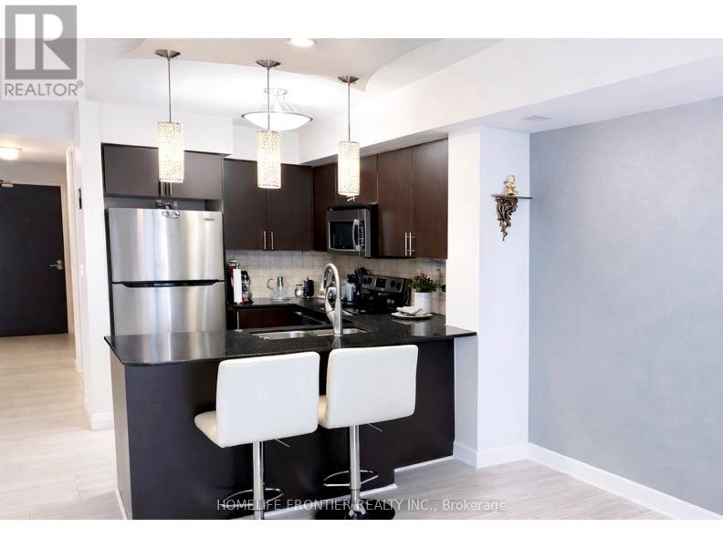 Welcome to this luxurious condo suite in the highly sought-after, family-friendly Beverley Glen community. Offering 780 sqft of thoughtfully designed living space + an oversized private balcony, this stunning residence blends modern elegance w/ everyday functionality. This beautifully laid-out suite features 1 spacious bedroom, a versatile den & 2 well-appointed baths. The den offers exceptional flexibility - ideal as a home office, nursery, guest space or potential 2nd bedroom. The open-concept layout seamlessly connects the living, dining & kitchen areas, creating an inviting space perfect for entertaining & comfortable daily living. Large SW-facing windows flood the unit w/ natural light, while the walk-out to the expansive balcony showcases breathtaking panoramic city skyline views - the perfect setting for morning coffee or evening relaxation. The modern kitchen is a standout, designed w/ both style & function in mind. It features granite countertops, a breakfast bar, stainless steel appliances, stylish backsplash & modern cabinetry for optimal storage. Whether hosting guests or preparing everyday meals, this kitchen delivers sophistication & practicality. The primary bedroom offers a generous W/I closet & private 4-pc ensuite, creating a peaceful retreat. An additional 2-pc bath adds convenience for guests. Condo fees include 1 parking space, 1 locker, heat, water, CAC & visitor parking, plus access to premium amenities: indoor pool, gym, sauna, party/meeting rooms & rooftop deck/garden. Unbeatable location - steps to Promenade Mall, Walmart, cafes, synagogues, parks, transit, excellent schools & restaurants. Quick access to Hwy 7 & Hwy 407 ensures seamless commuting throughout the GTA. (id:64974)