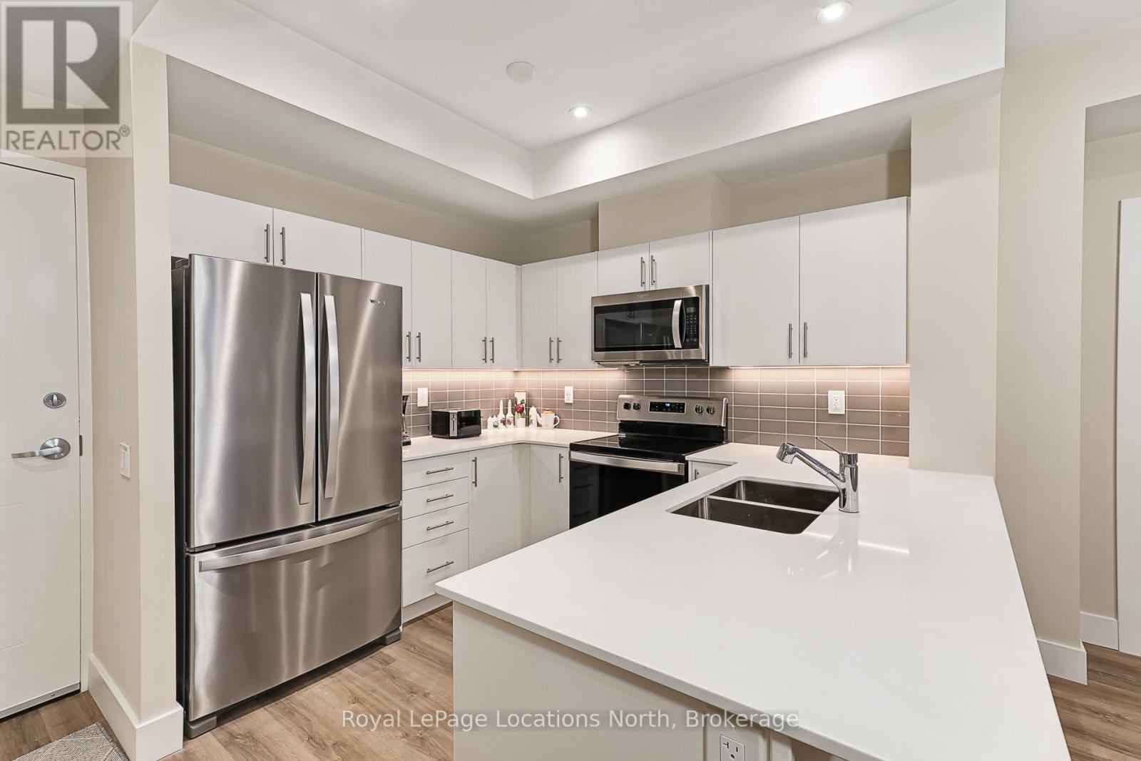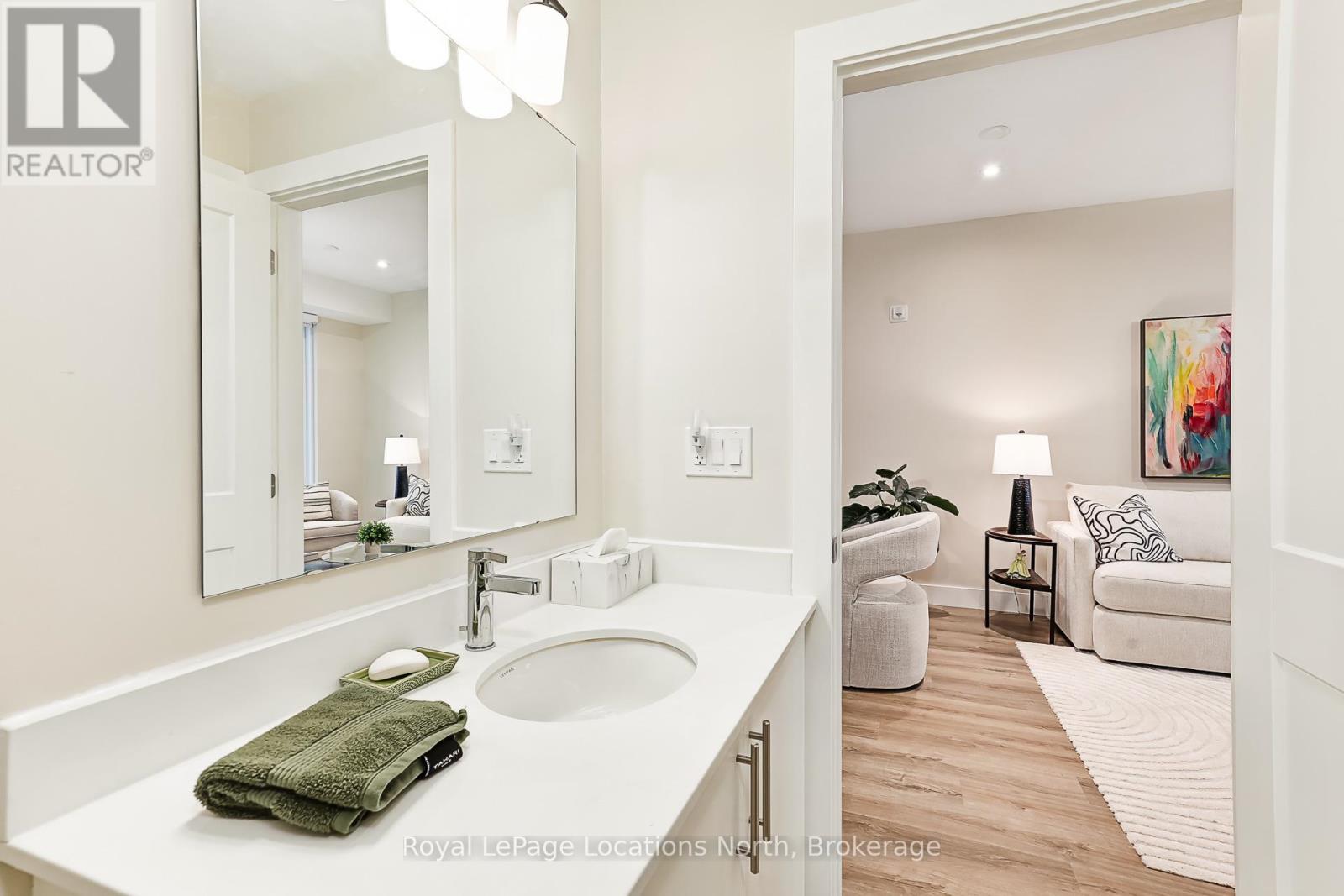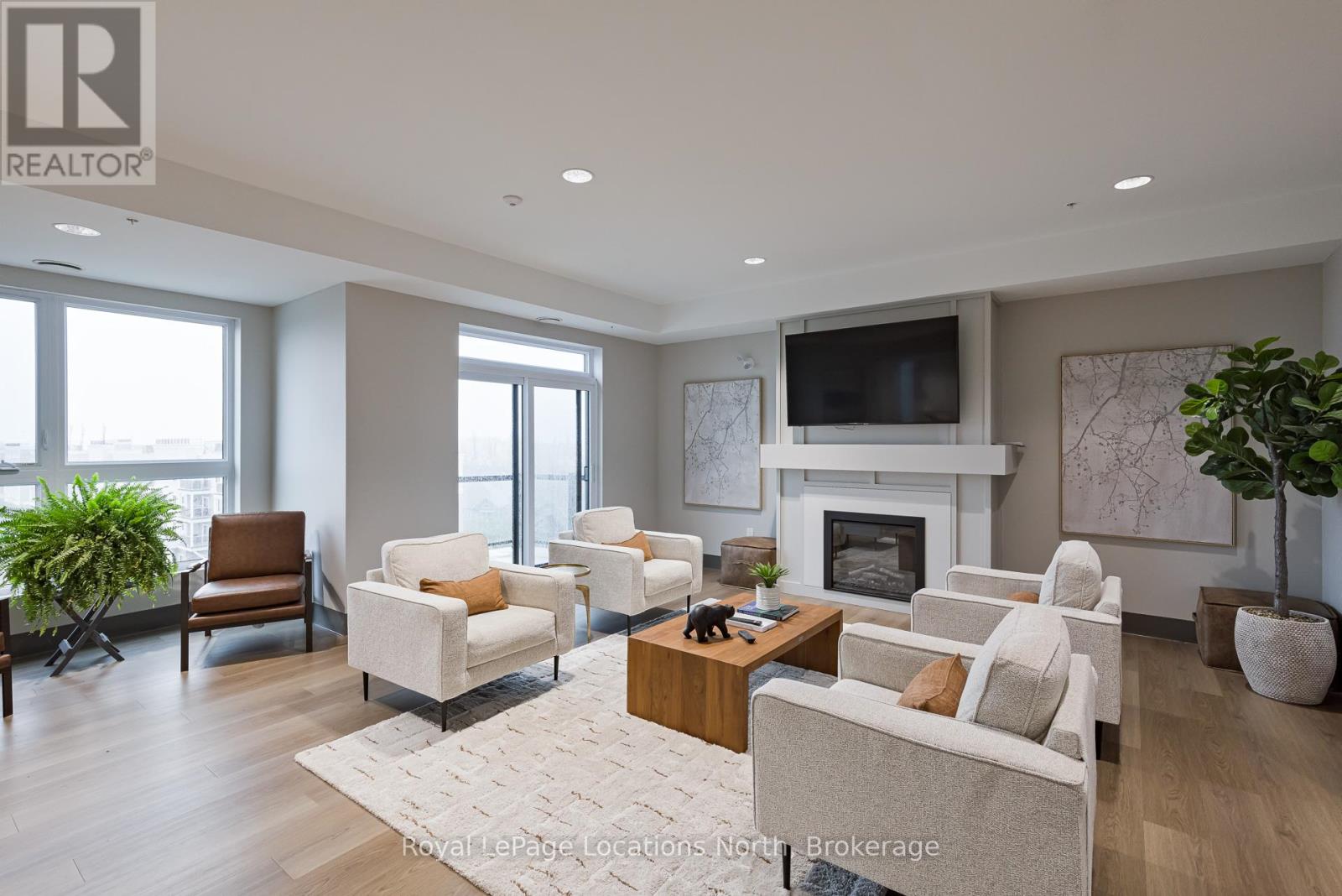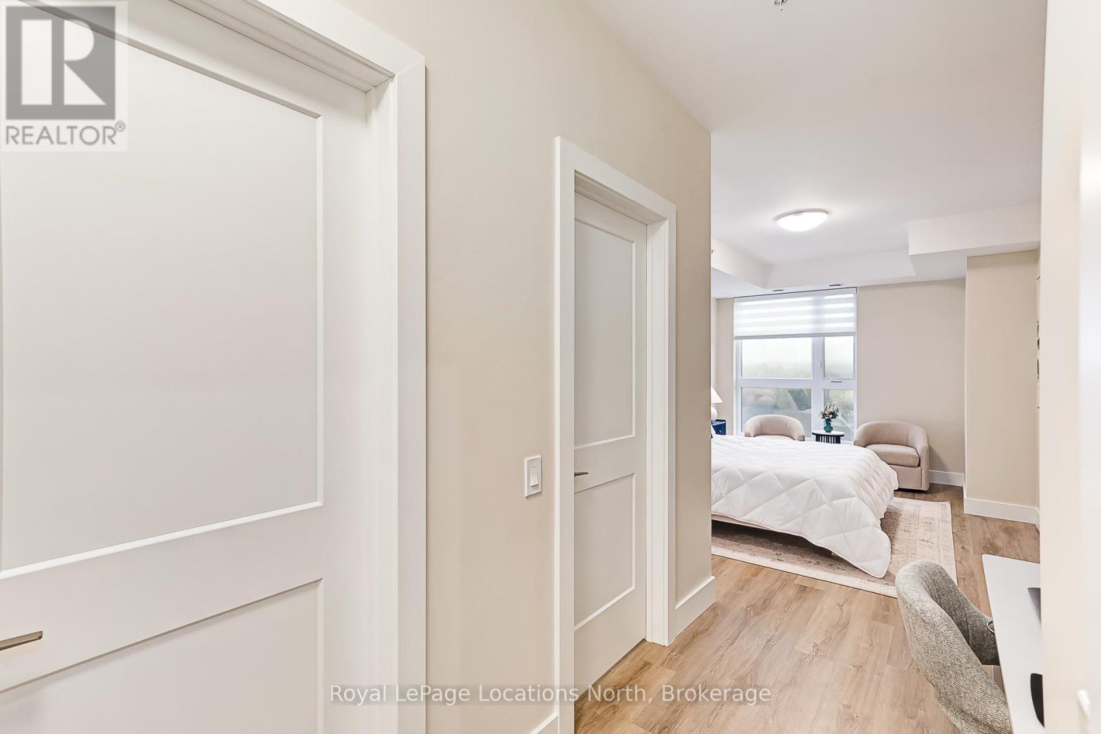 Welcome to Royal Windsor, one of Collingwood's most sought-after condo communities - where modern luxury meets active, carefree living. This spacious 2-bedroom + den suite offers breathtaking west-facing views of Blue Mountain and a thoughtfully designed, open-concept layout perfect for both relaxing and entertaining. The bright, contemporary kitchen features stainless steel appliances, quartz countertops, soft-close cabinetry and elegant pot lighting. The inviting living room opens to a large private patio - ideal for taking in sunset mountain views. The primary suite is a true retreat, featuring two walk-in closets and a 5-piece wheelchair-accessible ensuite, offering both comfort and sophistication. Remote blinds, luxury vinyl plank flooring and a neutral palette add to the refined atmosphere. An assigned underground parking space is included with this state-of-the-art condo, designed with convenience and lifestyle in mind. At Royal Windsor, residents enjoy a community built on wellness and connection. Amenities include a rooftop terrace with panoramic views of Blue Mountain, a party room and access to Balmoral Village's clubhouse, complete with a pool, fitness studio, games room and more. Experience maintenance-free living in an exceptional location close to downtown Collingwood, golf, trails, Georgian Bay and Blue Mountain. This is more than a condo - it's a lifestyle. (id:64974)