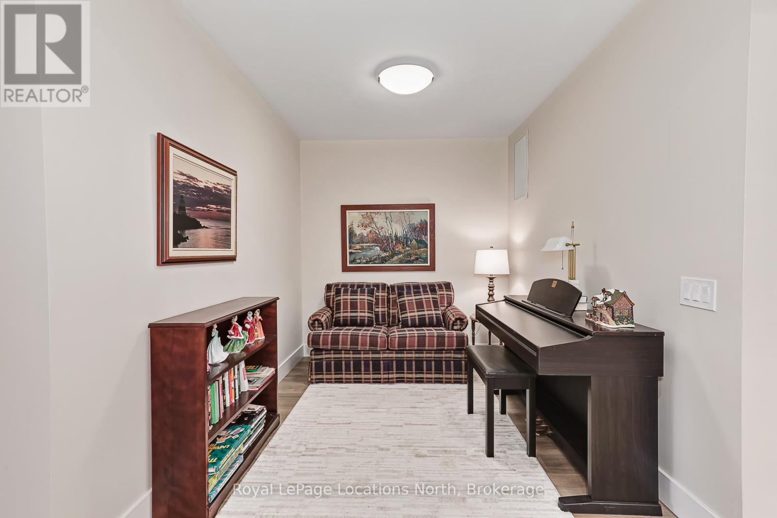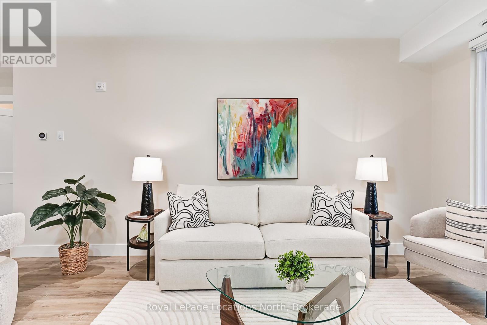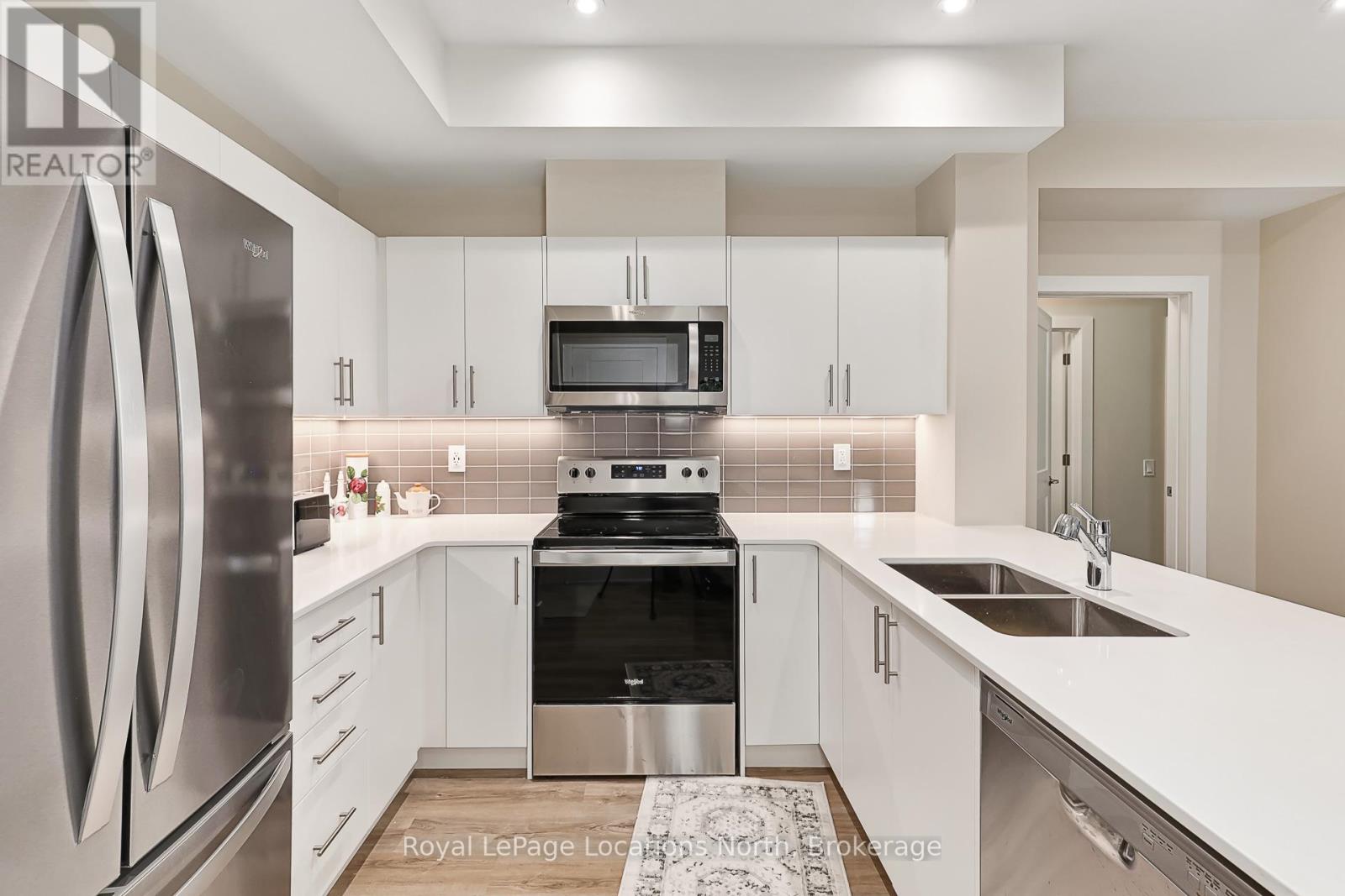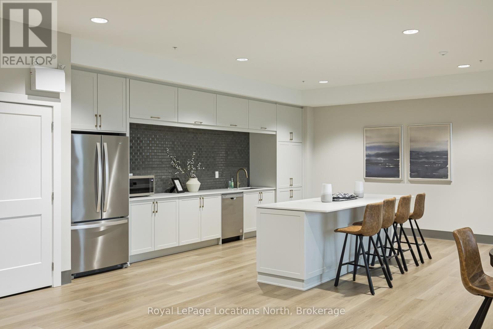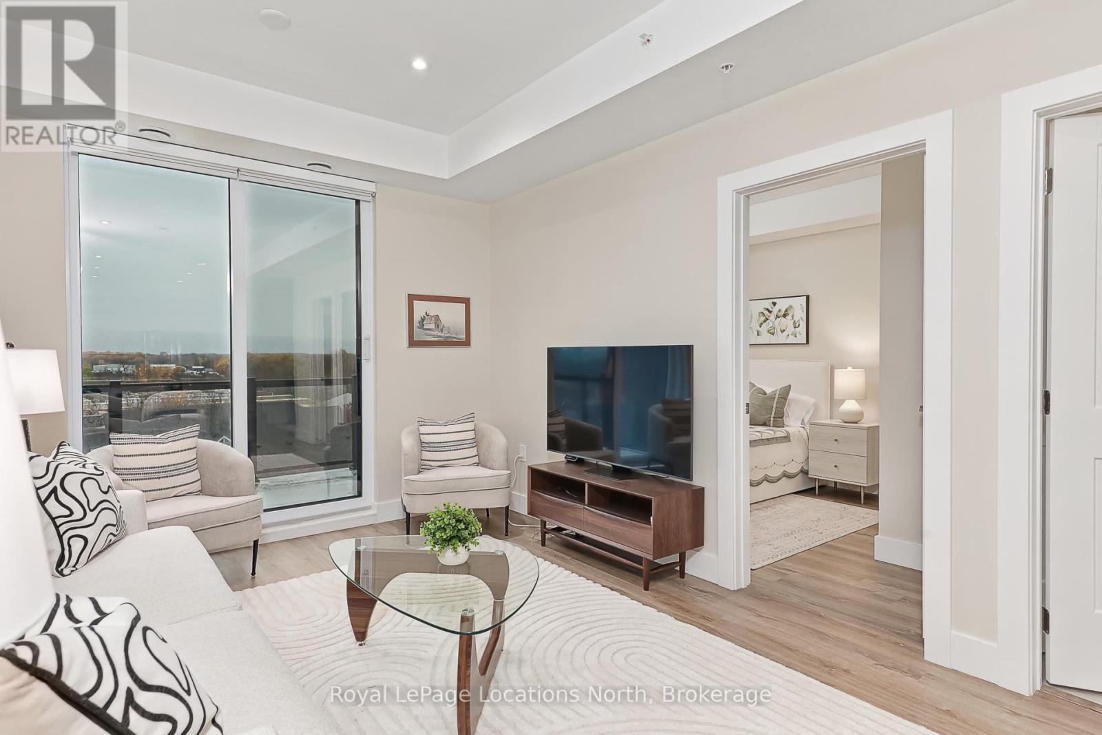 Welcome to Royal Windsor, one of Collingwood's most sought-after condo communities - where modern luxury meets active, carefree living. This spacious 2-bedroom + den suite offers breathtaking west-facing views of Blue Mountain and a thoughtfully designed, open-concept layout perfect for both relaxing and entertaining. The bright, contemporary kitchen features stainless steel appliances, quartz countertops, soft-close cabinetry and elegant pot lighting. The inviting living room opens to a large private patio - ideal for taking in sunset mountain views. The primary suite is a true retreat, featuring two walk-in closets and a 5-piece wheelchair-accessible ensuite, offering both comfort and sophistication. Remote blinds, luxury vinyl plank flooring and a neutral palette add to the refined atmosphere. An assigned underground parking space is included with this state-of-the-art condo, designed with convenience and lifestyle in mind. At Royal Windsor, residents enjoy a community built on wellness and connection. Amenities include a rooftop terrace with panoramic views of Blue Mountain, a party room and access to Balmoral Village's clubhouse, complete with a pool, fitness studio, games room and more. Experience maintenance-free living in an exceptional location close to downtown Collingwood, golf, trails, Georgian Bay and Blue Mountain. This is more than a condo - it's a lifestyle. (id:64974)