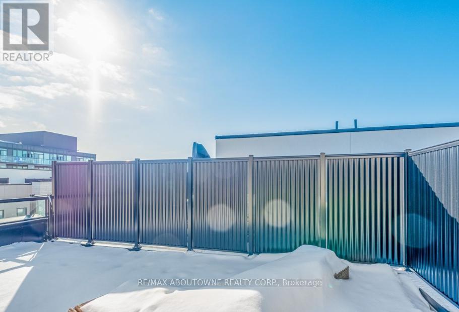 Welcome to Stationwest Urban Townhomes, one of Burlington's most distinctive communities. This premium three-storey end-unit "Granville" model offers a bright, open-concept layout highlighted by a chef-inspired kitchen with a large island, granite countertops, stainless steel appliances, and a spacious dining area with walkout to a private balcony-perfect for entertaining. A convenient main-floor powder room adds everyday functionality. The primary bedroom features double closets and access to a luxurious spa-style bath complete with a jacuzzi tub. On the top level, enjoy your own private rooftop terrace with stunning panoramic views-ideal for relaxing or hosting guests. Modern urban living at its finest. Tenants To Pay Utilities. (id:64974)