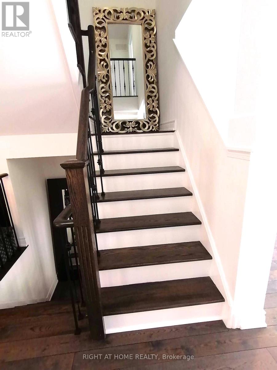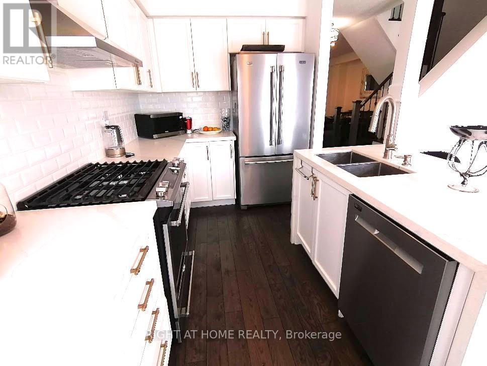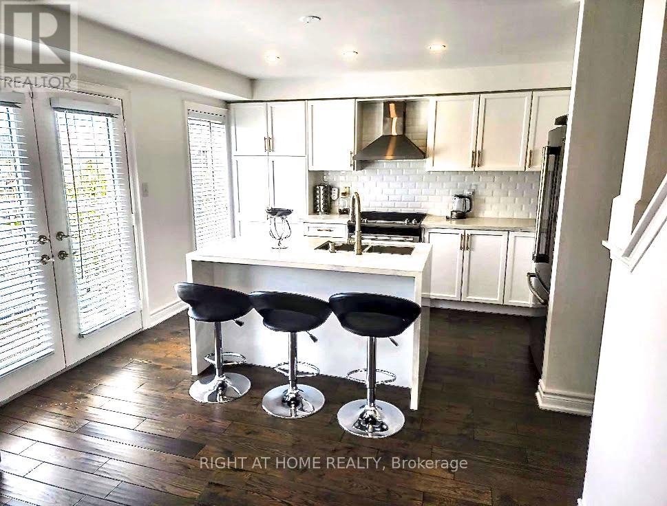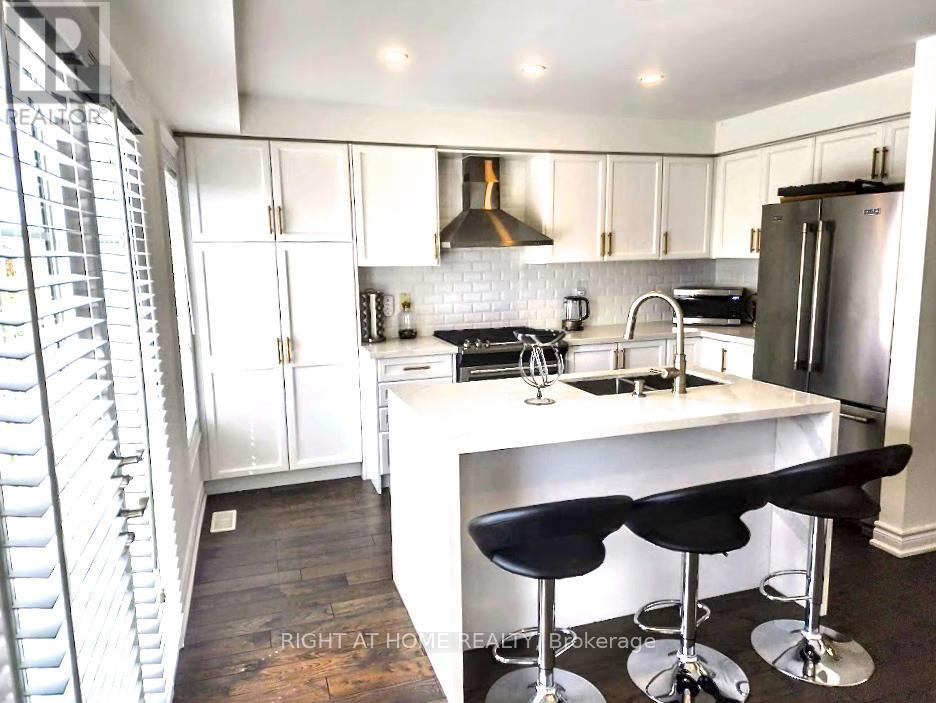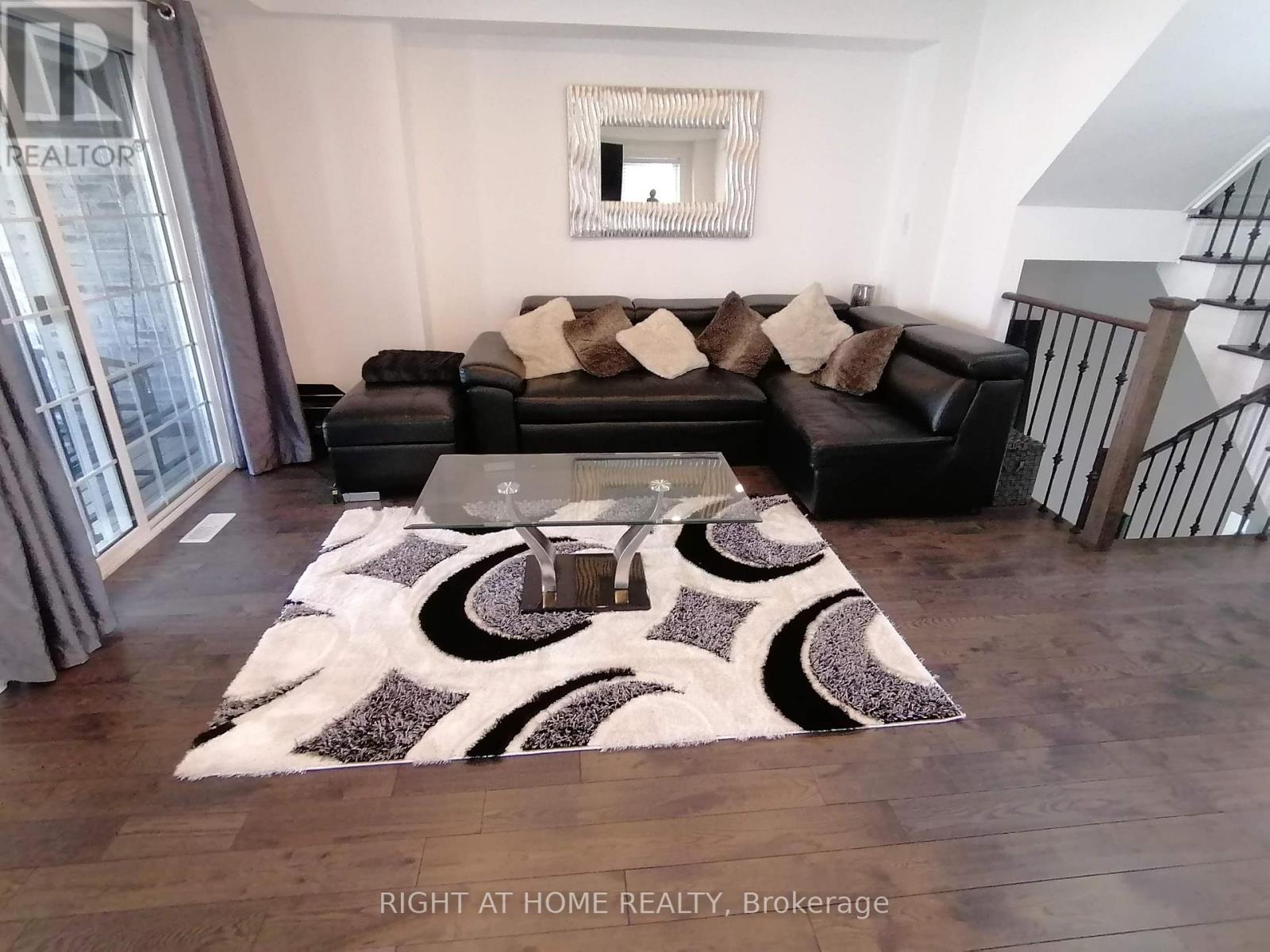 Stunning 4-Bedroom Semi-Detached Home in the Heart of Central East Ajax. Welcome to this beautifully maintained 2,191 sq. ft. semi-detached home located in the desirable Central East Ajax community. Featuring four spacious bedrooms and four modern bathrooms, this home offers exceptional living space for families of all sizes.The exterior boasts an elegant interlock walkway and a rare three-car parking capacity. Inside, youll find hardwood flooring throughout, stylish pot lights, and a bright, open-concept layout. The gourmet kitchen is a chefs dream, equipped with quartz countertops, a decorative backsplash, stainless steel appliances, a center island, premium cabinetry, and a walk-out to a large covered balcony plus an additional balcony for added outdoor enjoyment.The primary suite includes a four-piece ensuite and a walk-in closet, providing a private retreat. Elegant oak stairs with wrought iron railings add a touch of sophistication, while the upper-level laundry room offers added convenience.Natural light floods the family room through large windows, creating a warm and inviting atmosphere. The unfinished basement includes rough-ins for plumbing and electrical, offering great potential for customization.Located in one of Ajax's most sought-after neighborhoods, this home is a perfect blend of style, comfort, and future possibilities. (id:64974)