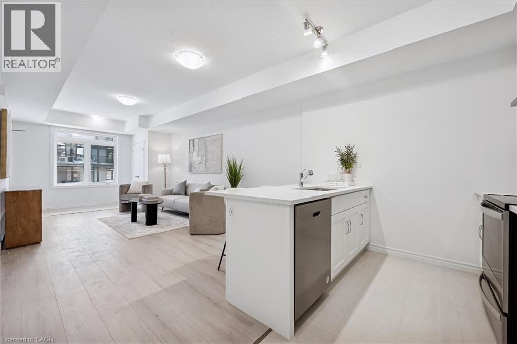 Welcome to 51 Lomond Lane in Kitchener: a beautifully upgraded Ruby floor plan Built by Fusion Homes, offering modern finishes, carpet-free living, and exceptional comfort throughout, nestled in the highly desirable Huron Village community, one of the city’s most family-friendly and rapidly growing neighborhoods! Designed for both style and functionality, this bright and inviting 2-bedroom, 2-bathroom home features a thoughtfully laid-out open-concept design that maximizes space and natural light. The contemporary kitchen is a true highlight, complete with quartz countertops, an upgraded backsplash, soft-close cabinetry, a sleek flush breakfast bar, and an upgraded kitchen faucet, perfect for everyday living and entertaining alike. The full 6-piece stainless steel electric appliance package adds both elegance and convenience. Enjoy seamless, carpet-free living with durable tile and laminate flooring throughout, complemented by upgraded interior door hardware that adds a refined touch. Both bathrooms continue the elevated feel with quartz counters and soft-close cabinets, offering a cohesive and modern aesthetic. The home’s exterior showcases a classic combination of brick and vinyl, delivering curb appeal with low-maintenance durability. Additional features include air conditioning, a water softener, and 1 dedicated parking stall for added convenience. With a flexible closing available in 60–120 days, this move-in ready home presents an excellent opportunity for first-time buyers, downsizers or investors. Located in the sought-after Huron Village area of Kitchener, this home offers unbeatable convenience: Minutes to Highway 401, Close to top-rated schools, Walking distance to parks, trails & playgrounds, Nearby shopping plazas & restaurants, Public transit access, Community centres and recreational facilities, Everything you need is just moments away. Don’t miss your chance to own this beautifully upgraded home, Book your showing Today! (id:64974)