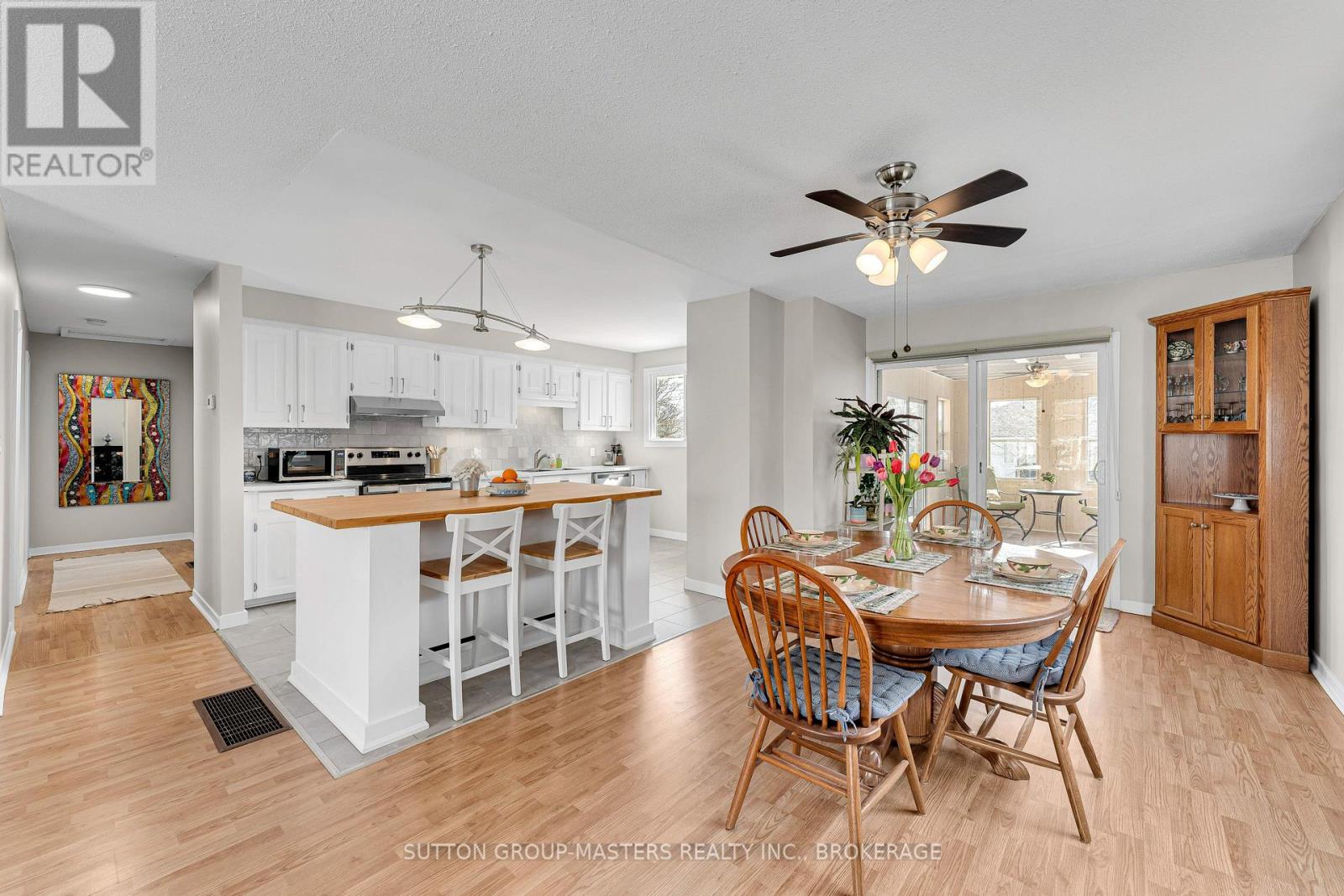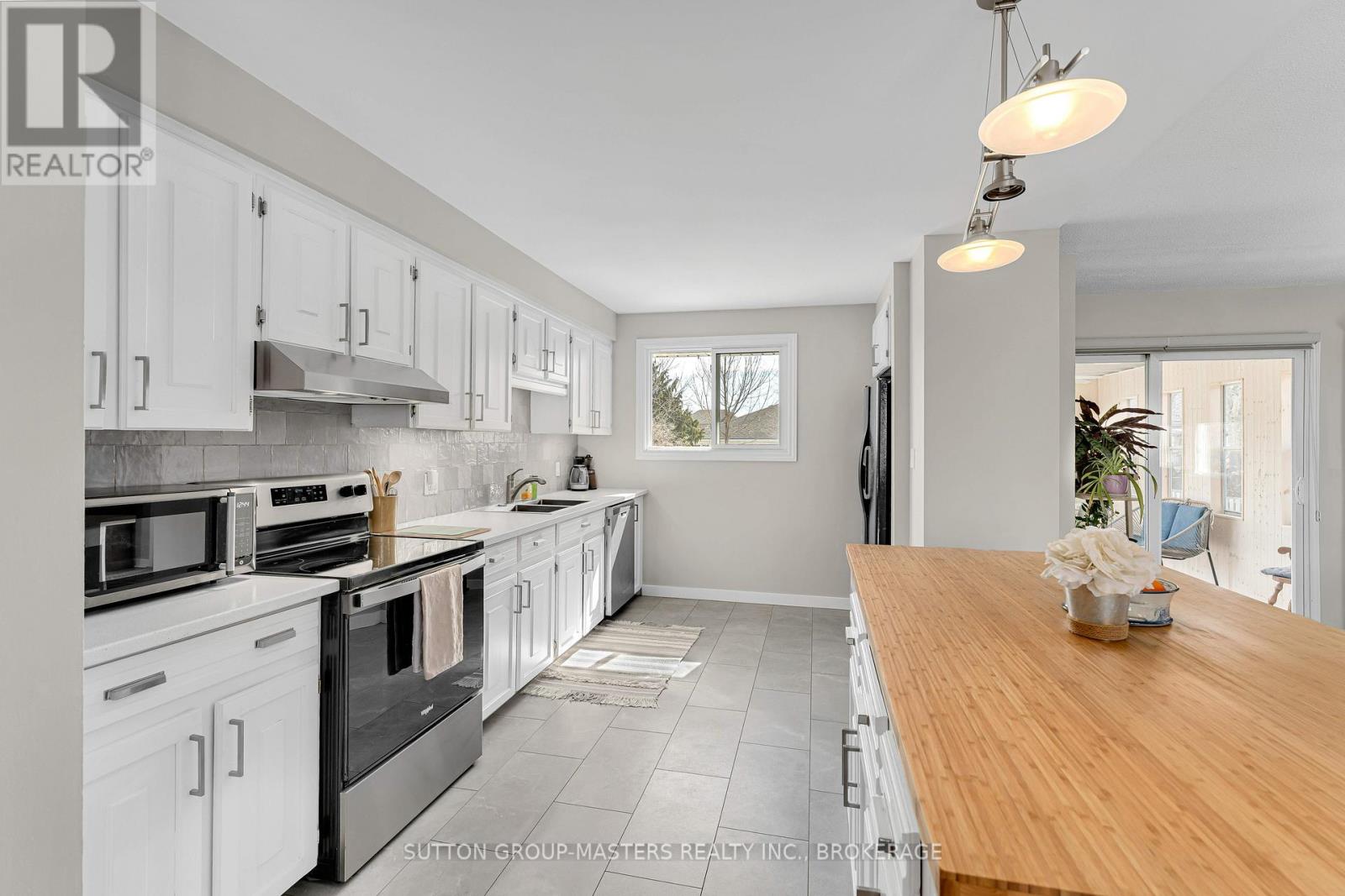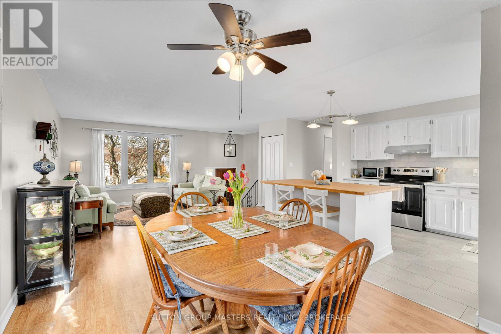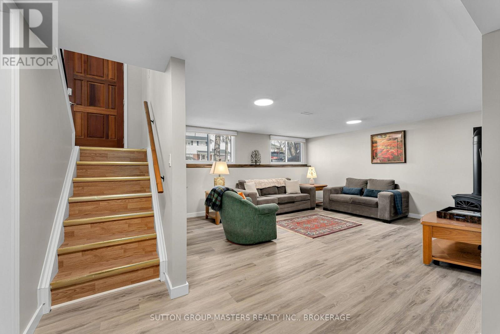 Welcome to this beautifully maintained elevated bungalow in the heart of Amherstview, offering the perfect blend of modern updates, functional space, and family-friendly living. The bright main level features 3 bedrooms and a full bathroom, along with an open-concept living and dining area that flows seamlessly into the modern kitchen. Complete with a large island, tile backsplash, and plenty of storage, this kitchen is perfect for entertaining. The fully finished lower level has been recently renovated and offers exceptional additional living space with oversized windows that fill the area with natural light. Here you'll find a spacious rec room with a gas stove, a large fourth bedroom, a convenient office or gaming nook, and a second full bathroom with laundry. Did I mention there is a 3-season room with a pine interior? This bright space overlooking the backyard, a large deck perfect for summer gatherings, and plenty of green space to relax or play. The generous driveway provides parking for up to six vehicles. Major updates in recent years include shingles (2020), main level windows (2021), electrical panel (2021), owned hot water tank (2022), and A/C (2022).This versatile home is ideal for first-time buyers, growing families, or anyone looking for potential in-law living space in a great Amherstview location. (id:64974)